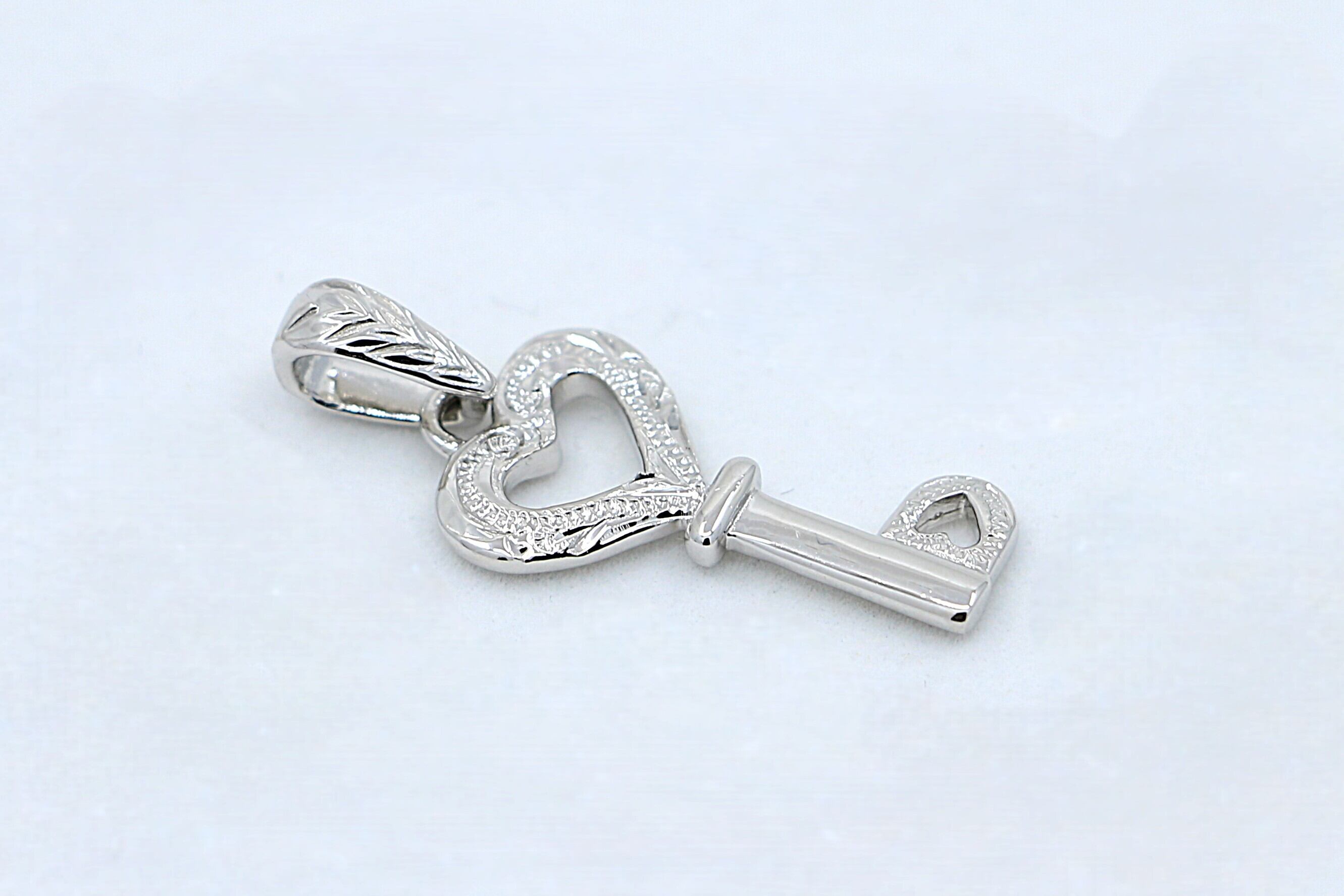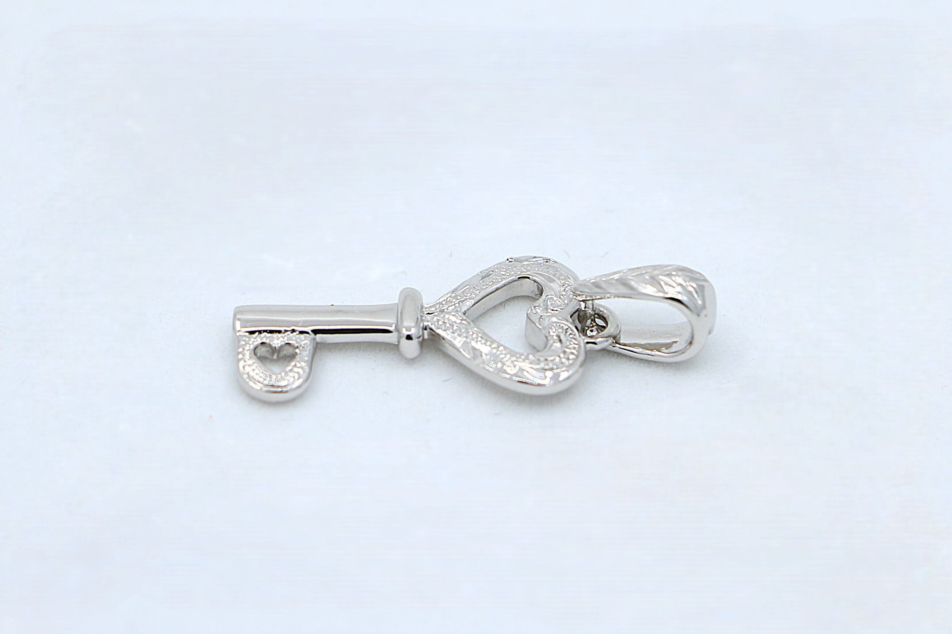 ハート&キーモチーフのシルバーペンダントトップです。身につけるたびに特別な意味と美しさを感じられる一品に仕上げました。