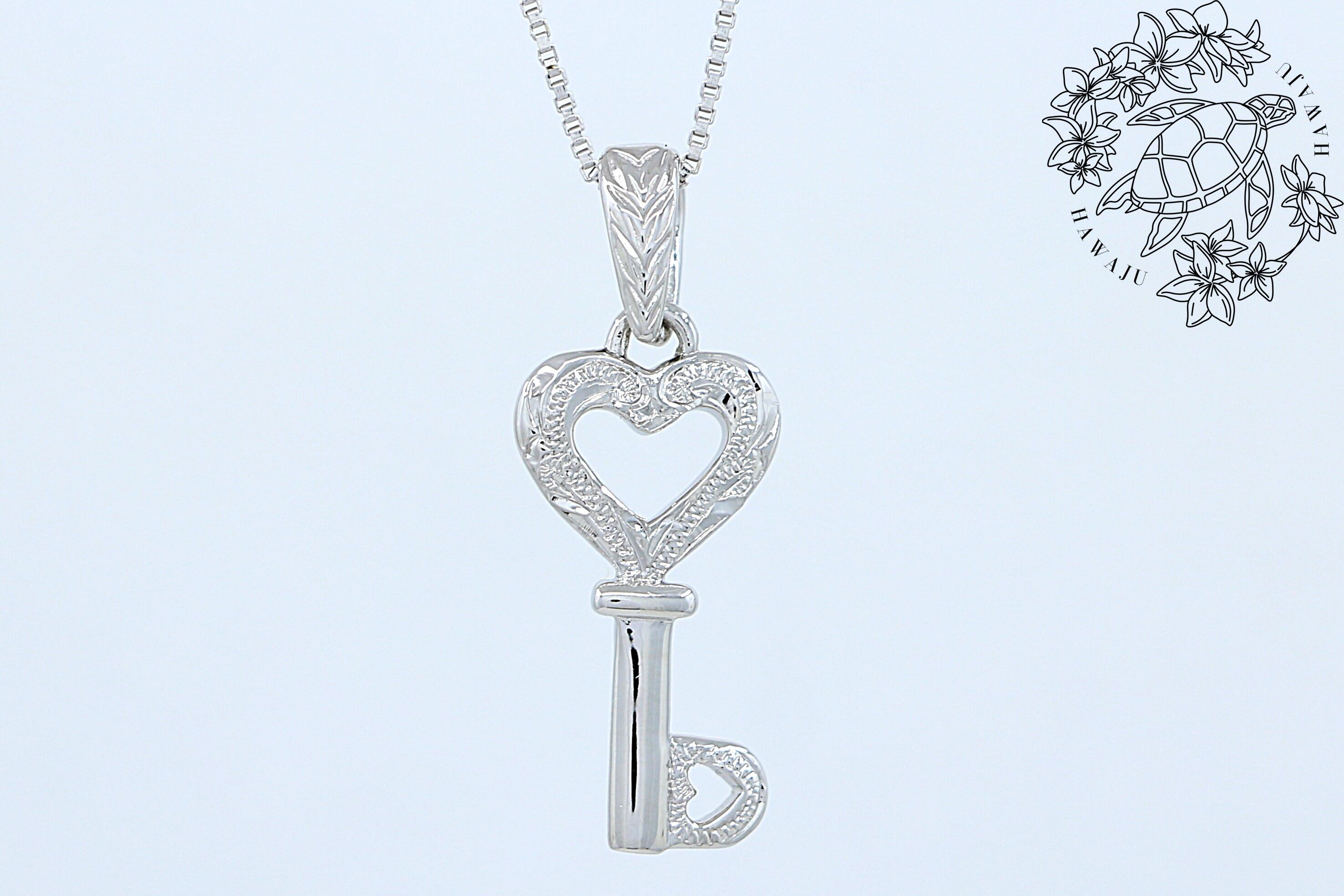愛と絆を象徴するハートと鍵のモチーフが、胸元で優しく輝くペンダントトップ。ハワイの美しい文化を感じながら、特別な瞬間を彩るアクセサリーです。