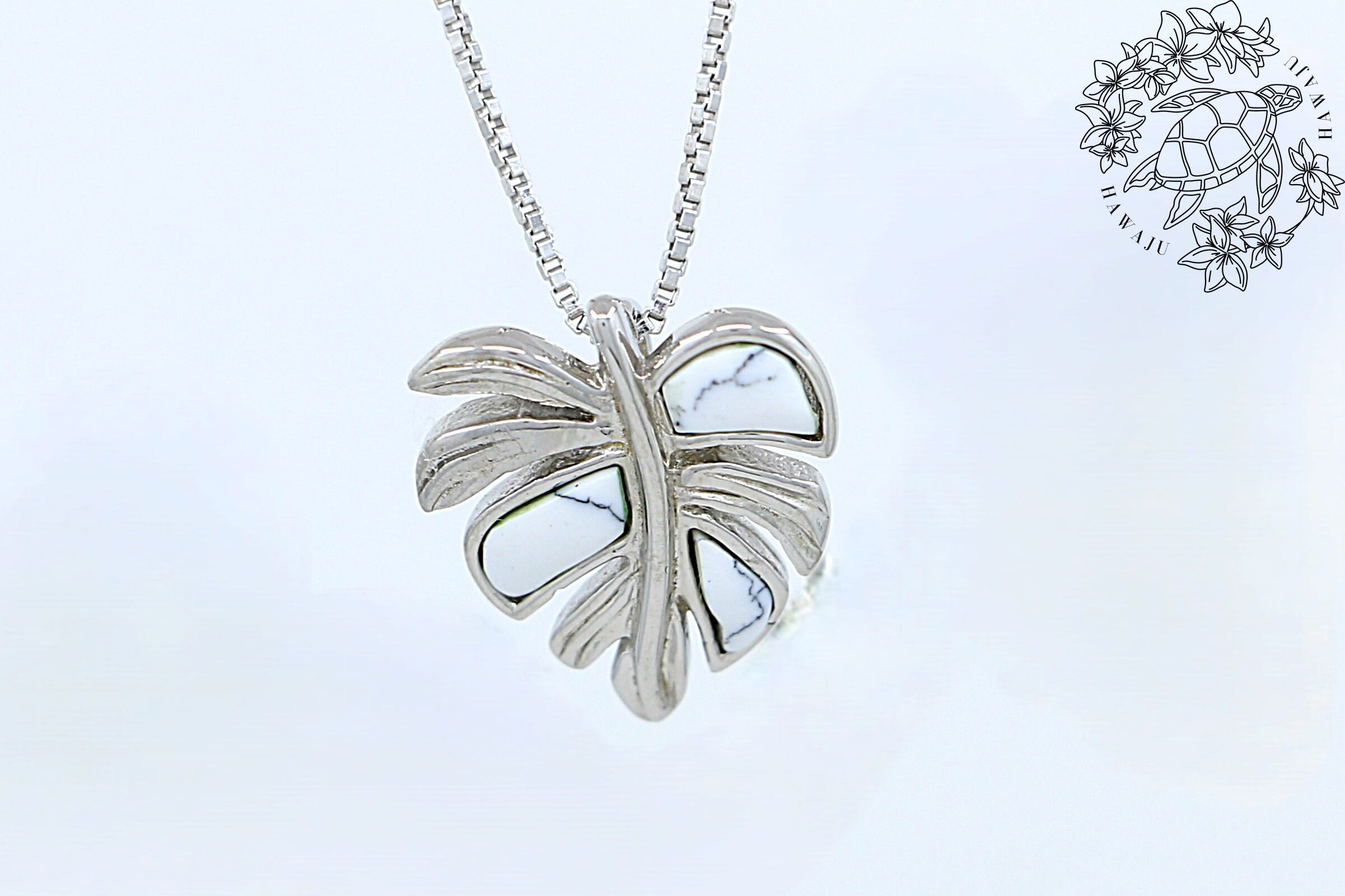 南国の楽園を象徴するモンステラをモチーフにした、エレガントなペンダントトップです。葉の部分には、清らかな輝きを放つホワイトターコイズをあしらい、シルバーの美しい光沢と調和したデザインになっています。ハワイアンジュエリーらしい自然の息吹を感じられる一品で、特別な日のギフトや自分へのご褒美にぴったりです。