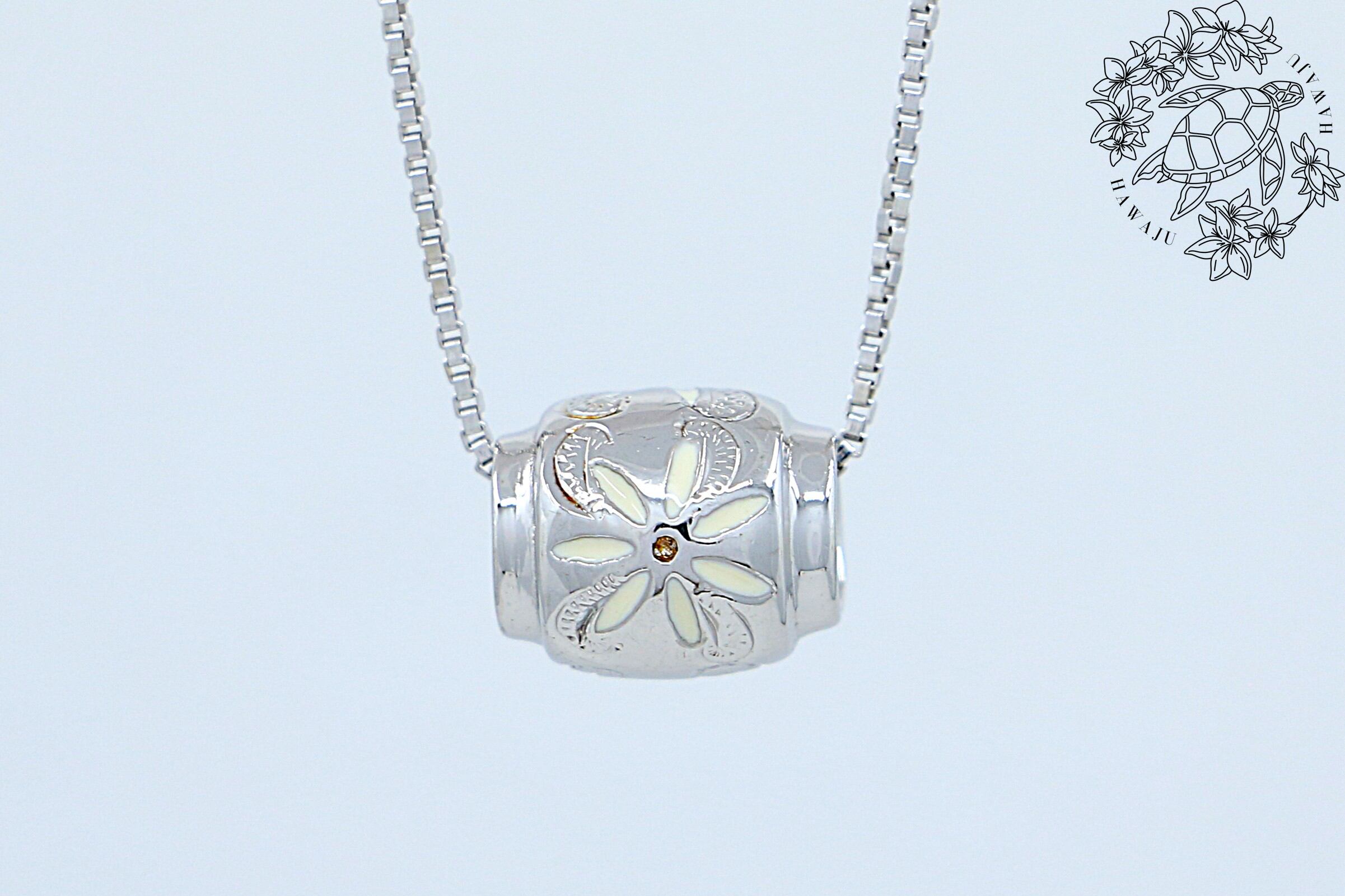 花びらには清らかなホワイトエナメルが丁寧に施され、Sterling Silver(シルバー925)の柔らかな輝きと調和。