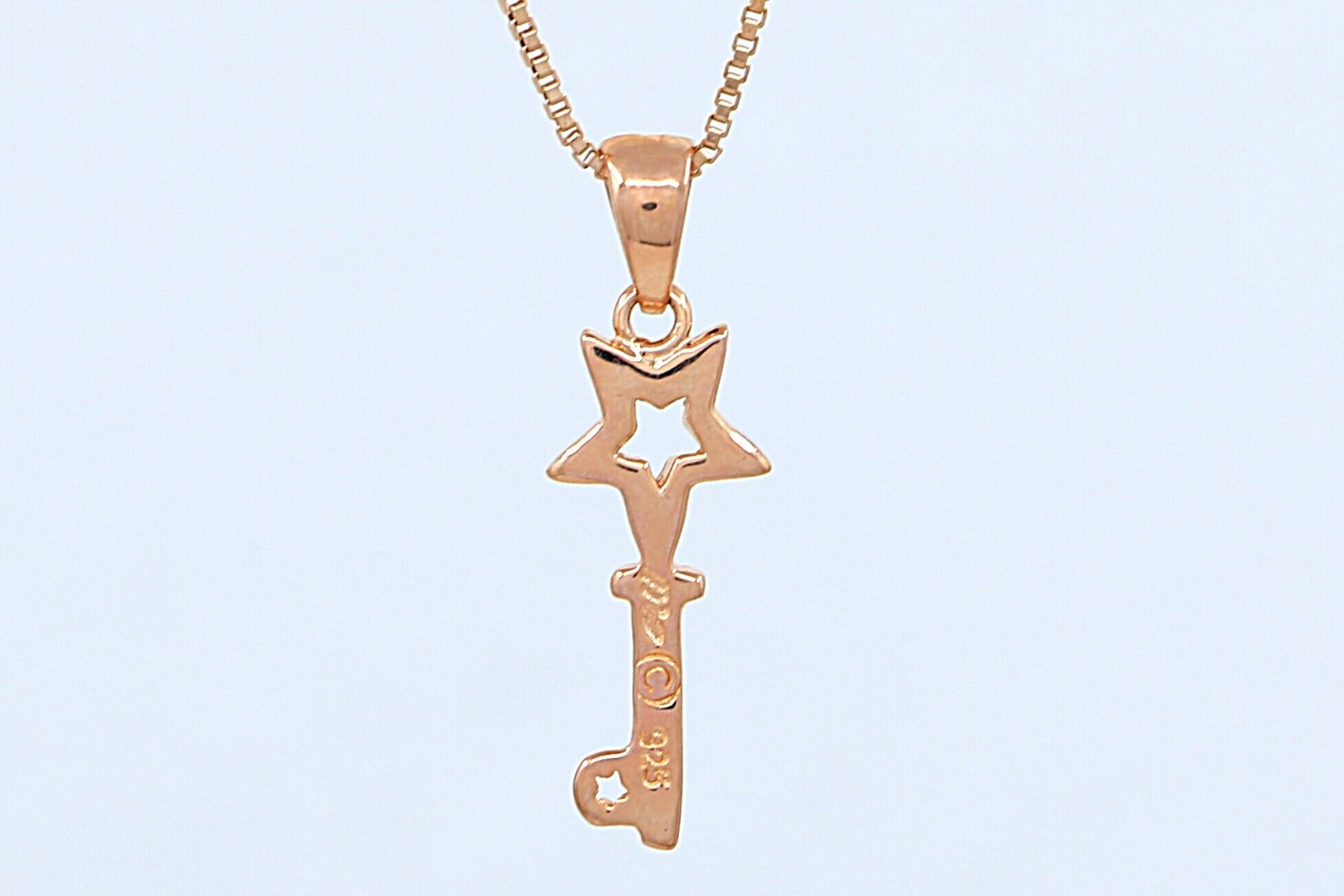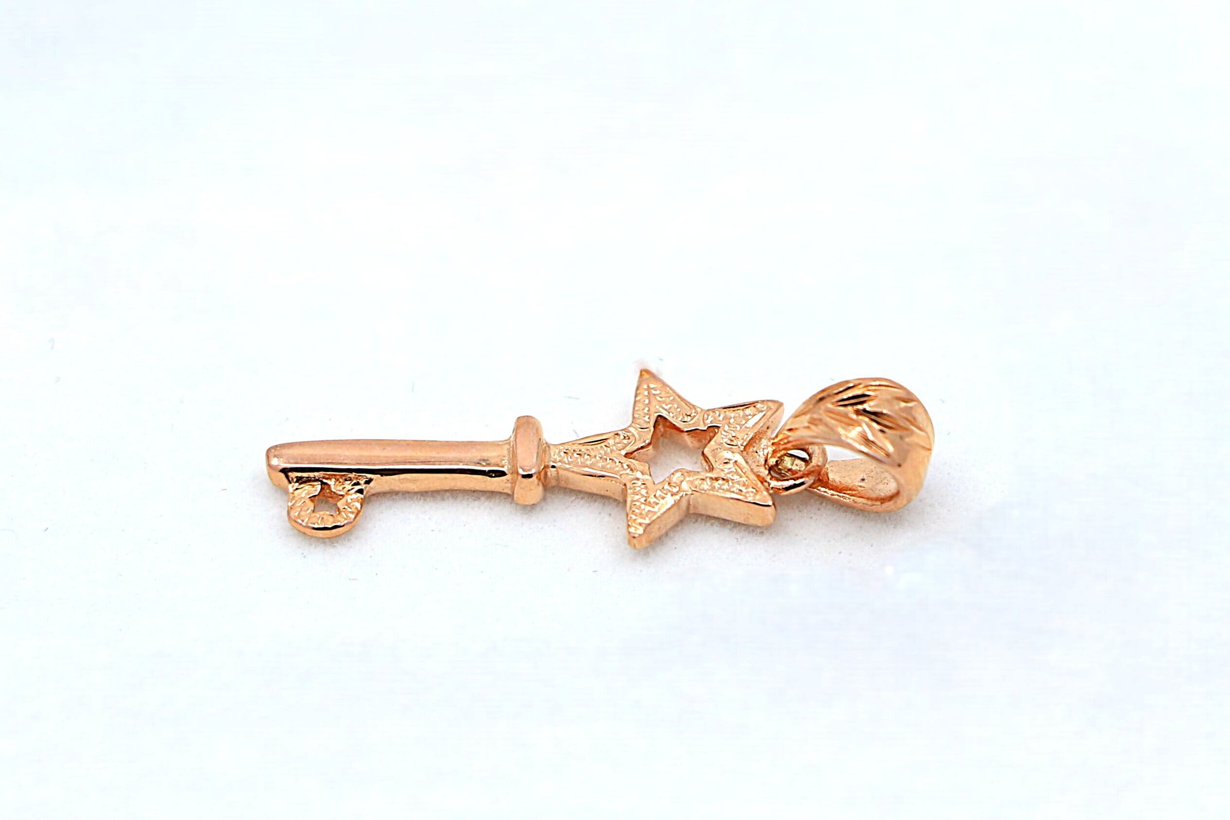 ピンクゴールドカラーのスター&キーモチーフペンダントトップです。身につけるたびに特別な意味と温かみを感じられる、一層華やかな一品に仕上げました。