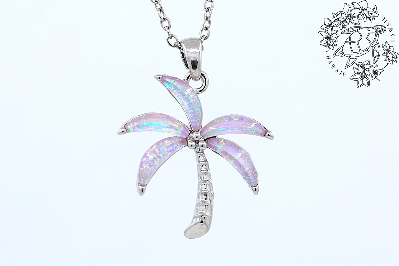 【ピンクレジン ヤシモチーフペンダントトップ(45cmチェーン付き)】