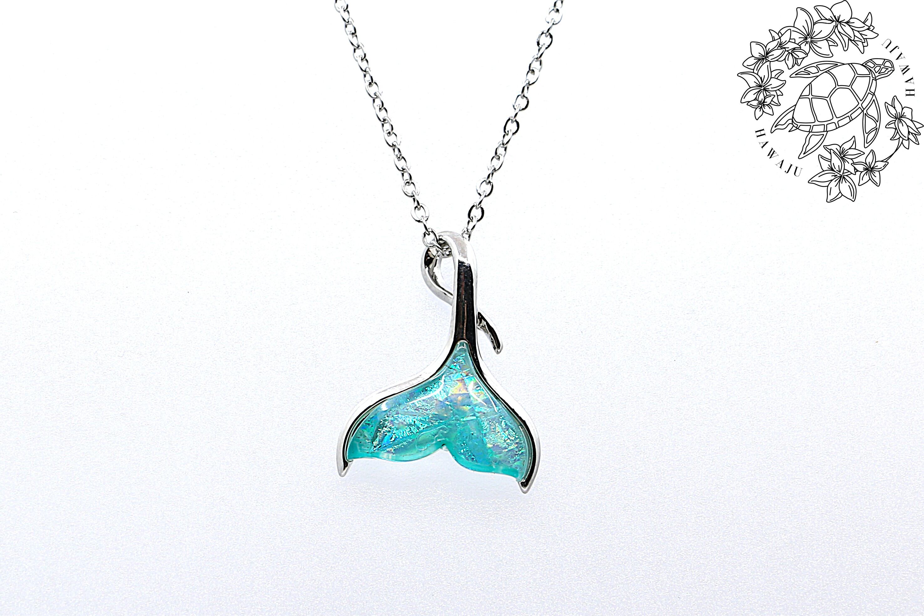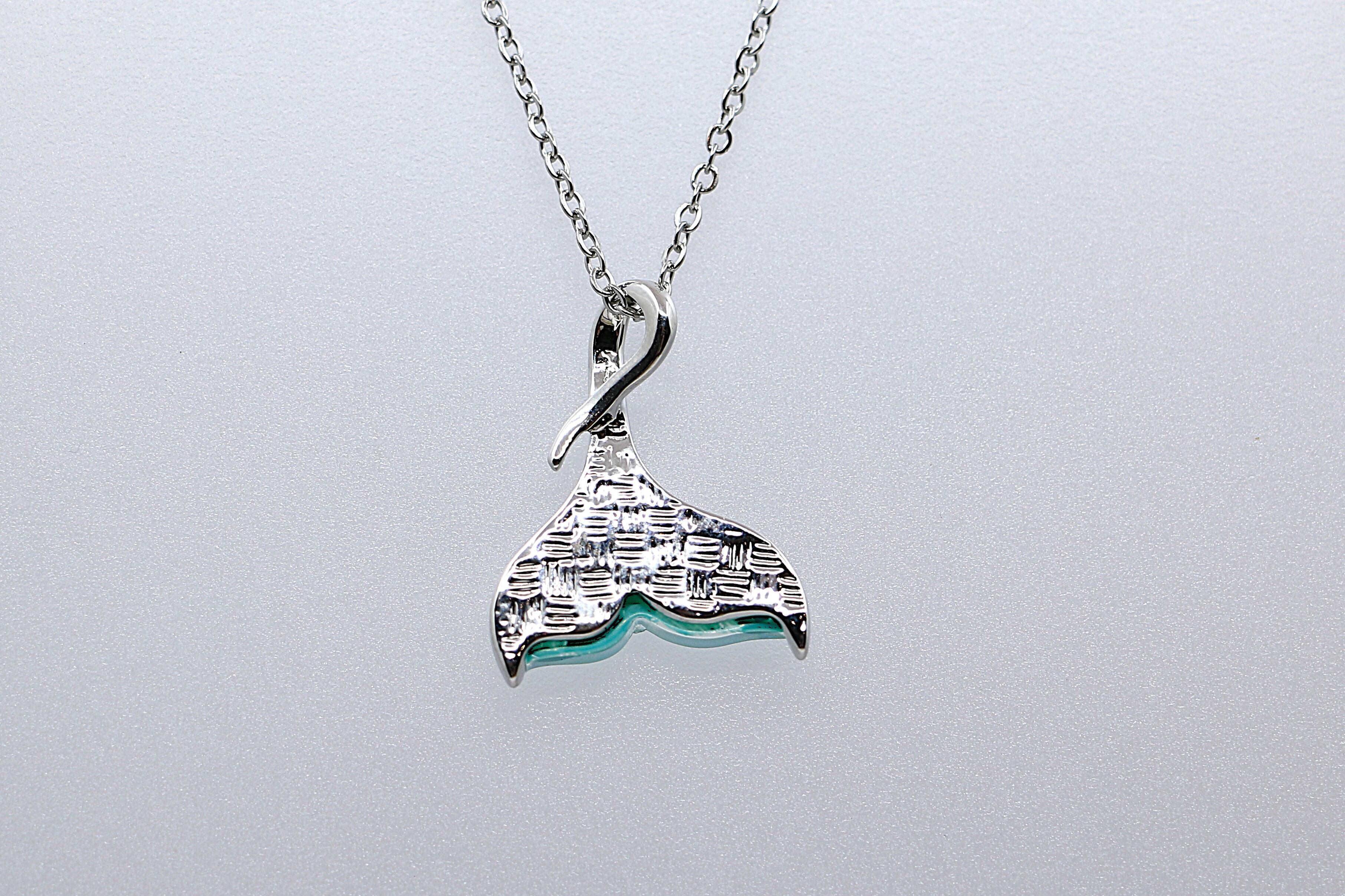 【グリーンレジン ホエールテールモチーフペンダントトップ(45cmチェーン付き)】