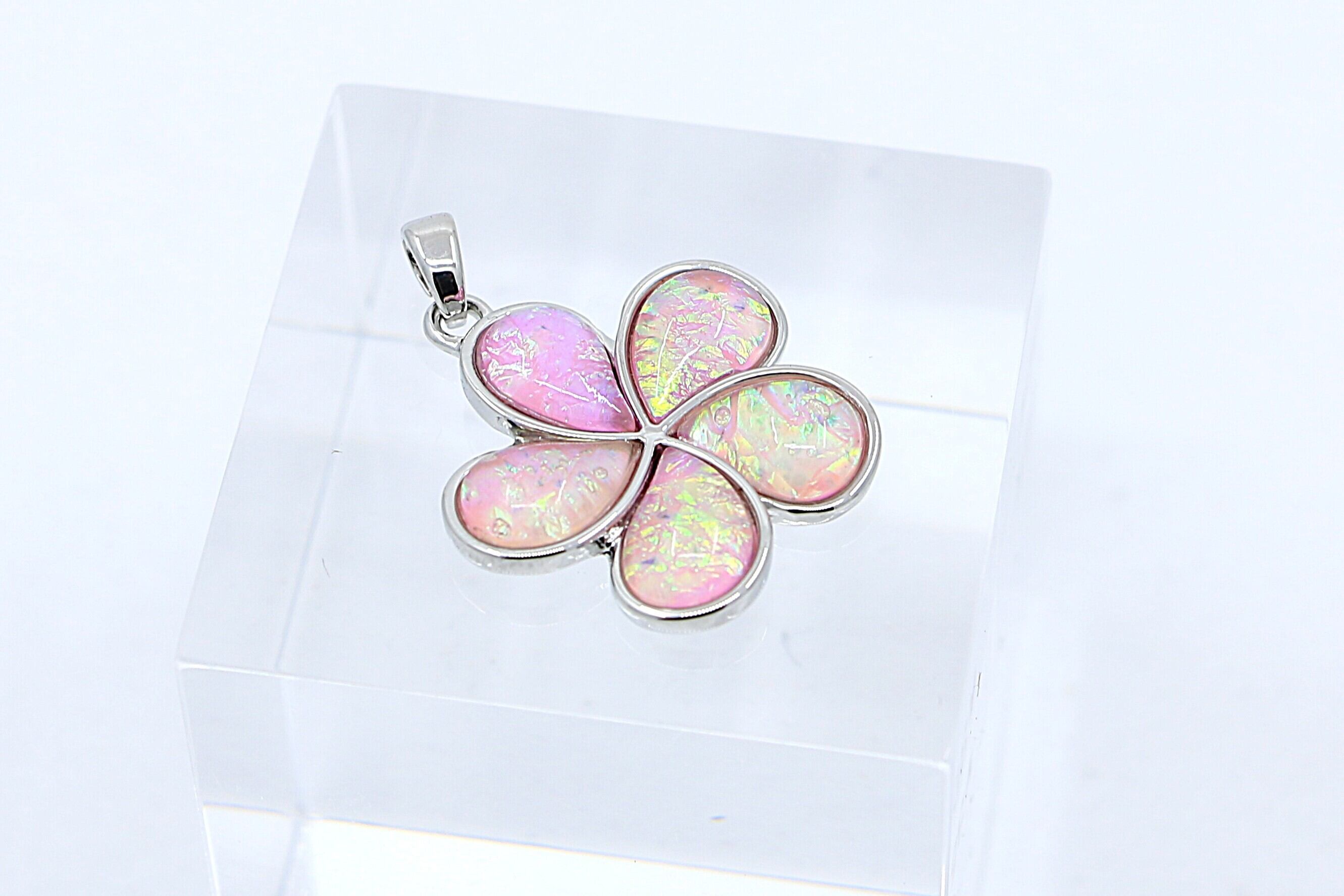 【ピンクレジン プルメリアモチーフペンダントトップ(45cmチェーン付き)】
