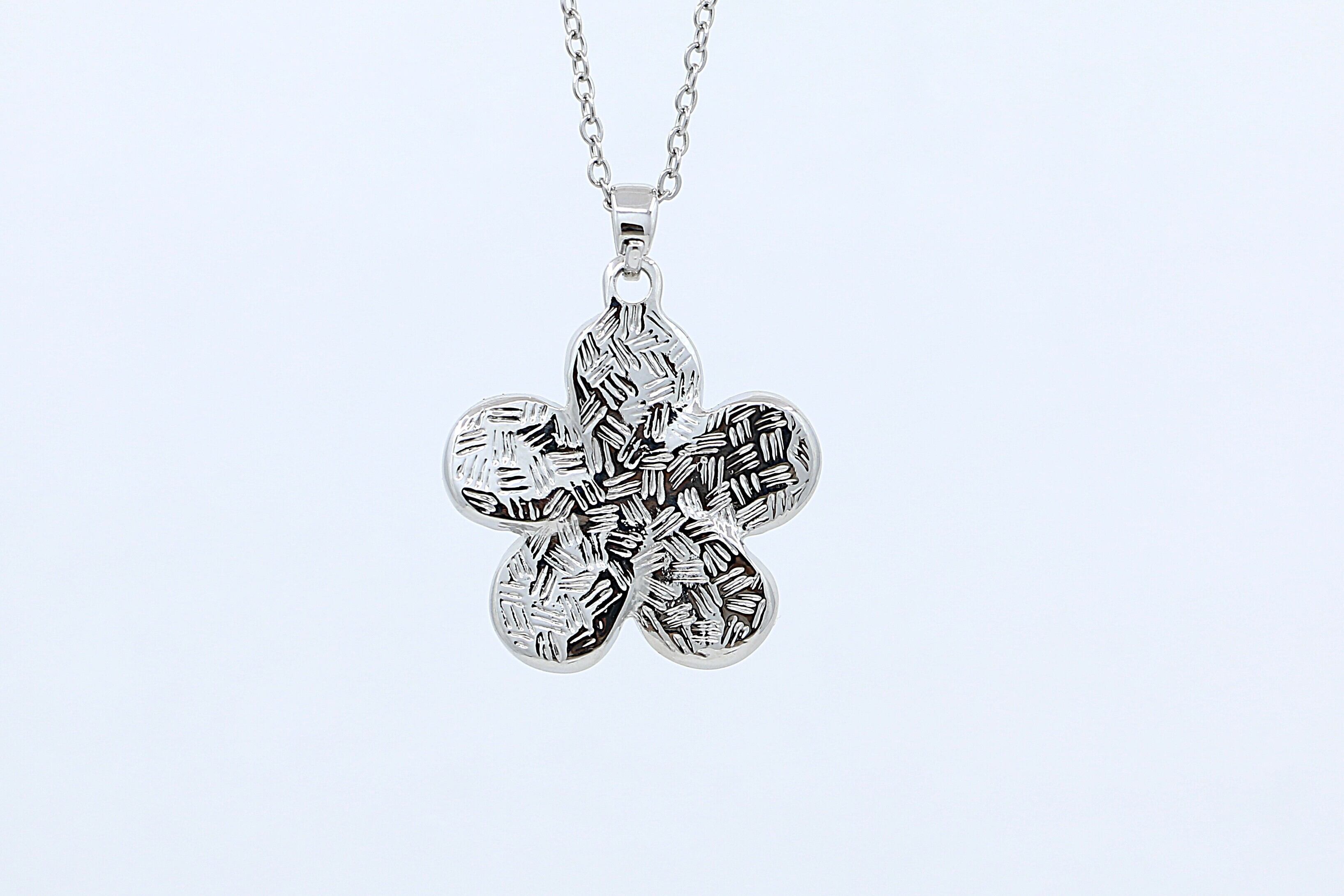 南国の象徴、プルメリアの花をモチーフにした華やかで可憐なペンダントトップ。