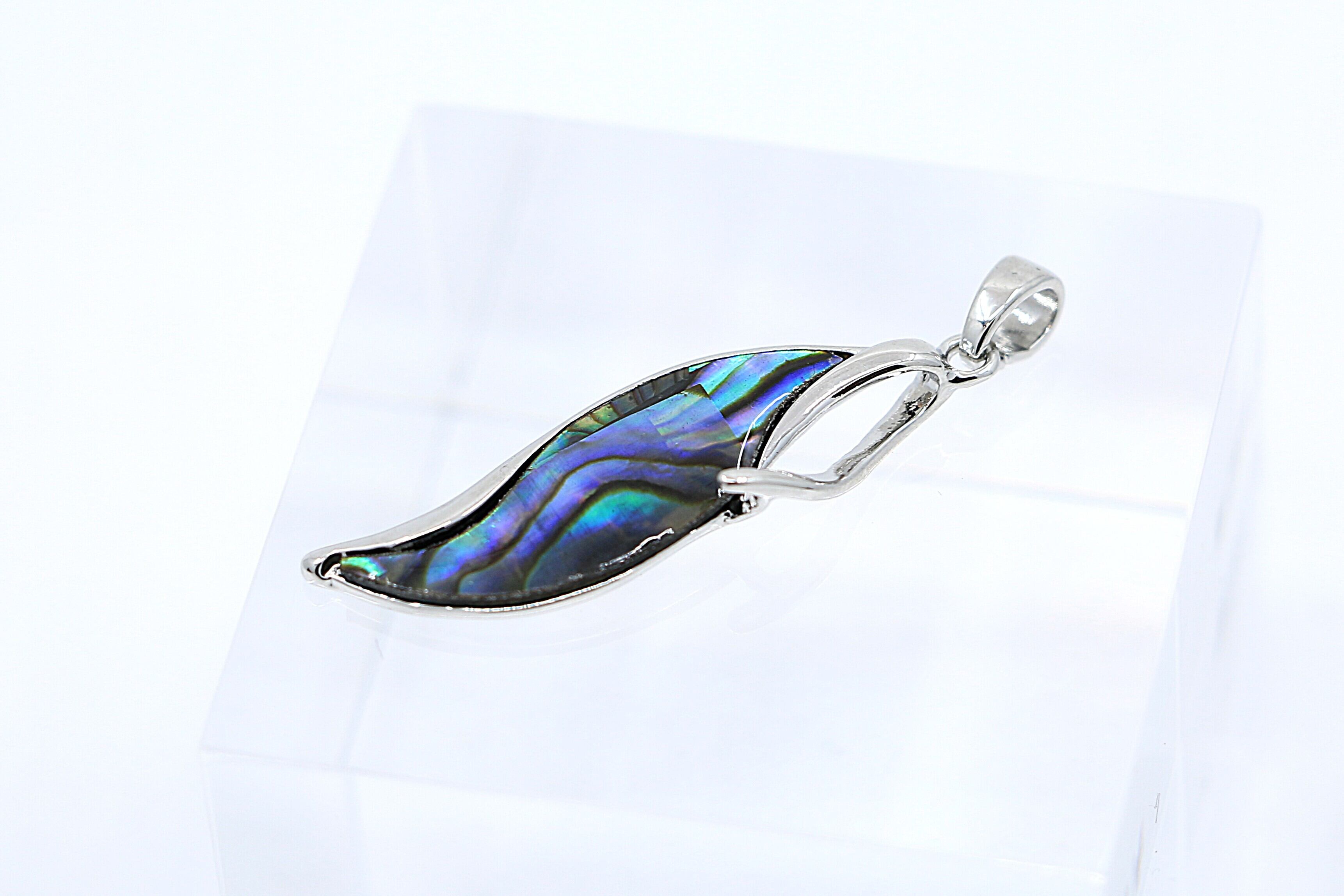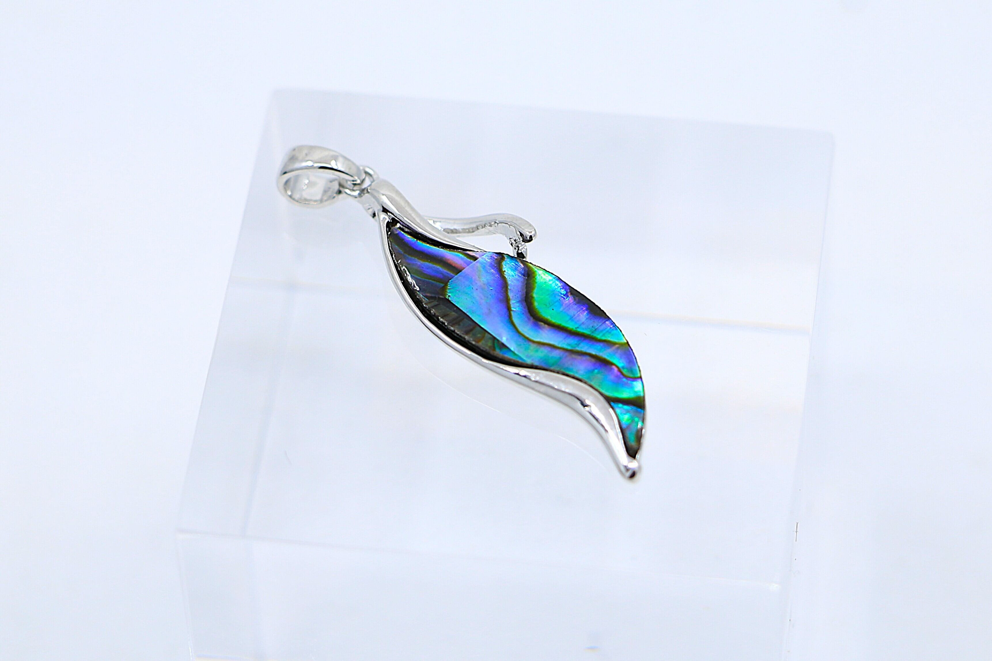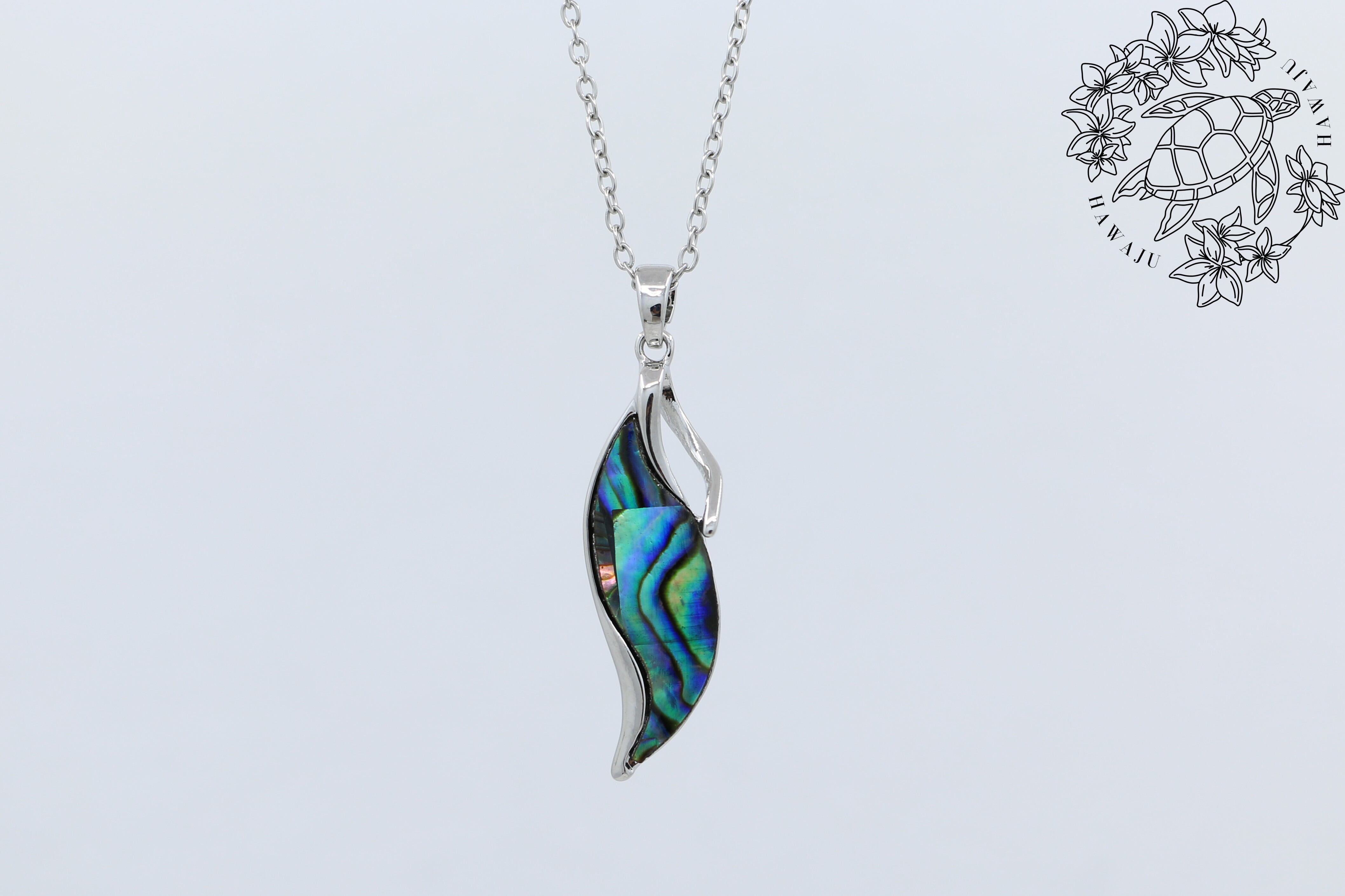 【アバロンシェル リーフモチーフペンダントトップ(45cmチェーン付き)】