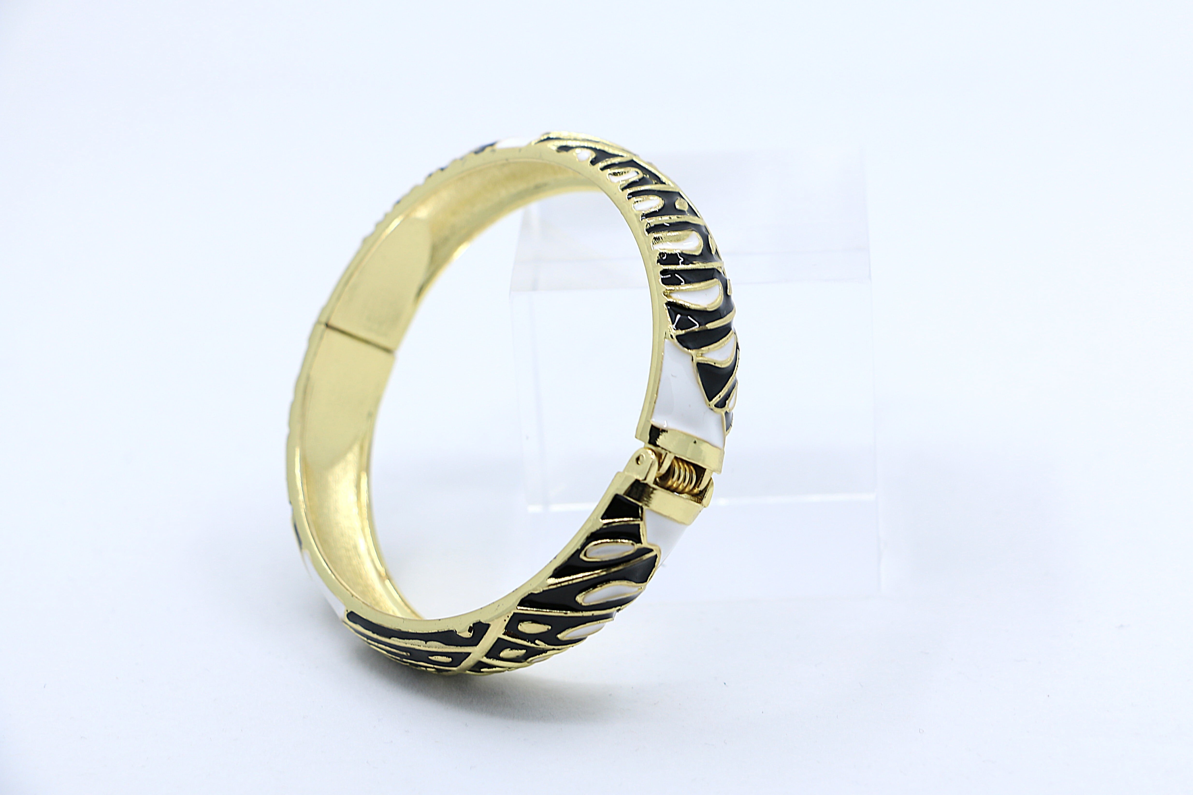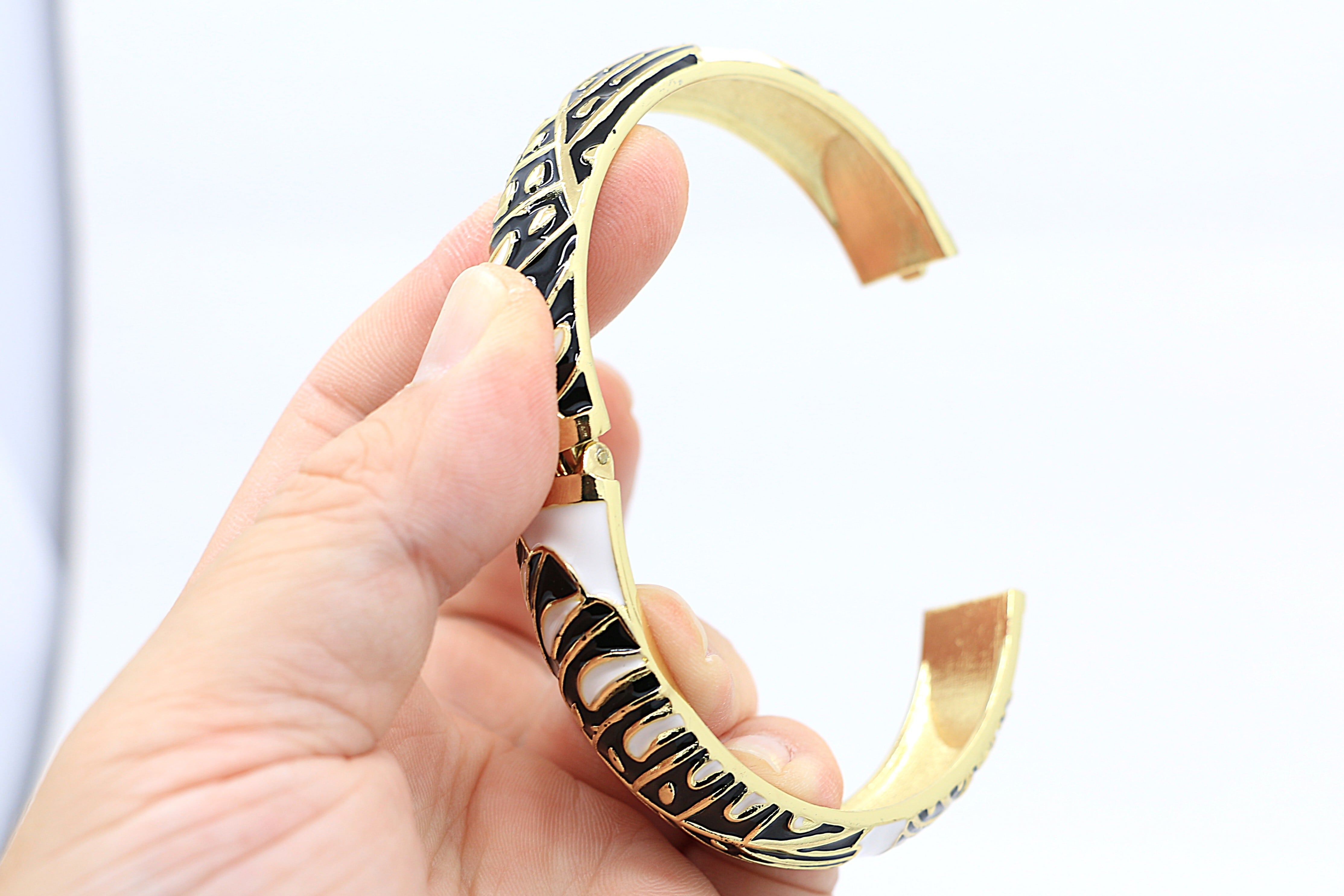 ゴールドカラーとブラックエナメルの組み合わせが、シックで上品な印象を引き立てます。