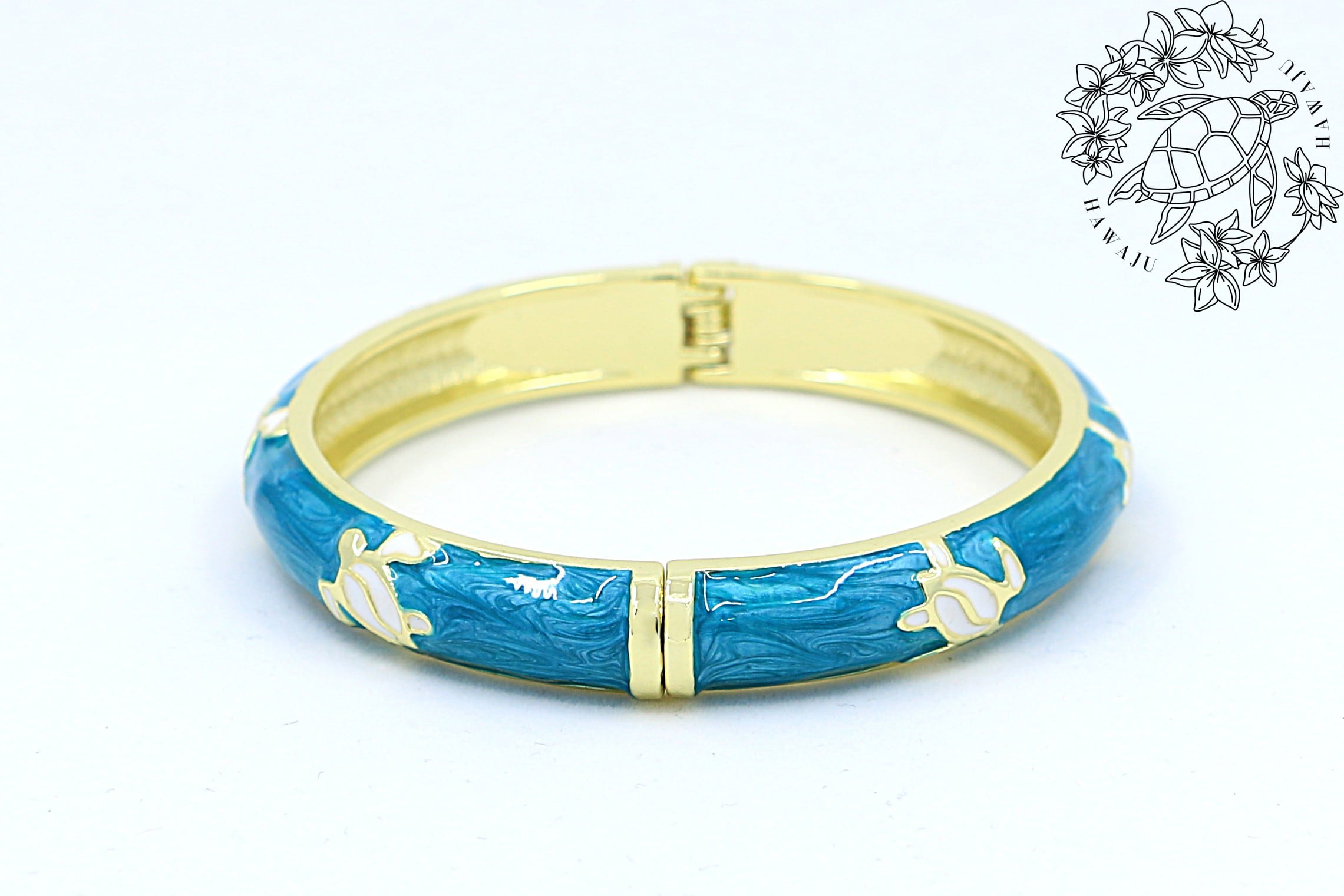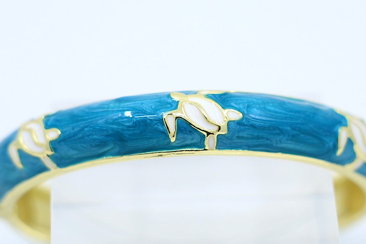 ハワイの海の癒しとホヌの幸福の力を腕元に纏い、日常に華やかさと前向きなエネルギーをプラスできる特別なバングルです。