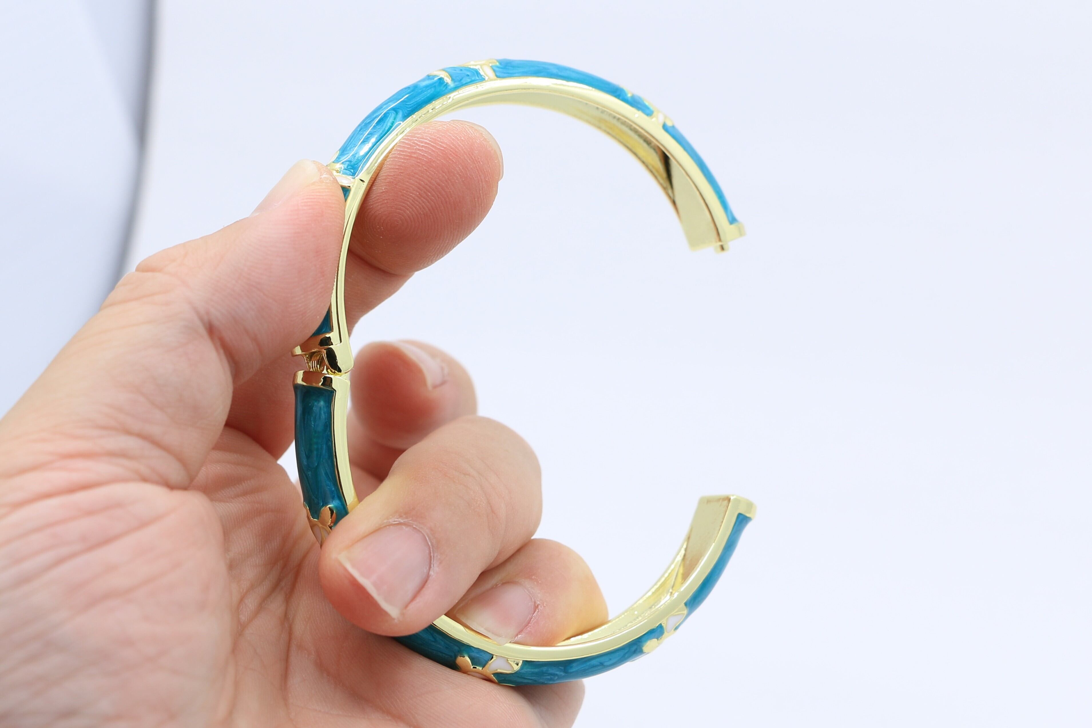 ゴールドカラーのコーティングとアクアエナメルのコントラストが、トロピカルで上品な印象を引き立てます。
