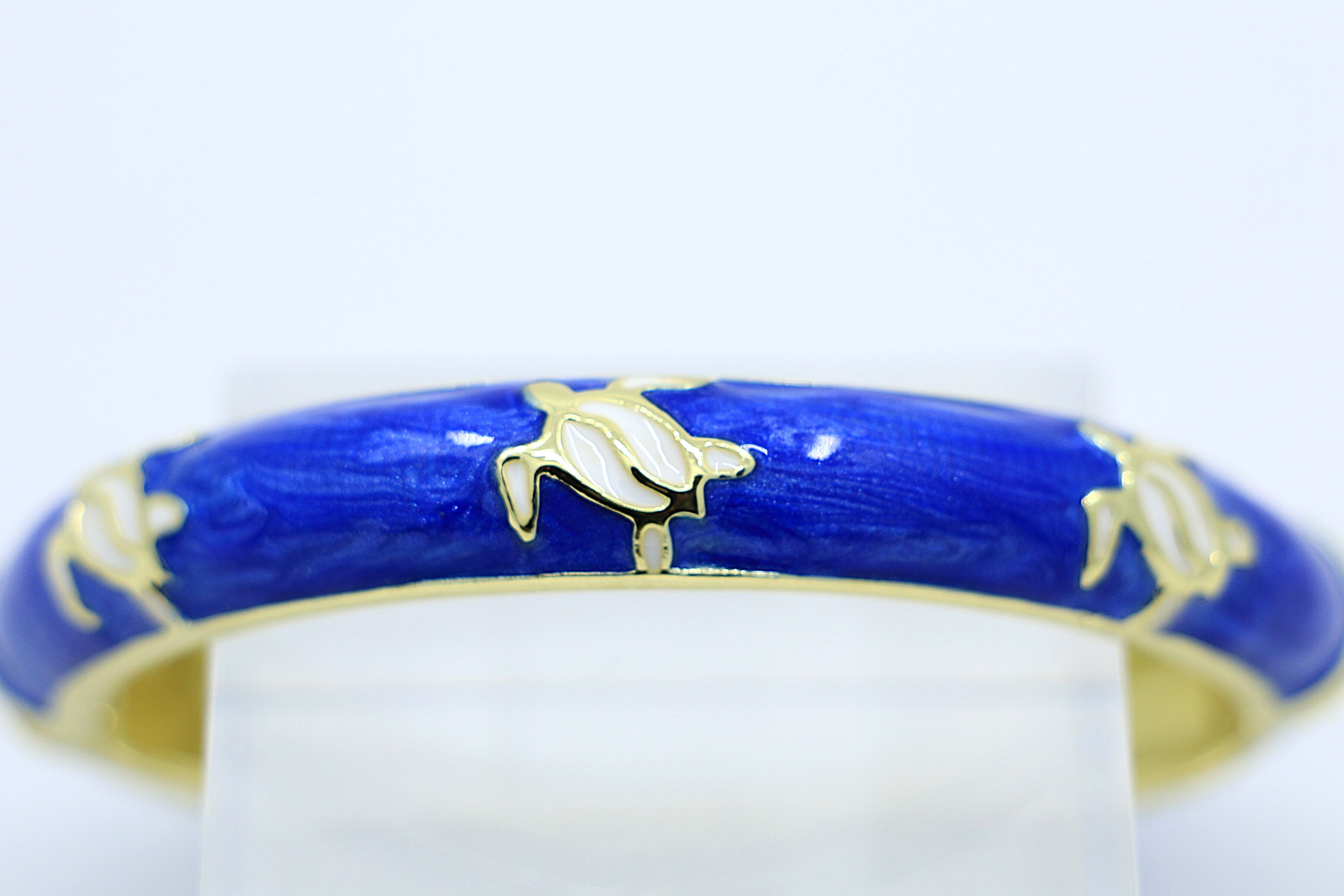 ハワイを象徴するホヌ(ウミガメ)のモチーフをデザインに取り入れた、美しいバングルです。