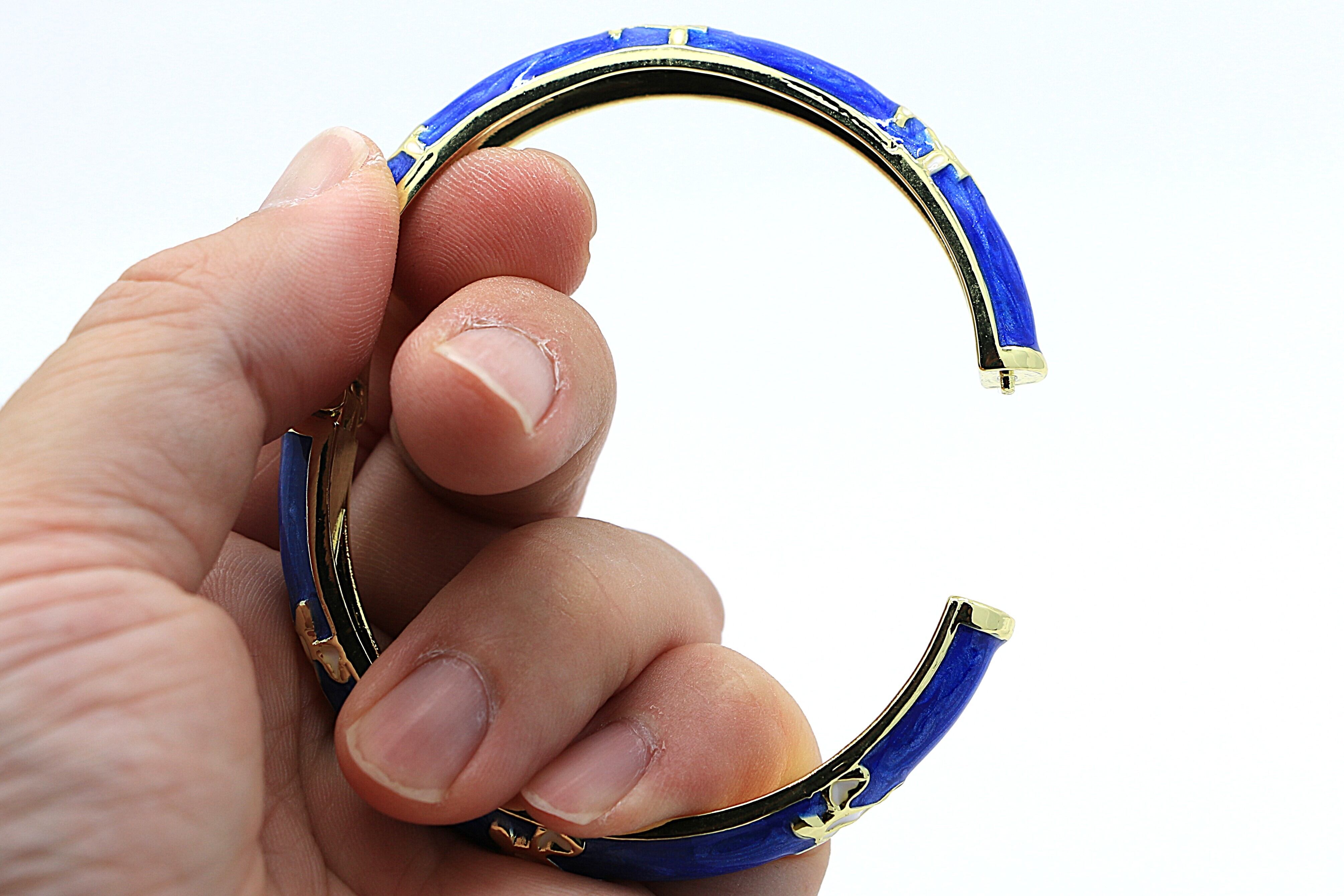 ゴールドカラーのコーティングとブルーエナメルのコントラストが、トロピカルで上品な印象を引き立てます。