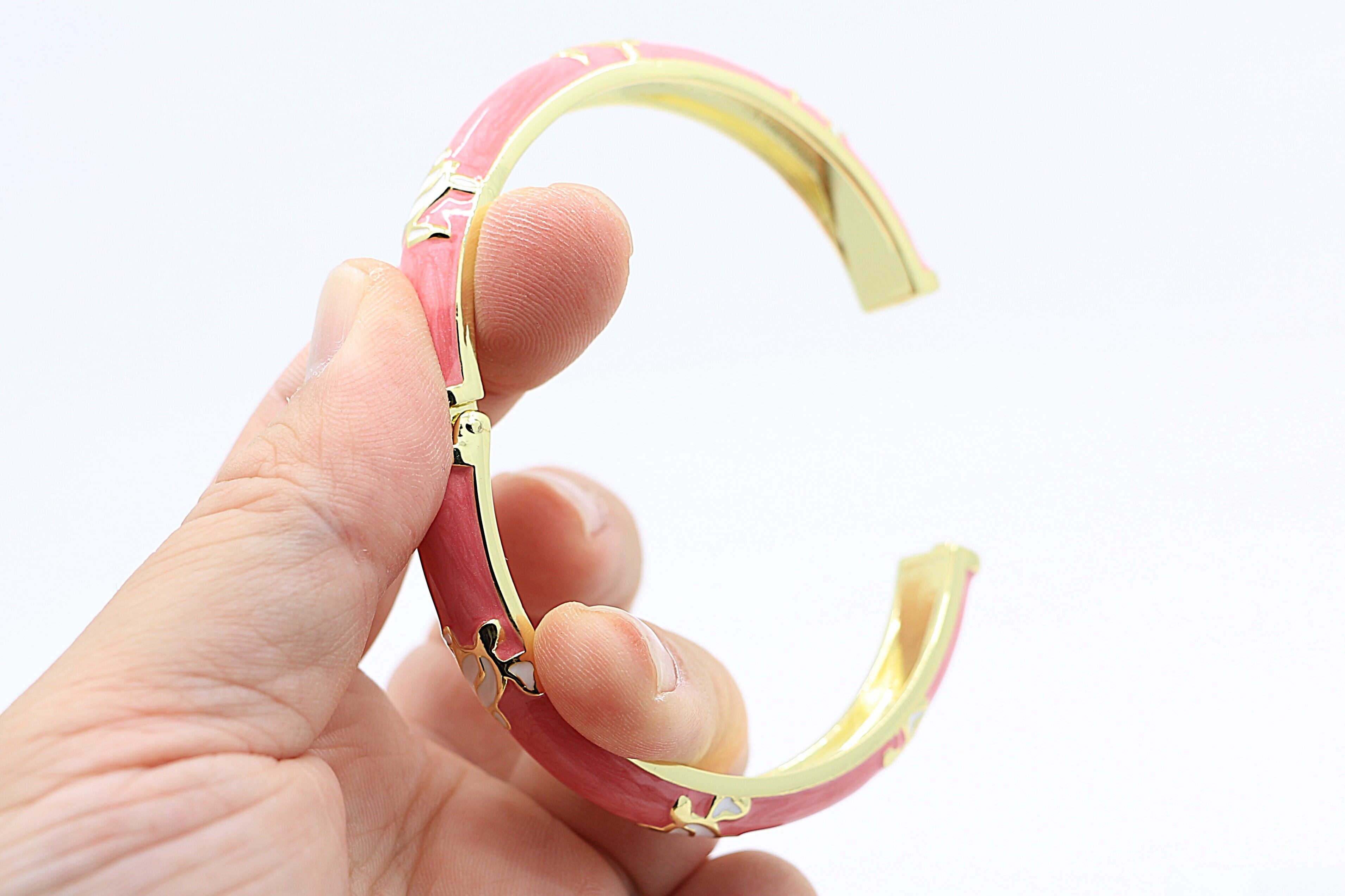 ゴールドカラーのコーティングとピンクエナメルの組み合わせが、トロピカルで上品な印象を引き立てます。