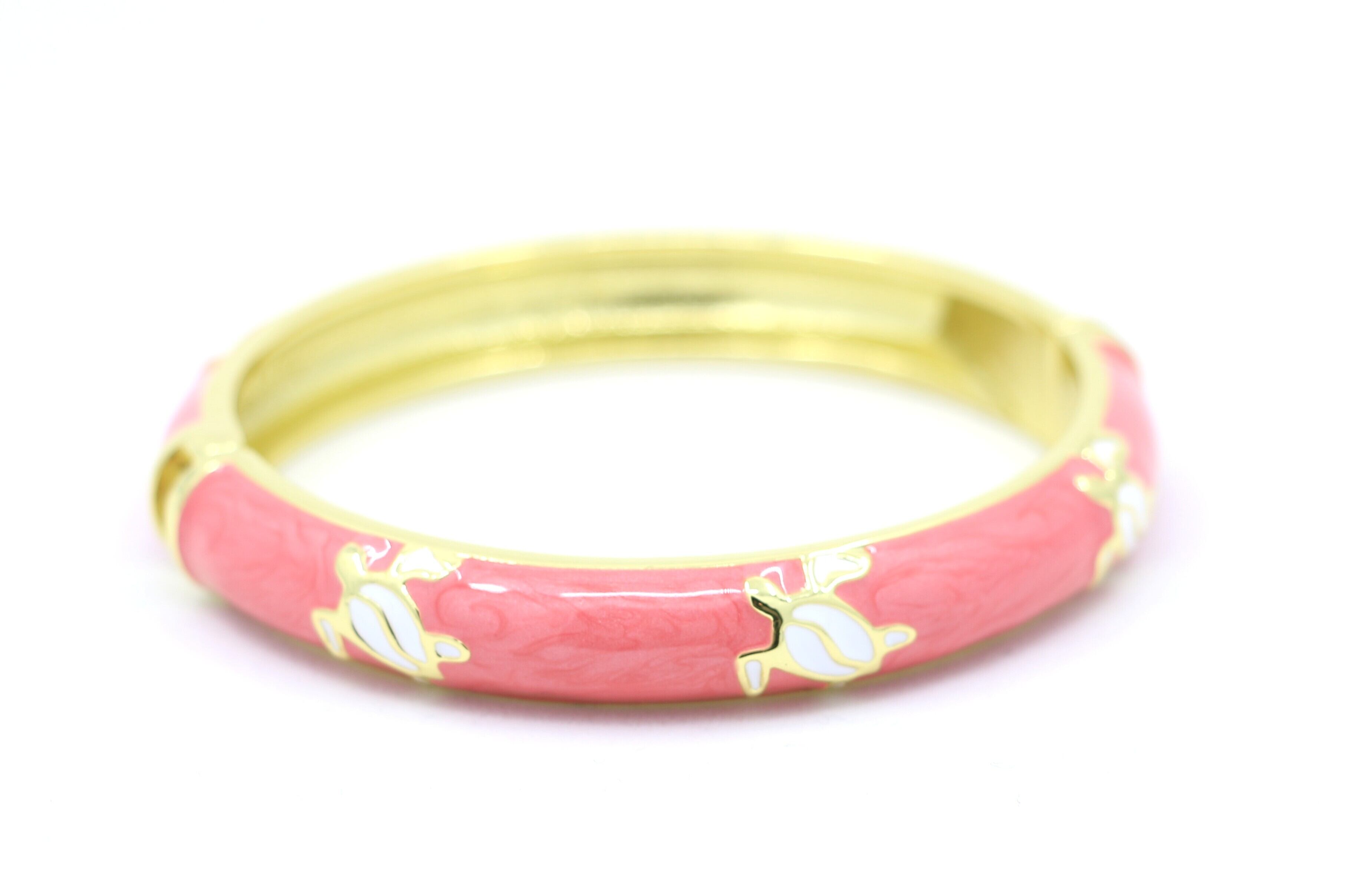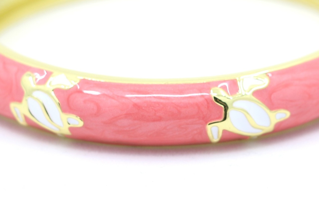 合金素材にゴールドカラーのコーティングを施し、ピンクのエナメルの上でホヌが華やかに映えます。