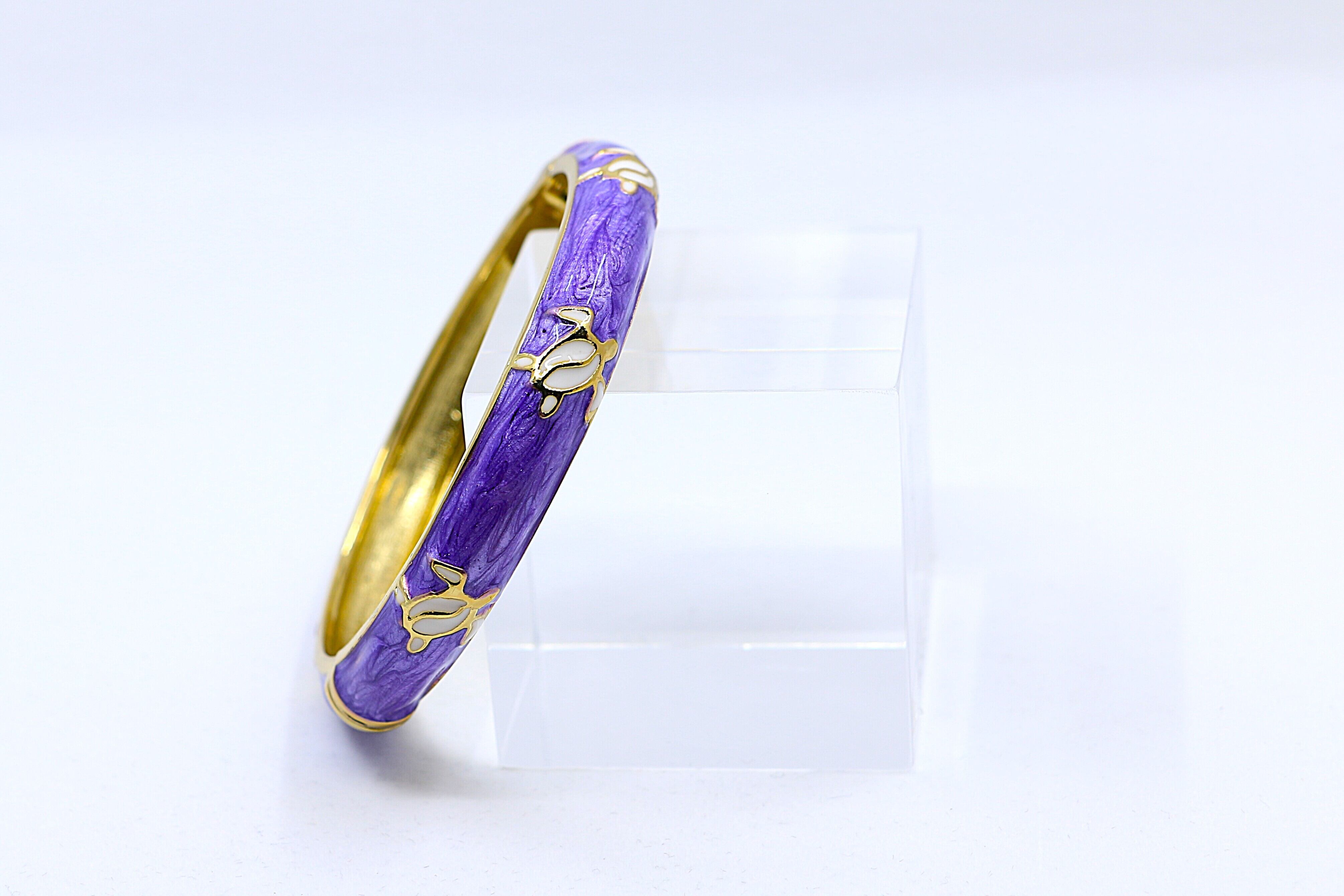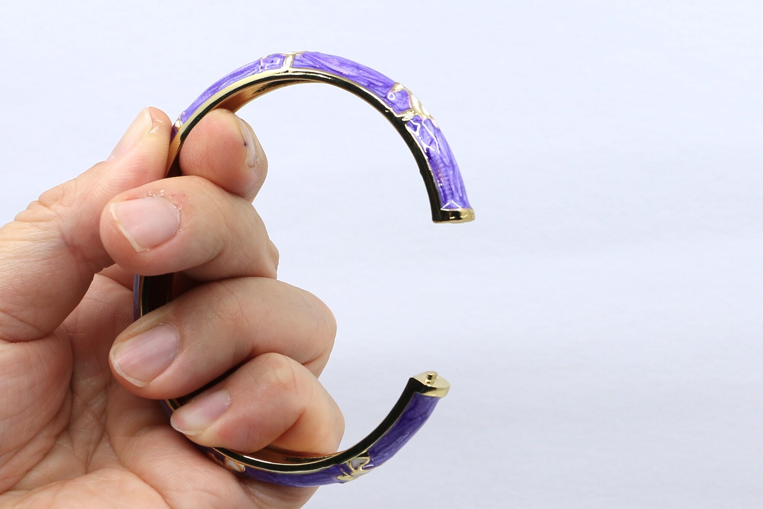 ゴールドカラーのコーティングとパープルエナメルのコントラストが、トロピカルで上品な印象を引き立てます。