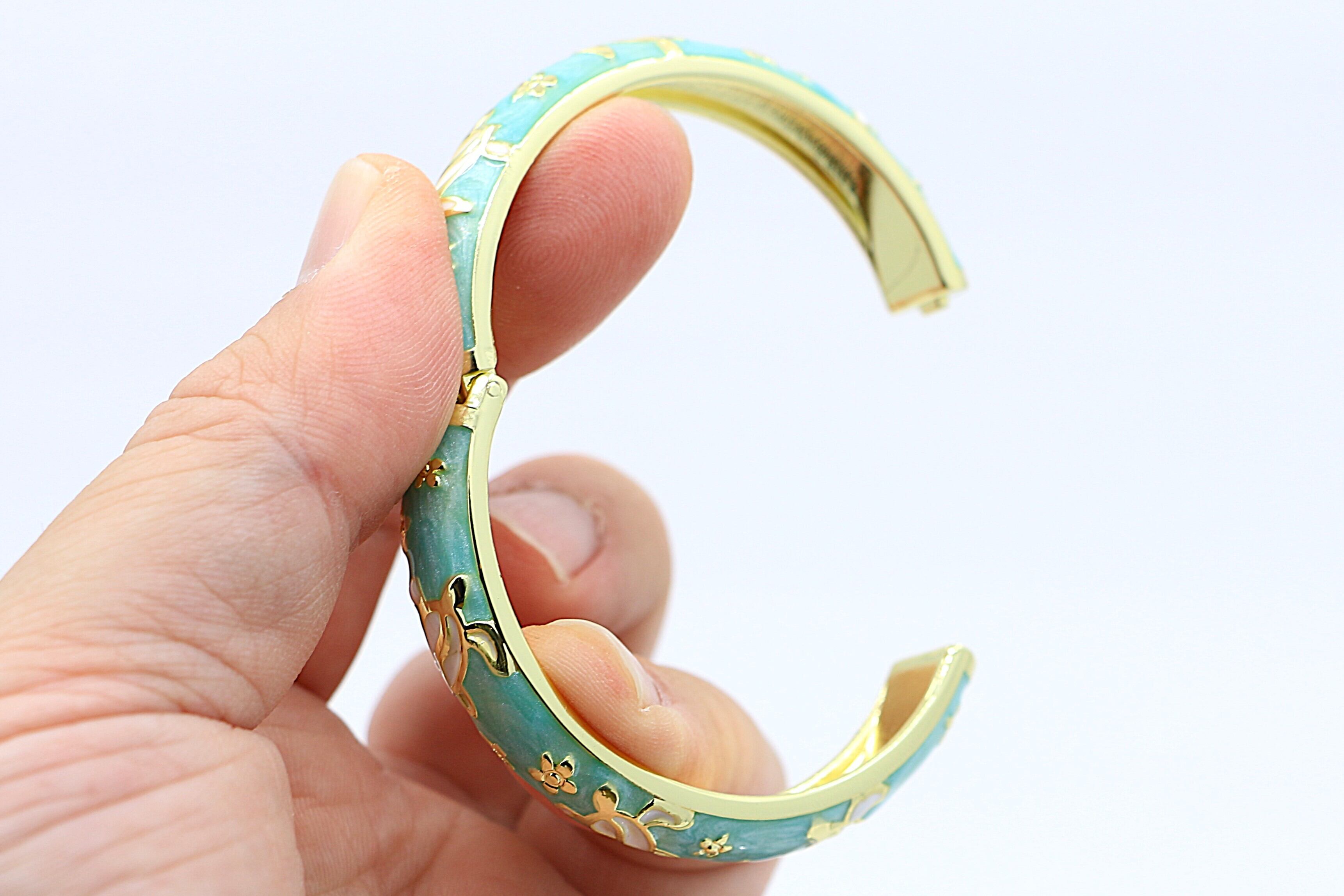 ゴールドカラーとアクアエナメルの爽やかな組み合わせが、元気で明るい印象を引き立てます。