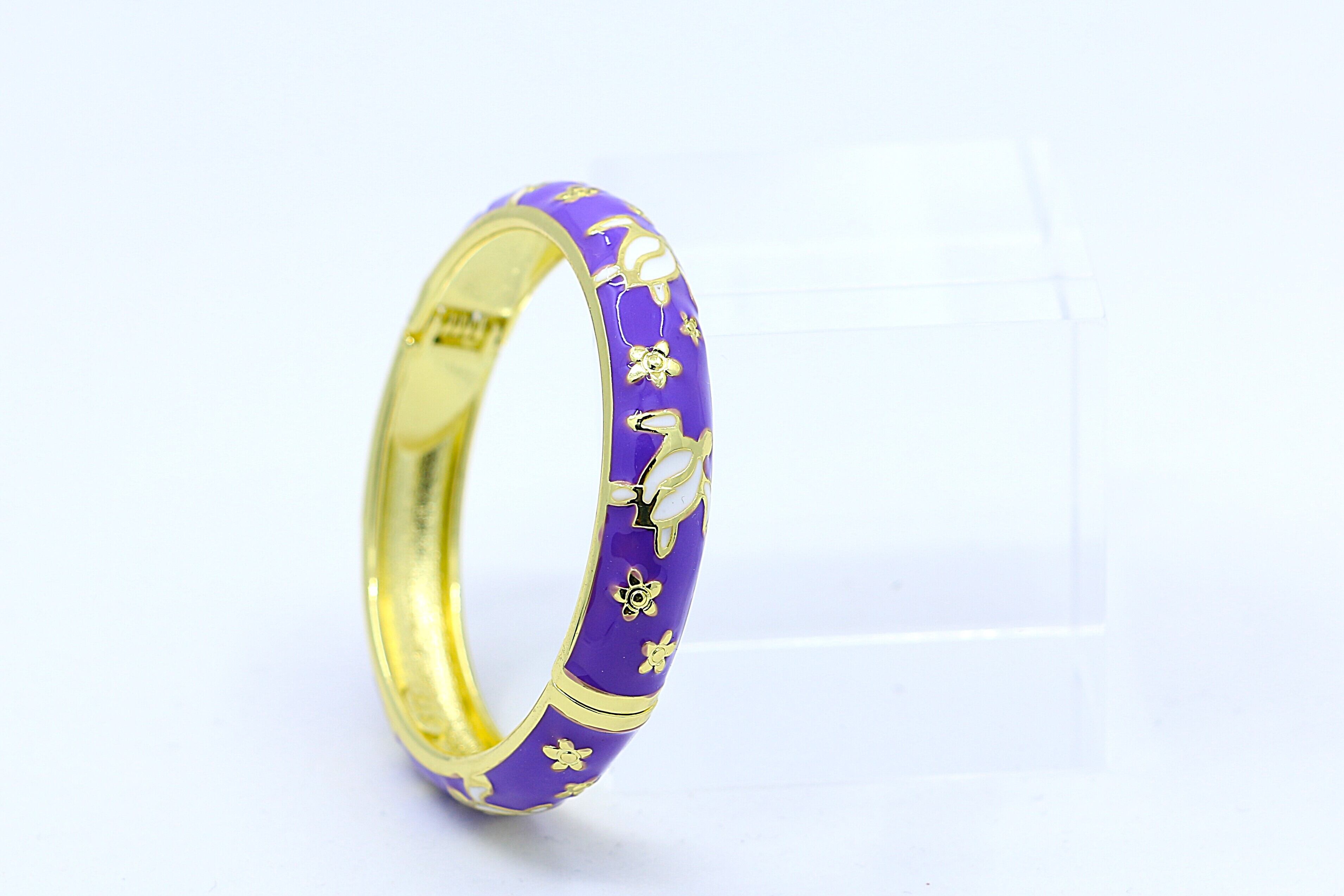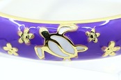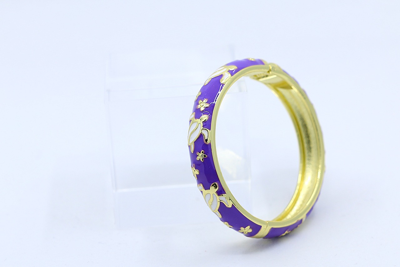 合金素材にゴールドカラーのコーティングを施し、パープルカラーのエナメルの上でホヌが上品に輝きます。