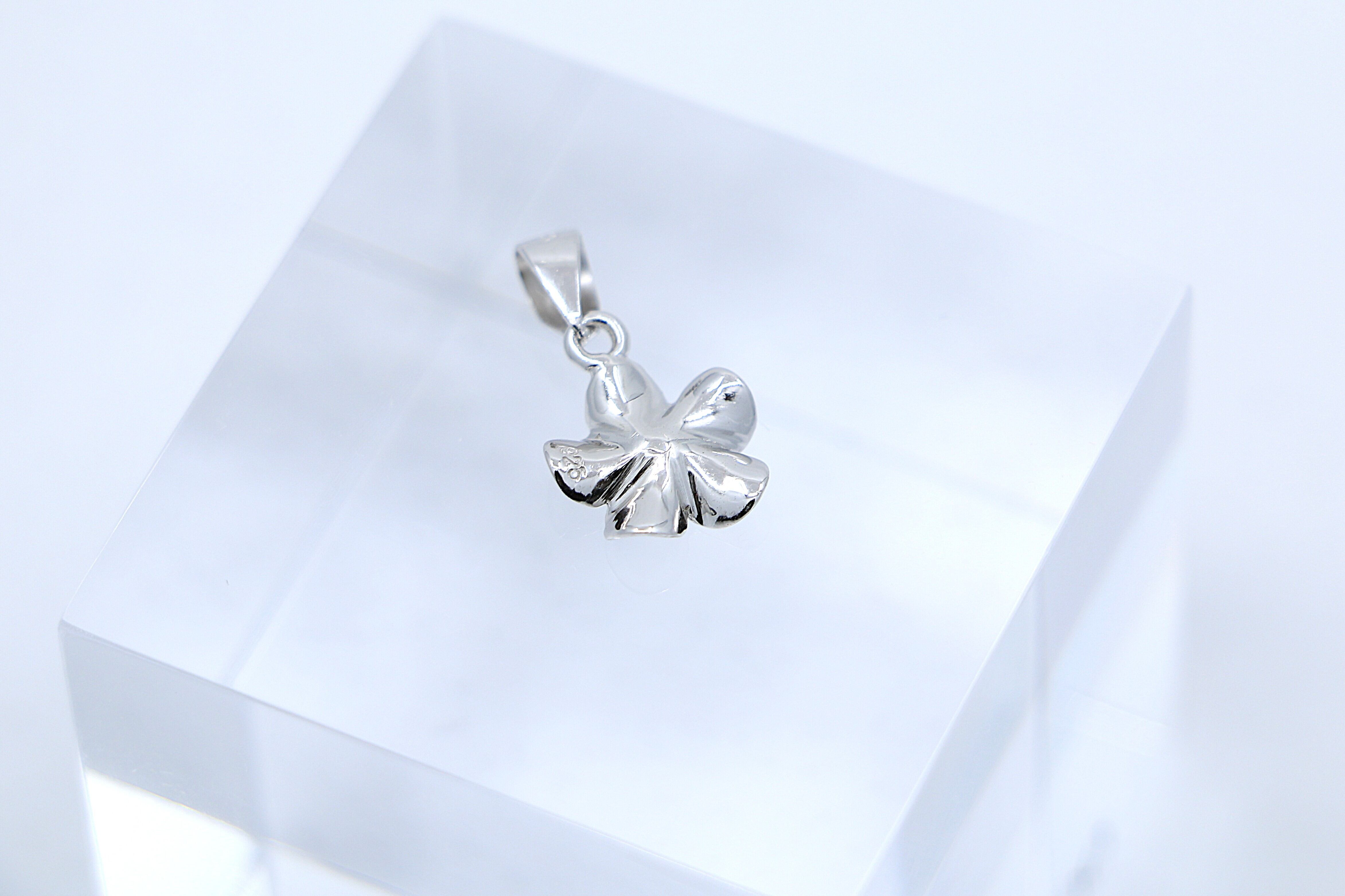 このペンダントトップは、ハワイアンジュエリーを象徴するプルメリアモチーフをあしらった、上品で華やかなデザインのアイテムです。