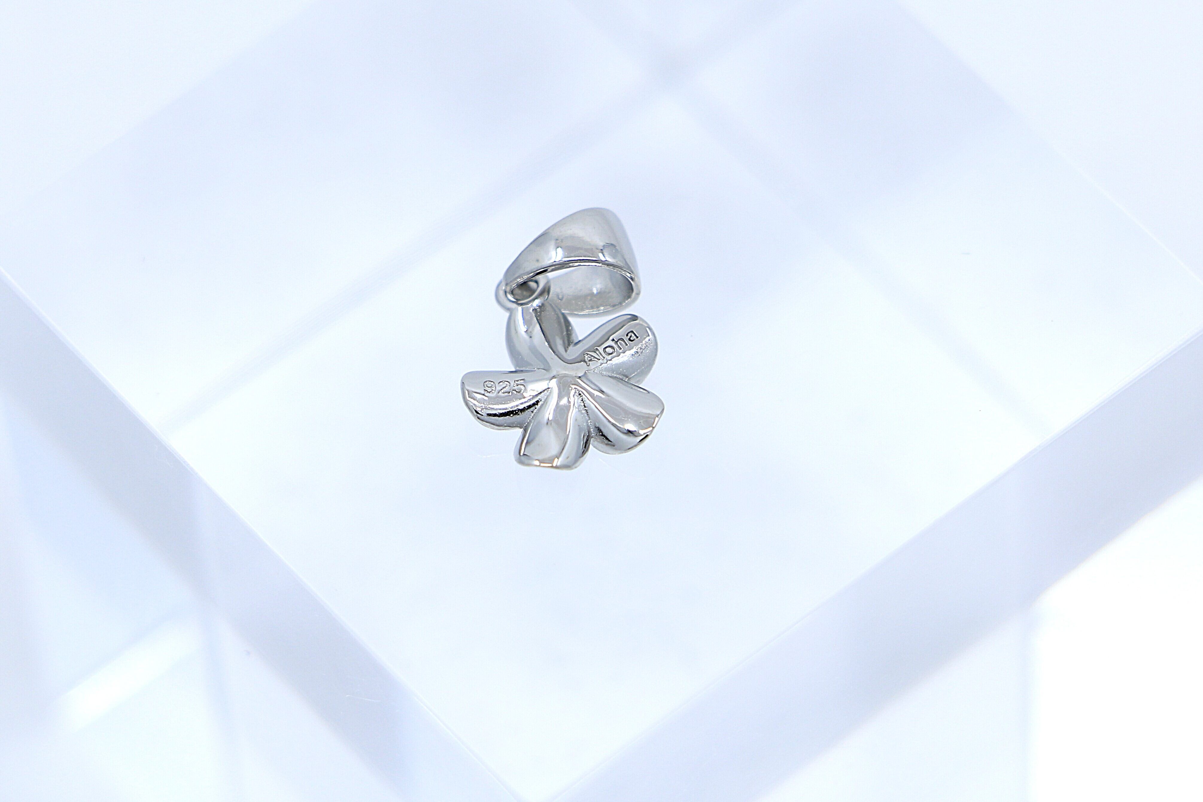 このペンダントトップは、ハワイアンジュエリーを象徴するプルメリアモチーフをあしらった、上品で華やかなデザインのアイテムです。