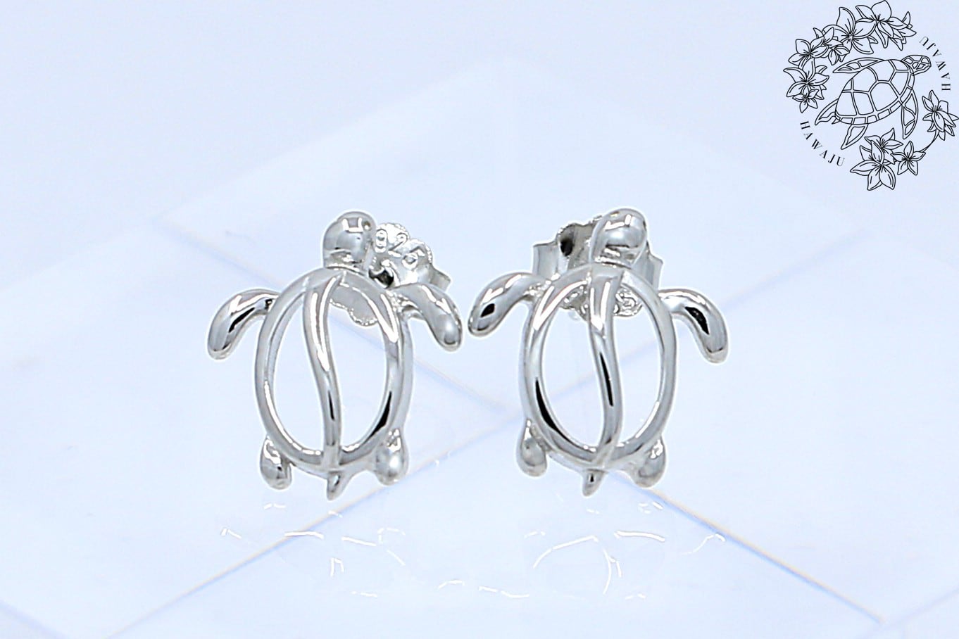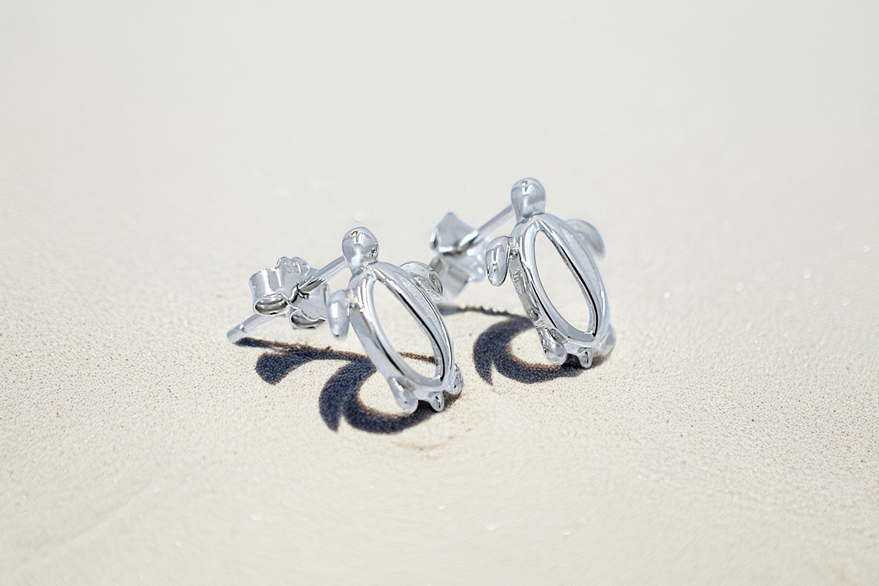 ホヌの可愛らしいフォルムとシルバーカラーが耳元でしっかり輝くポストピアスは、身に着ける人に長寿や平和、幸運をもたらす意味を持つハワイアンジュエリーです。