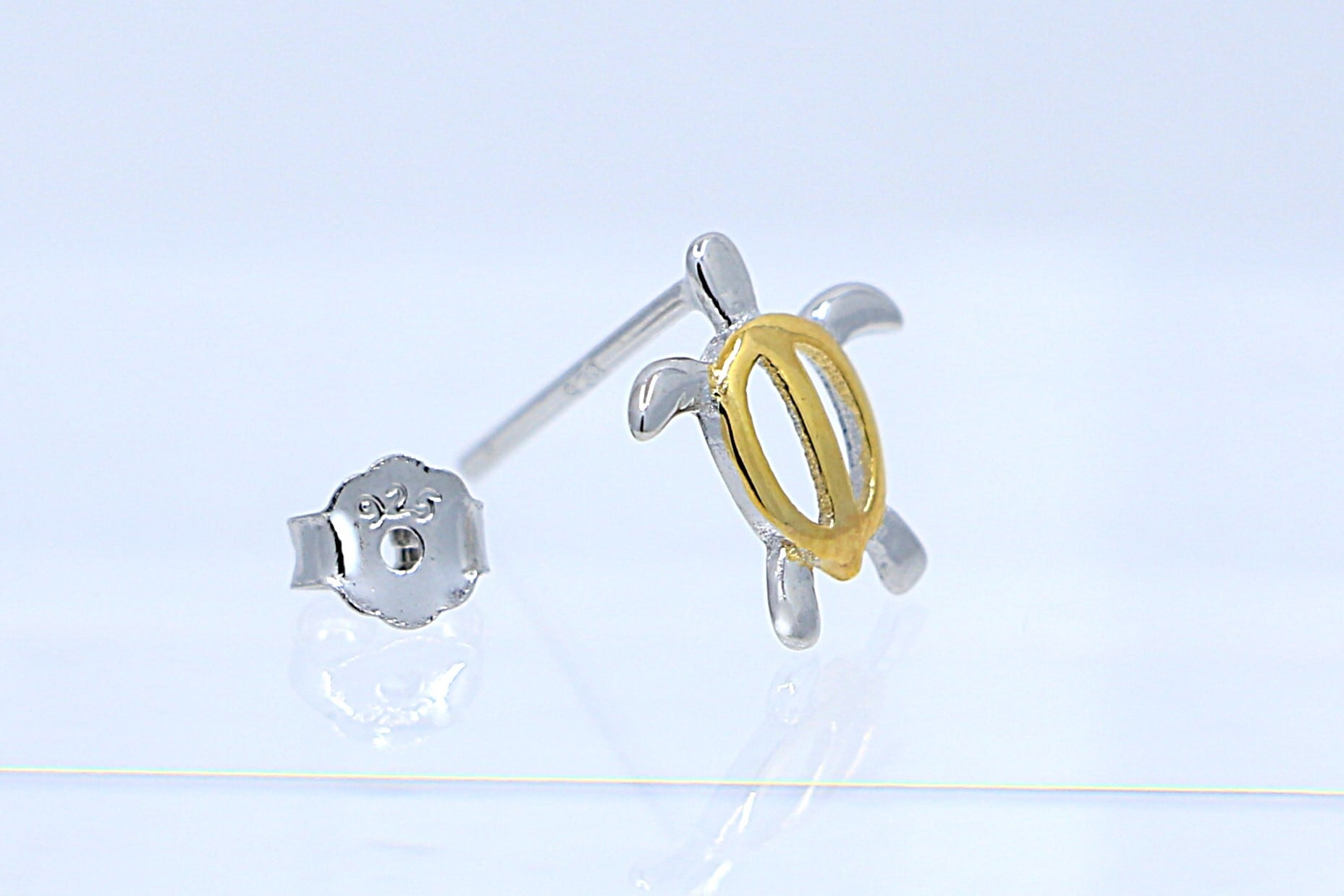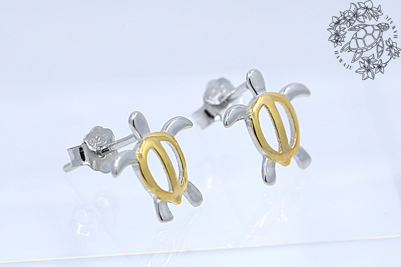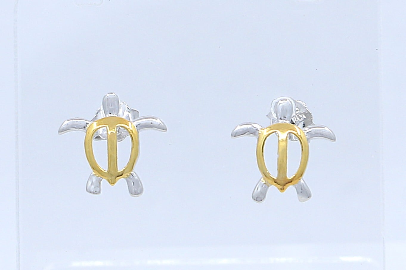 愛らしいホヌ(ウミガメ)がデザインされたこのポストタイプピアスは、イエローゴールドとシルバーの輝きが美しいハワイアンジュエリーです。