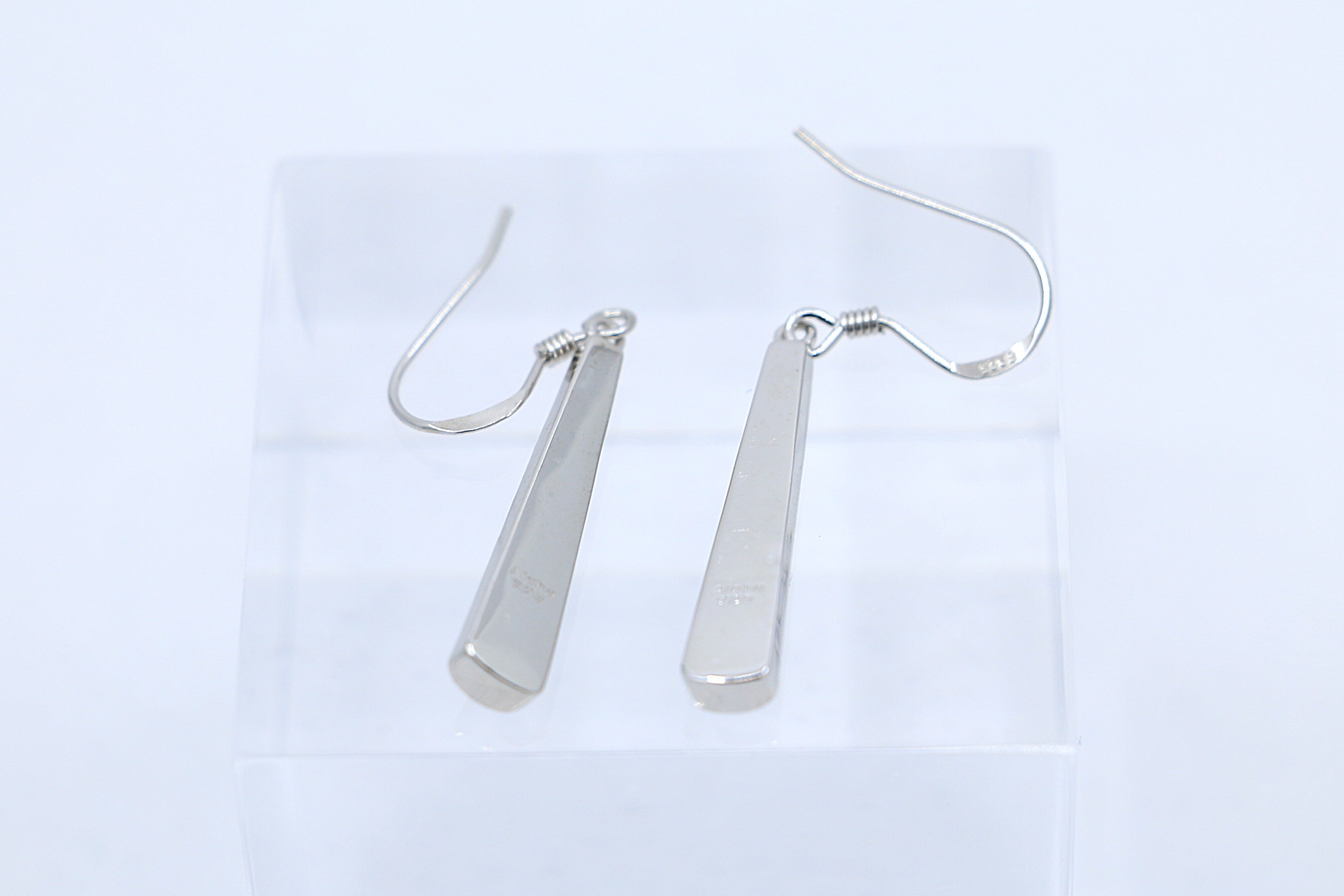Sterling Silver のクリアな輝きが縦長のフォルムをスタイリッシュに際立たせ、耳元に上品な存在感をプラスします。