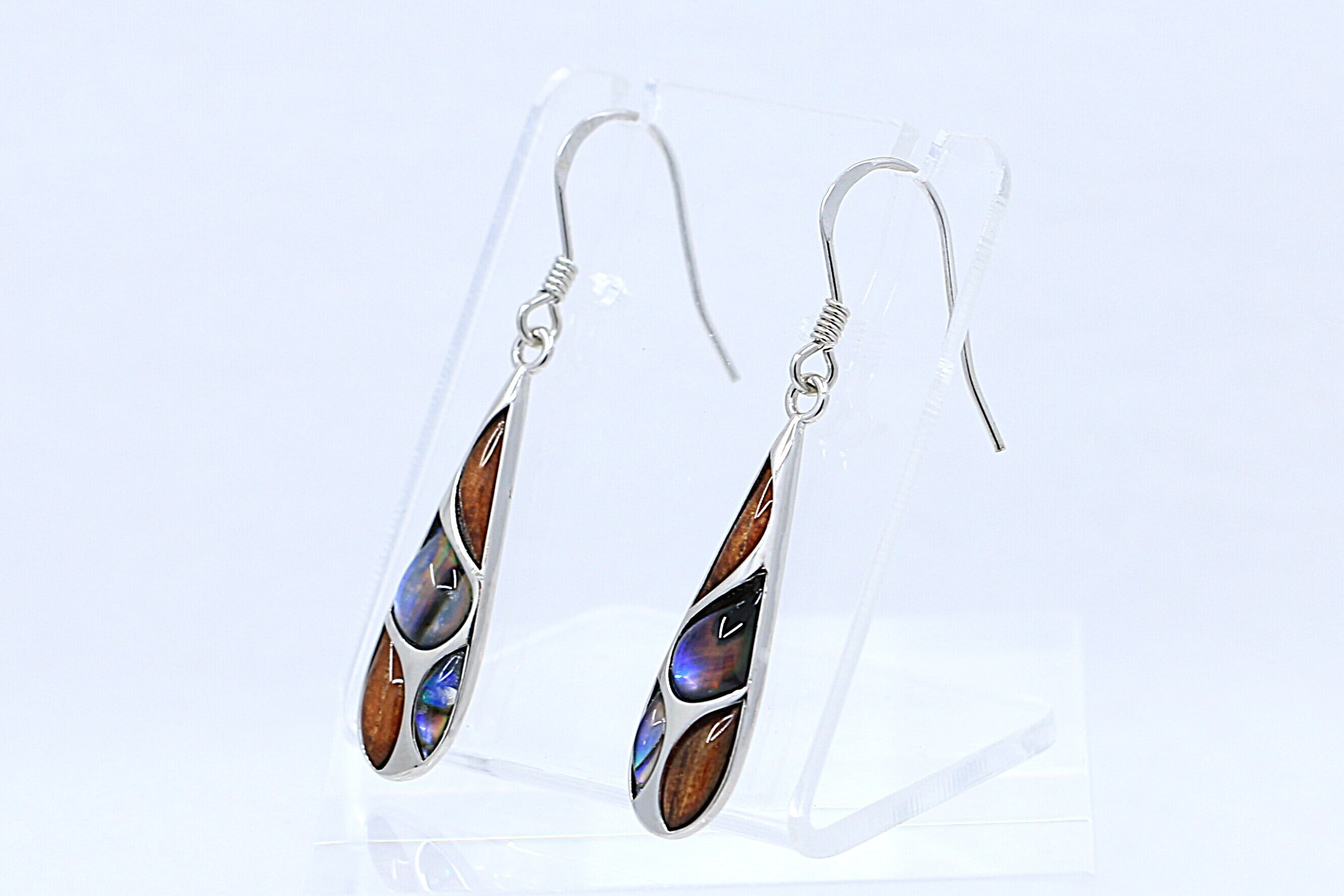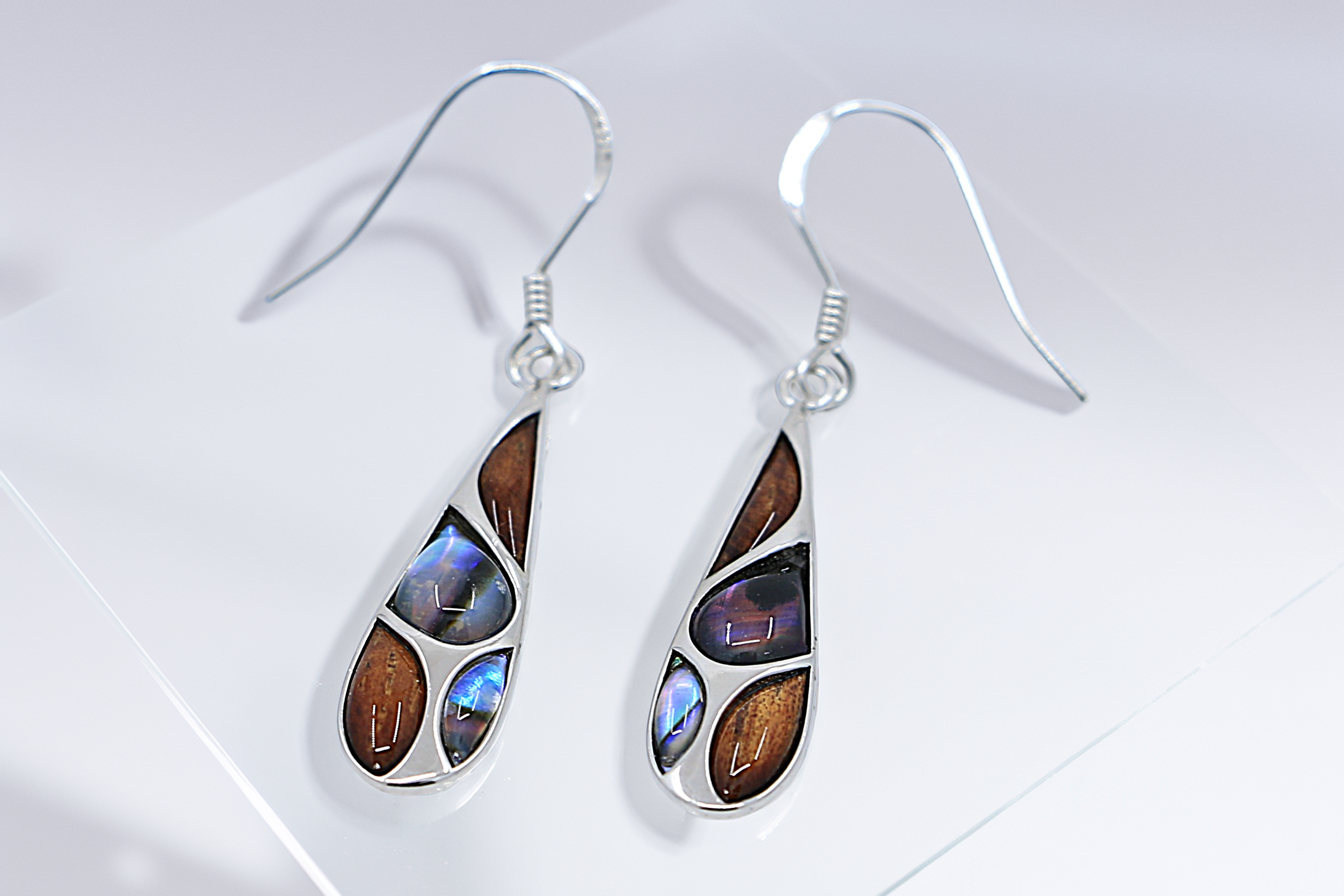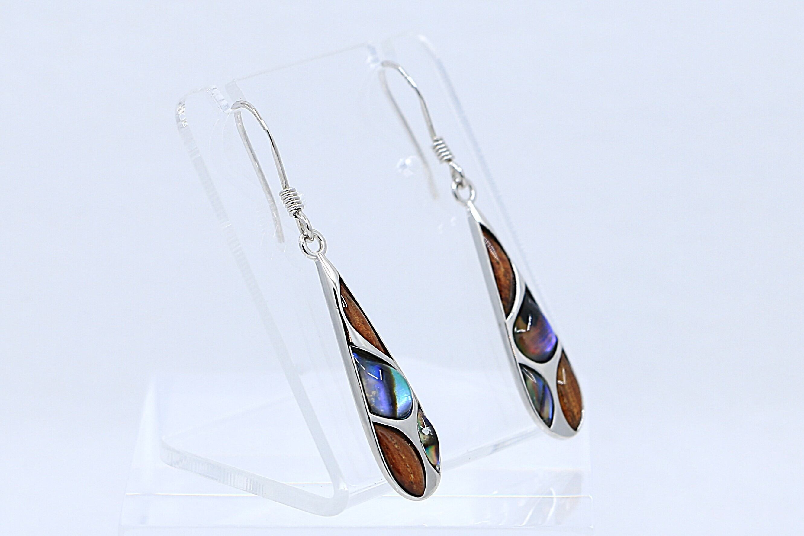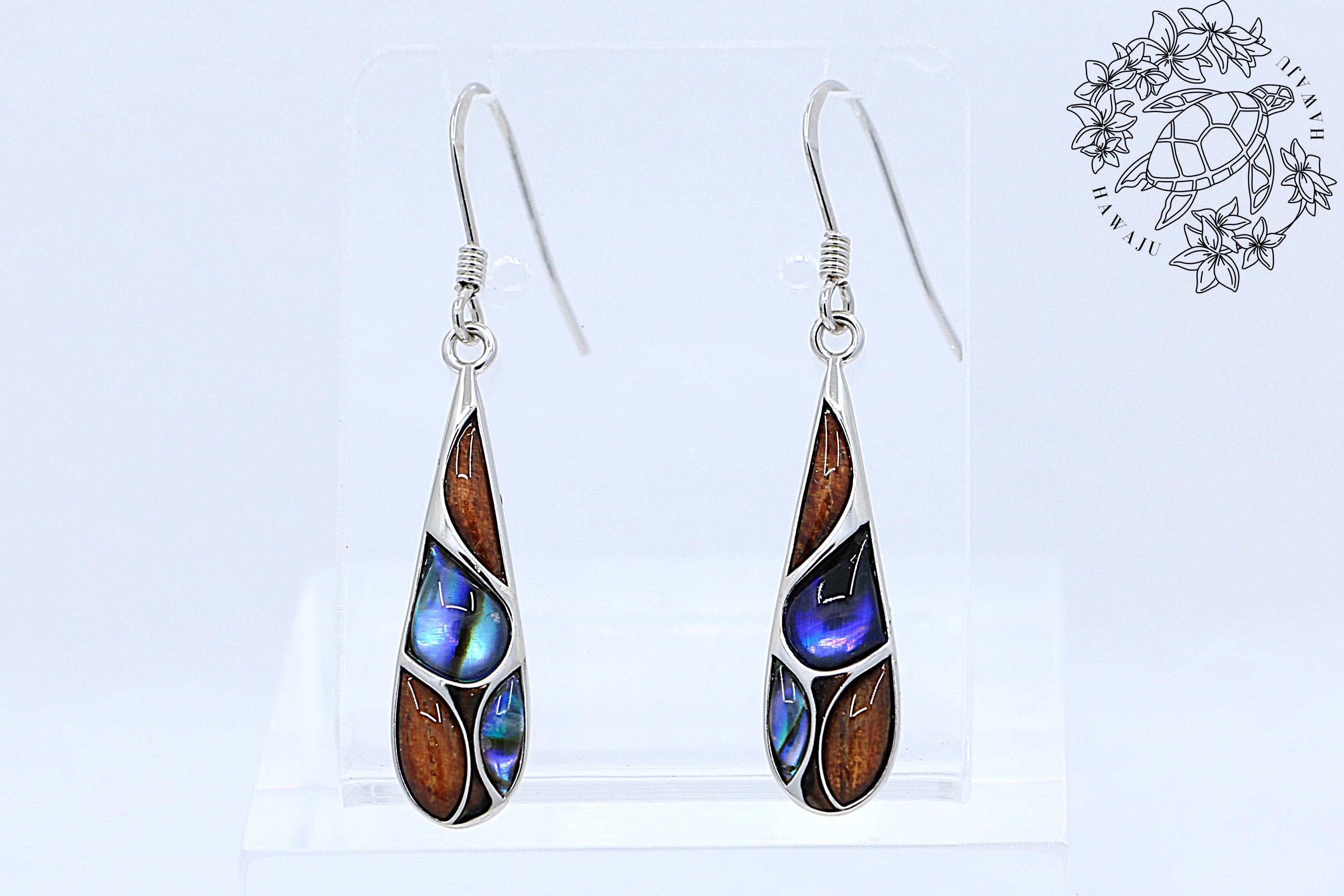こちらのフックタイプのピアスは、繊細で上品なラインドロップモチーフを取り入れ、天然素材であるコアウッドとシェルを贅沢に組み合わせた特別なハワイアンジュエリーです。