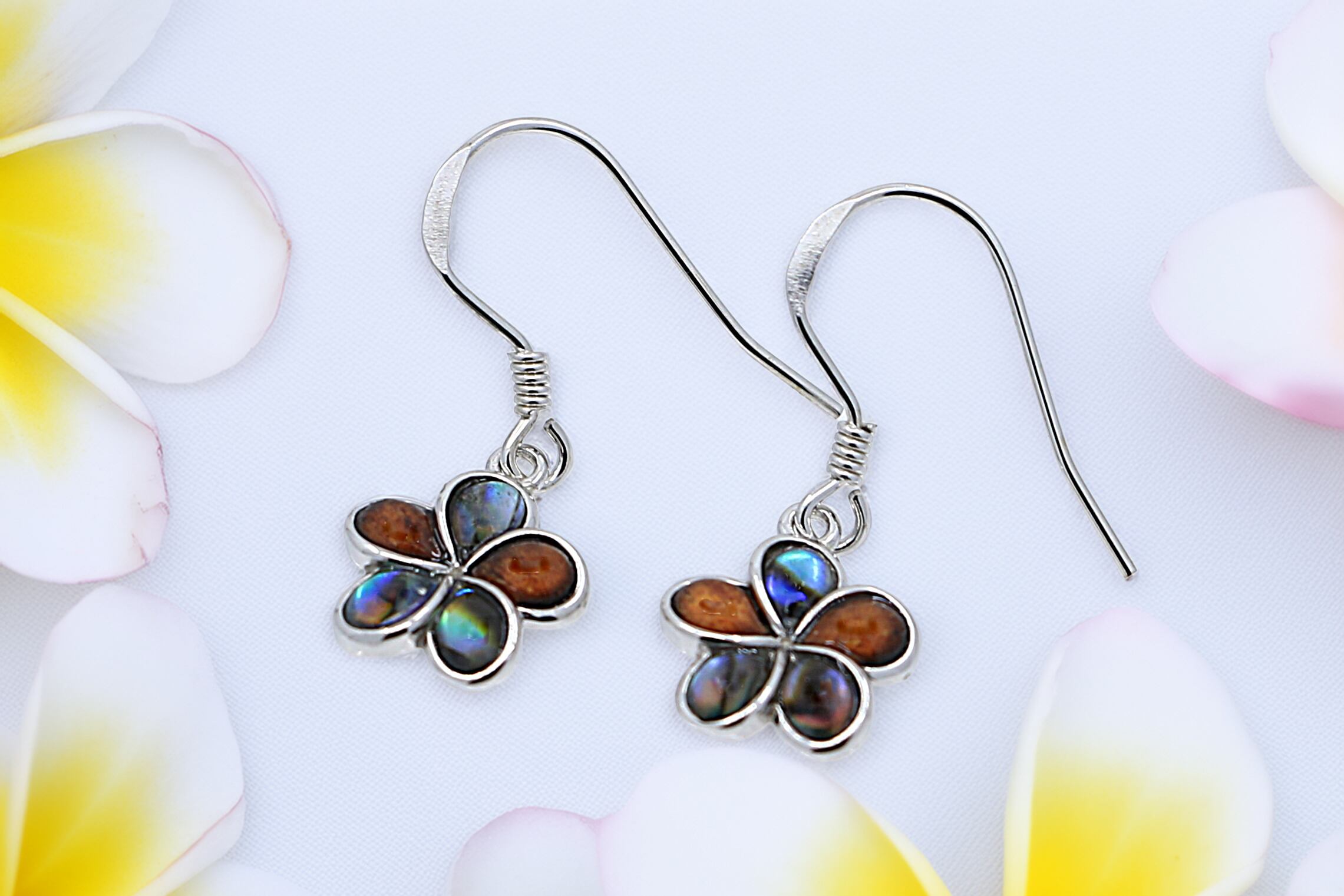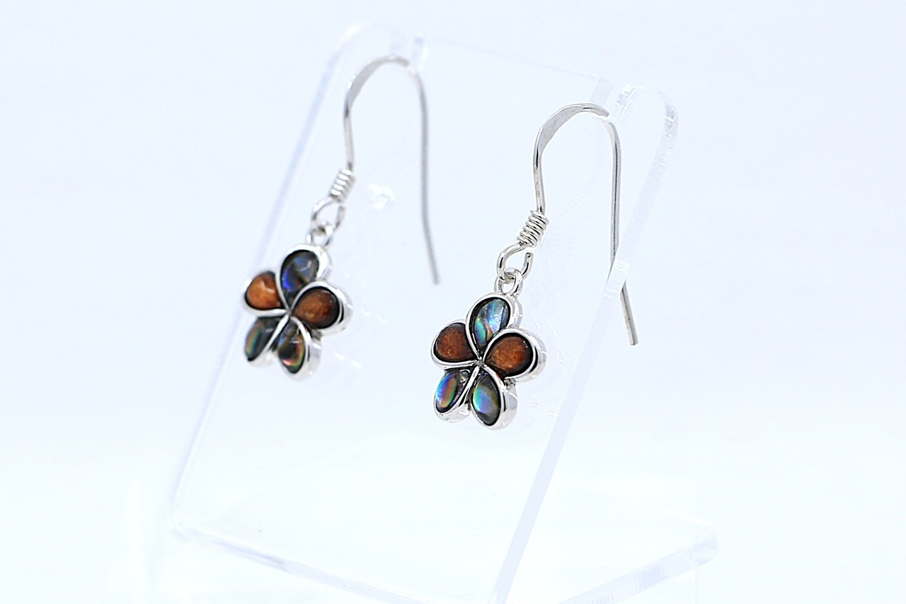 ハワイの自然の恵みを耳元で楽しめる コアウッド×シェルのプルメリアフックピアス。