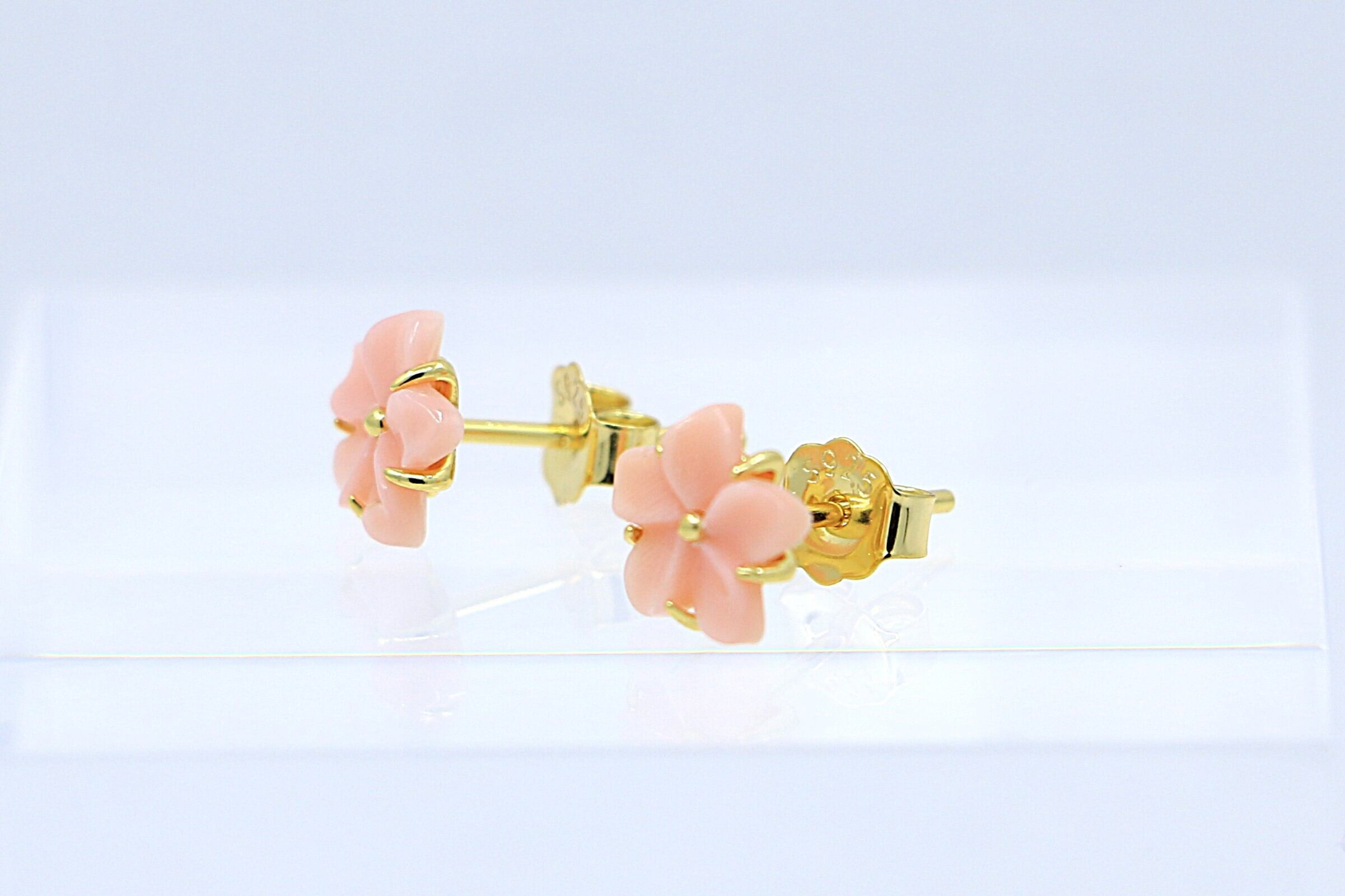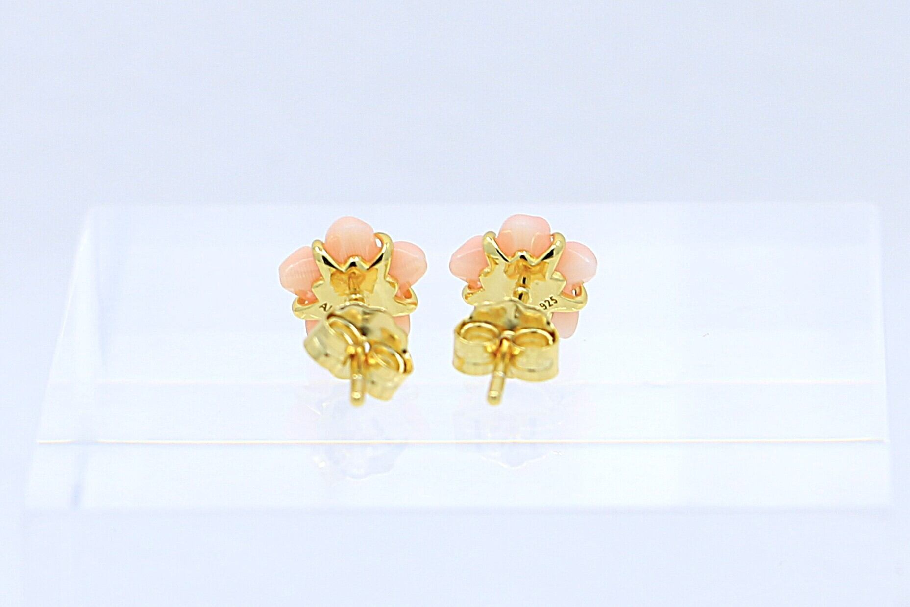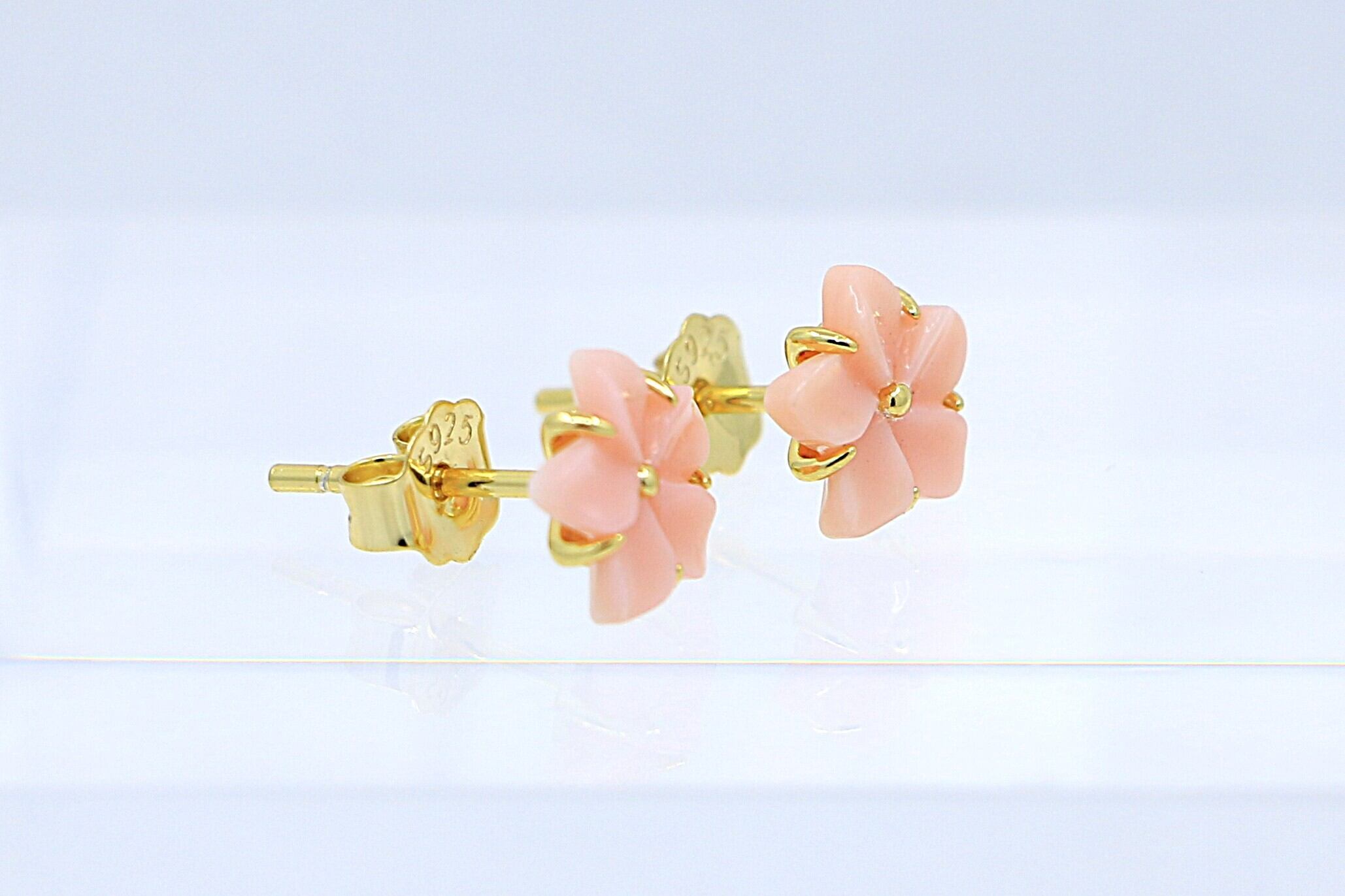 ピアスの地金には、上品なイエローゴールドカラーのスターリングシルバーを使用。ピンクシェルの温かみのある色合いを引き立て、耳元に華やかで洗練された輝きを添えます。日常使いから特別なシーンまで幅広く活躍するデザインです。
