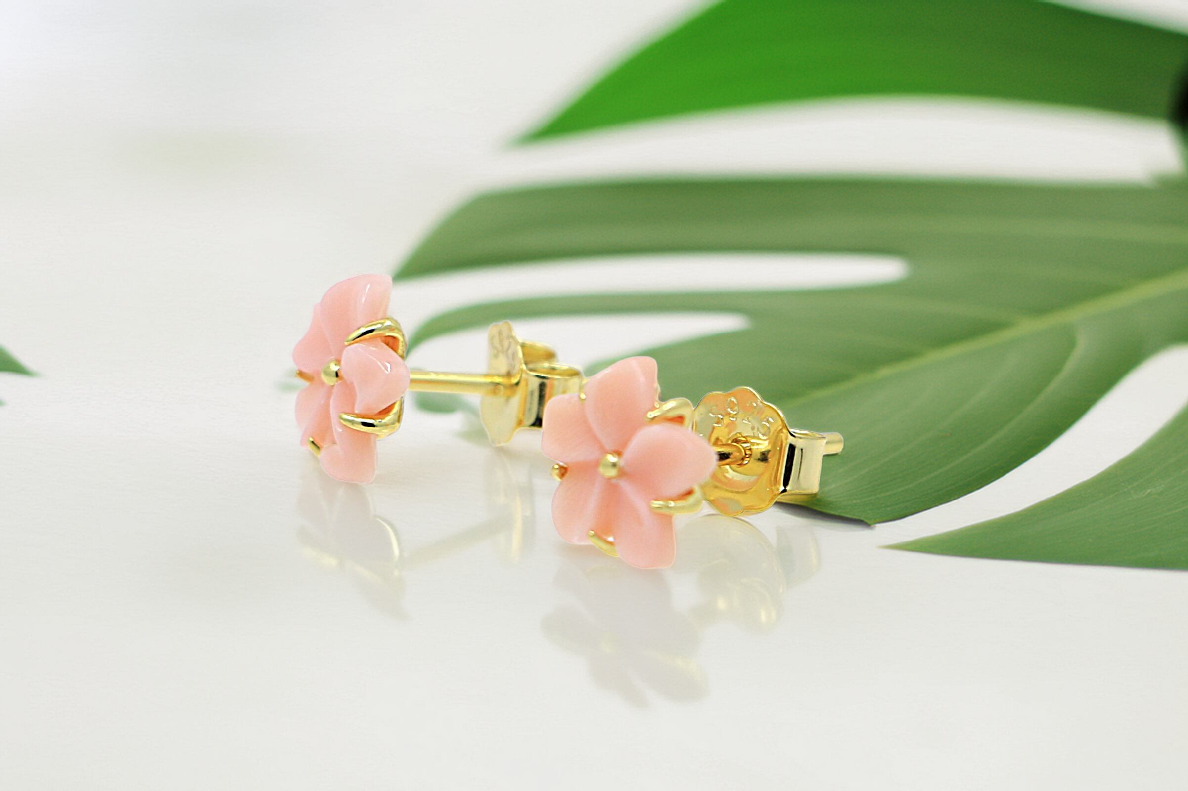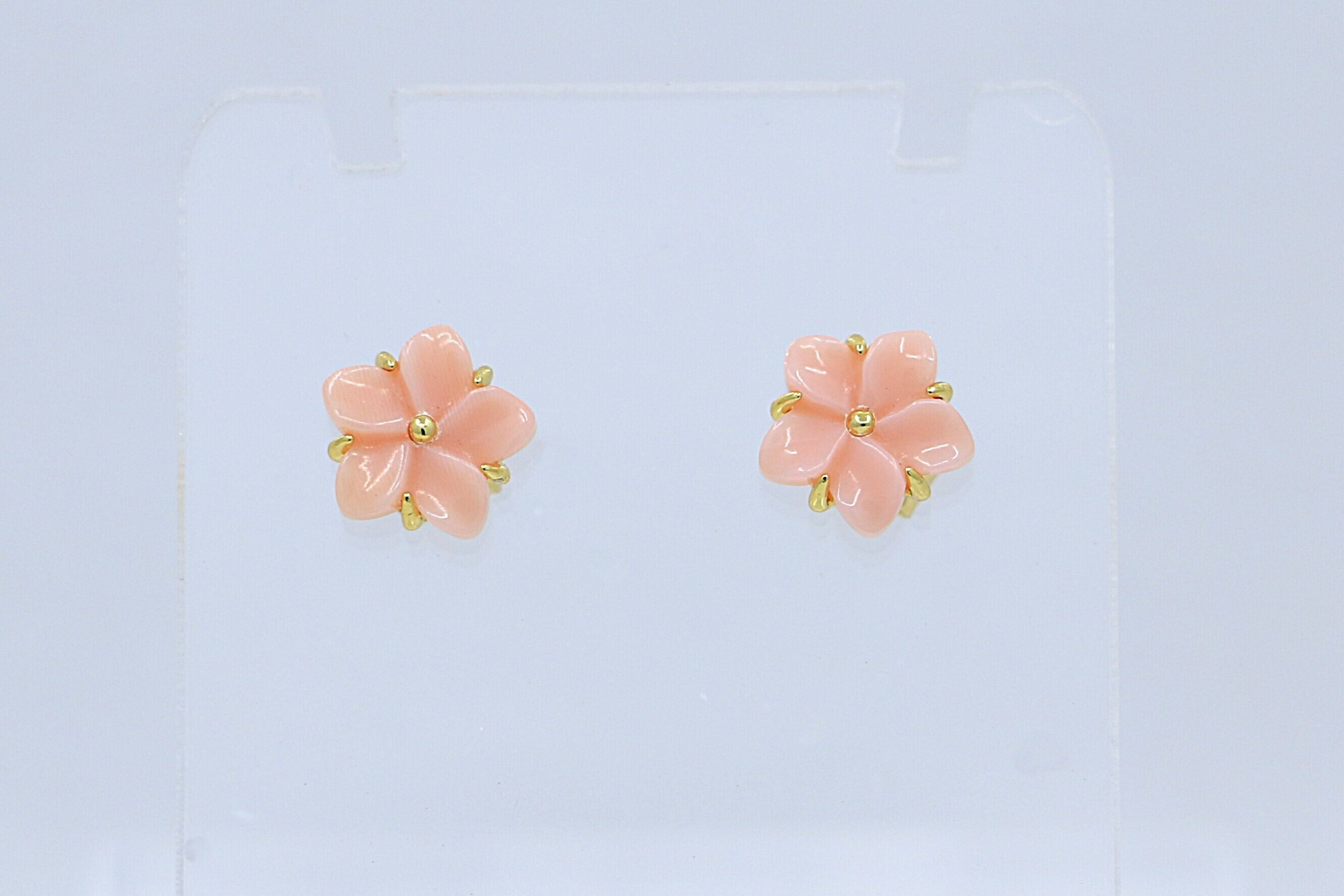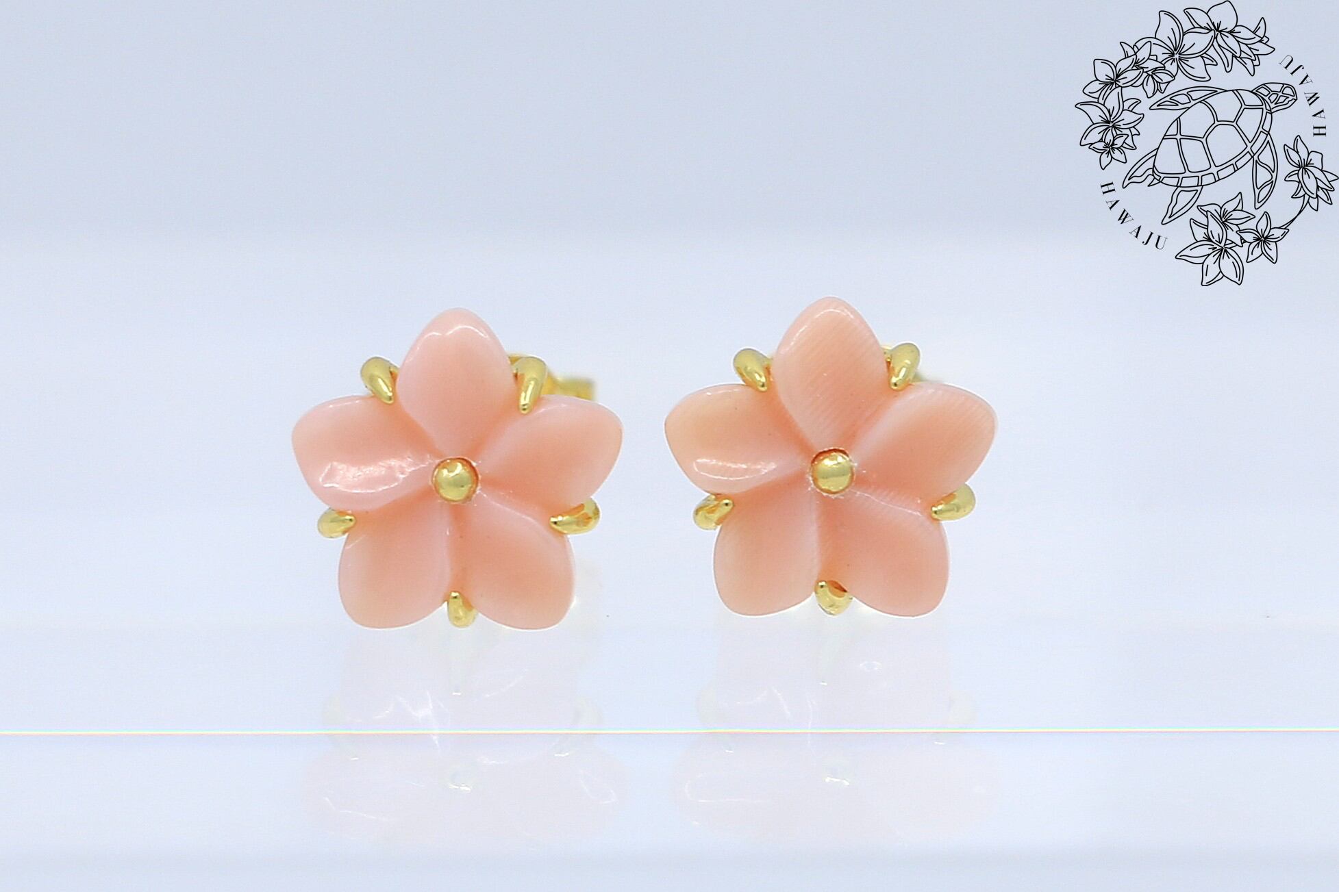 海からの贈り物であるピンクシェルは、淡いピンク色の美しい輝きが特徴です。光の角度によって柔らかく煌めき、耳元に華やかさをプラスします。プルメリアと組み合わせることで、大地と海の調和を感じられるデザインに仕上がっています。