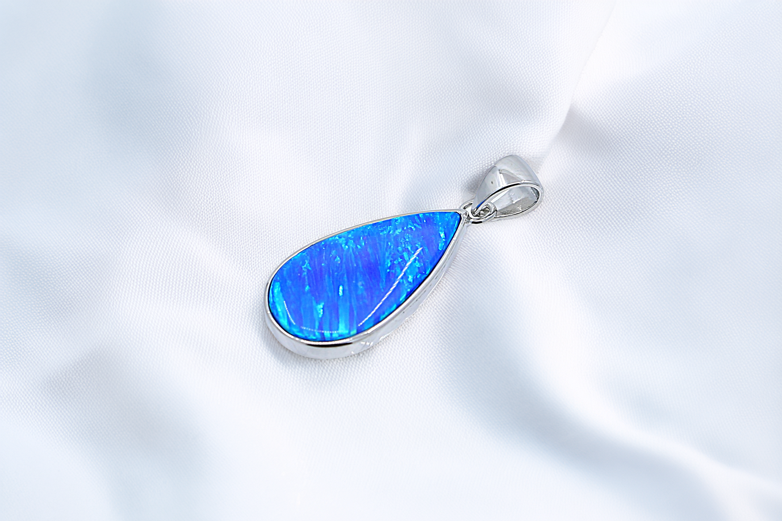 高品質なシルバー925を使用しており、耐久性が高く日常使いにも安心です。上品な輝きがティアドロップのフォルムとブルーオパールの美しさを引き立て、長く愛用できるデザインに仕上げています。