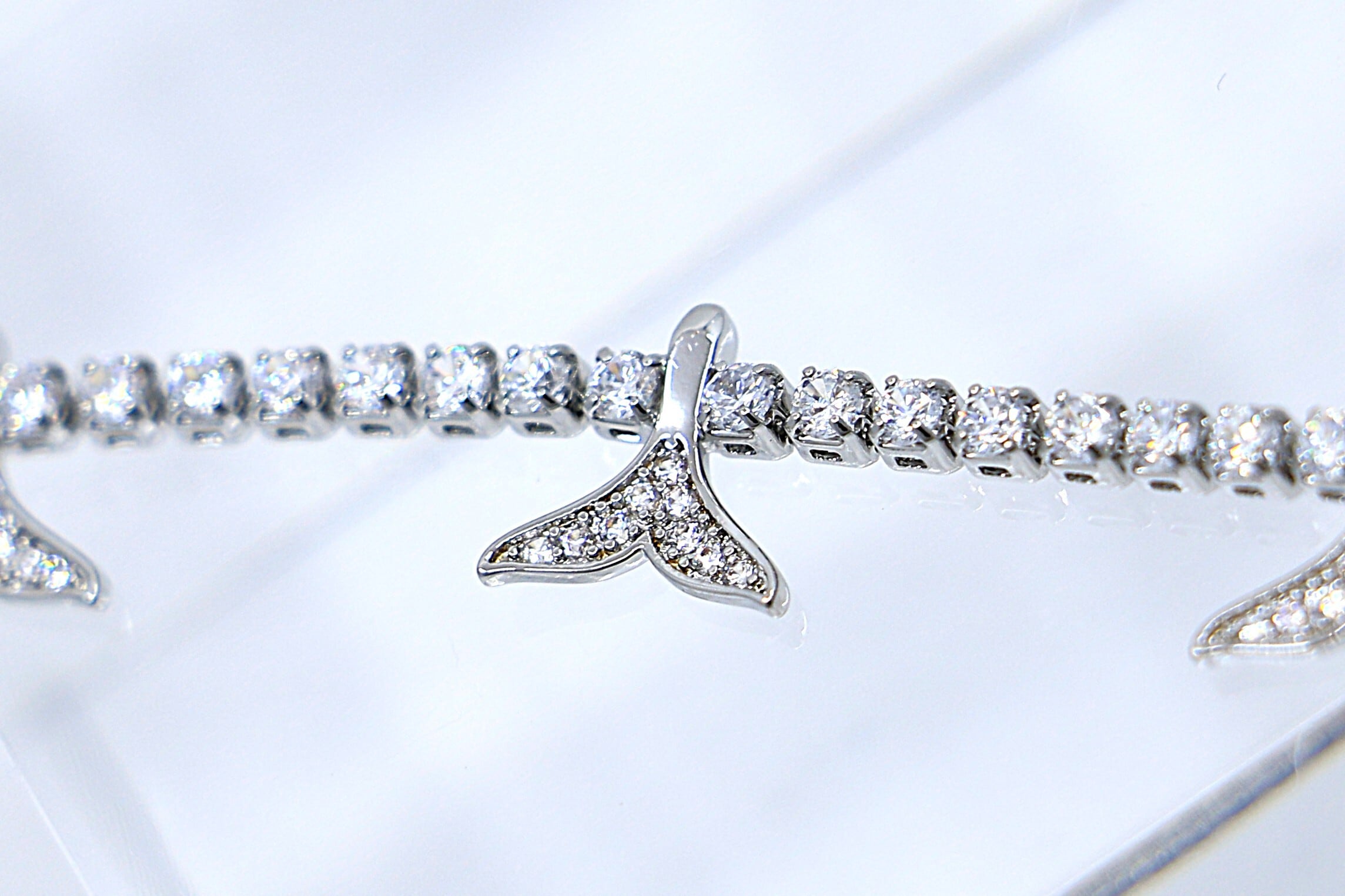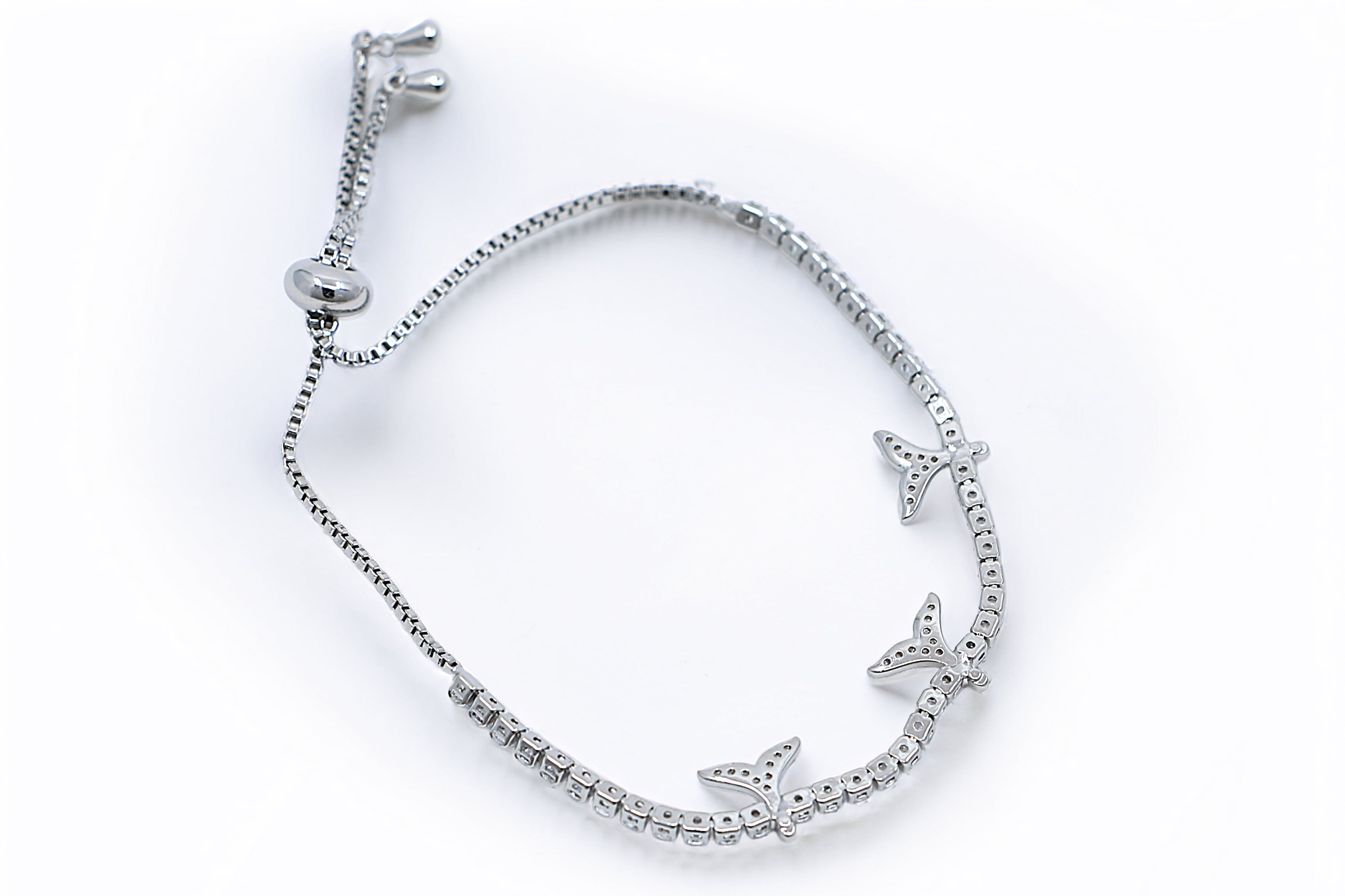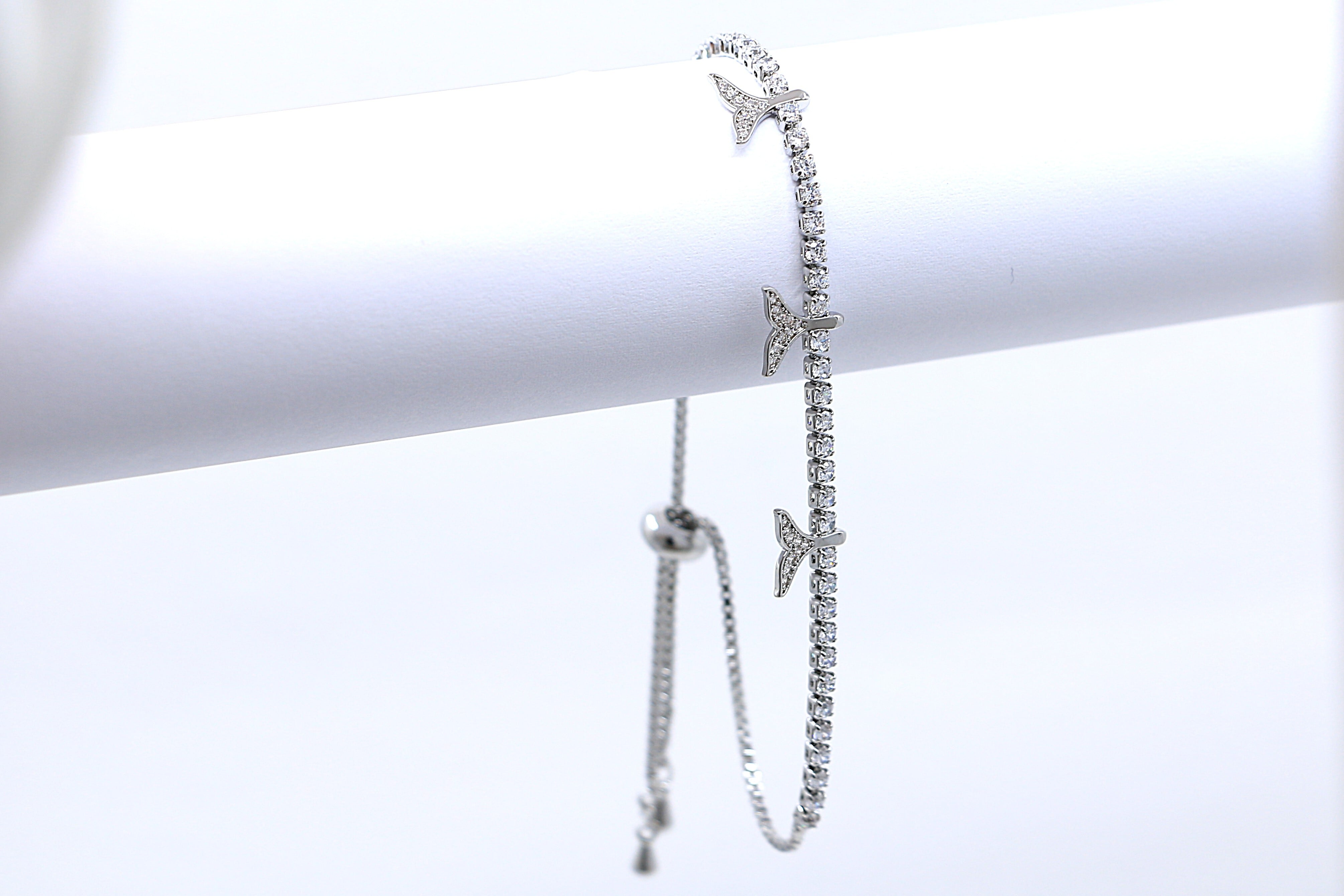 を象徴する人気モチーフとして親しまれています。ブレスレットには小さなホエールテールチャームが3つ配され、手元に自然の力をプラス。チャーム部分にはキュービックジルコニアをあしらい、光を受けてきらめく上品な輝きを楽しめます。