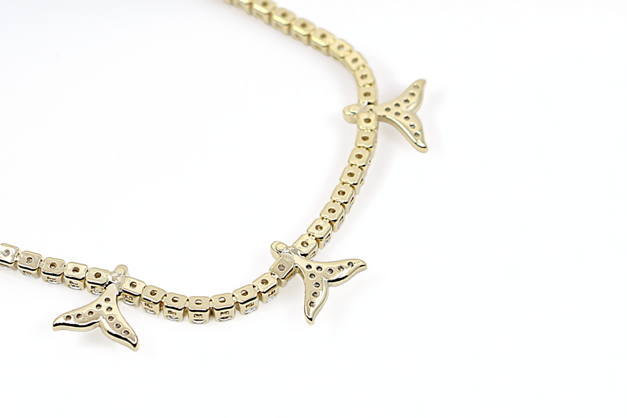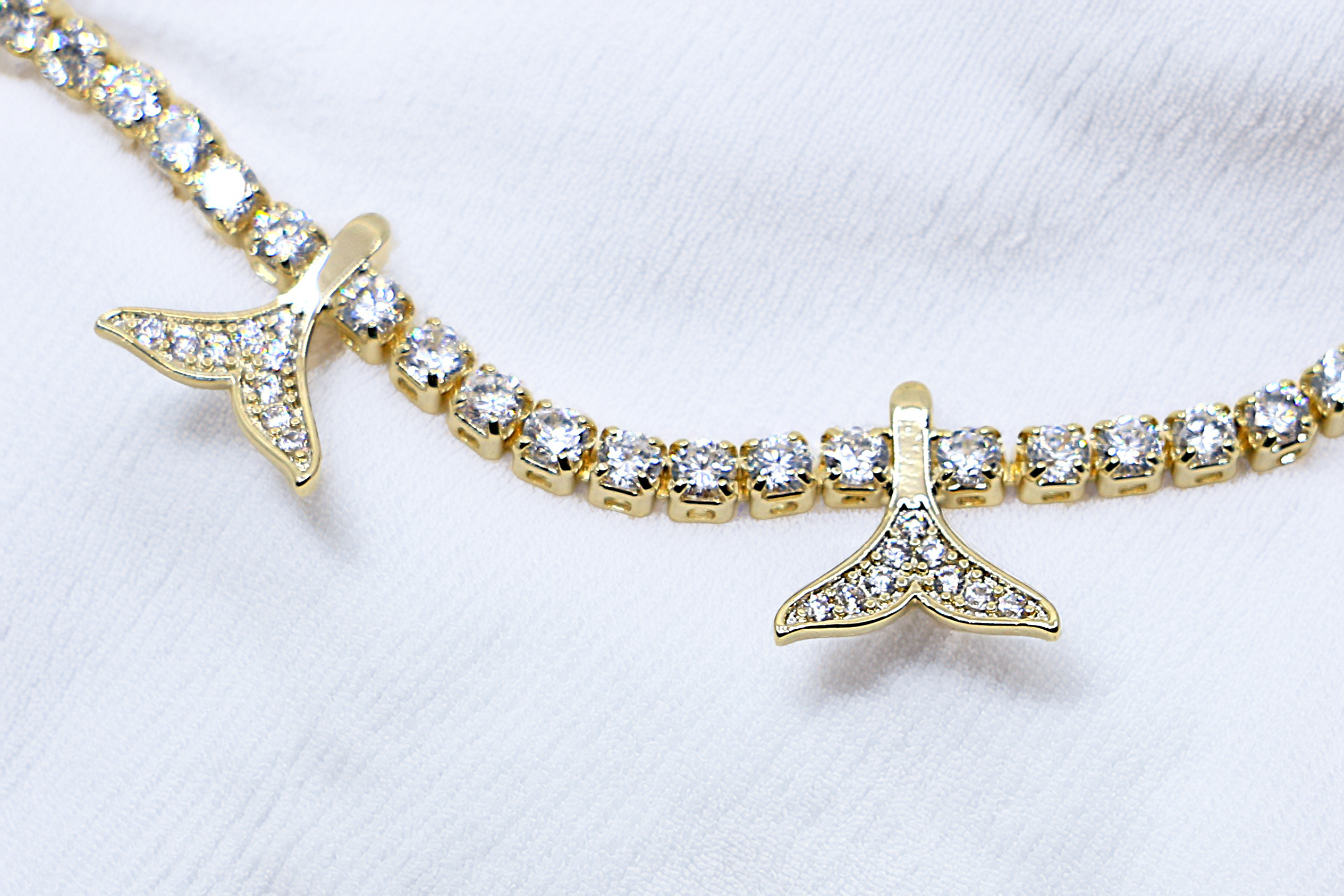 を象徴する人気モチーフとして親しまれています。ブレスレットには小さなホエールテールチャームが3つ配され、手元に自然の力をプラス。チャーム部分にはキュービックジルコニアをあしらい、光を受けてきらめく上品な輝きを楽しめます。