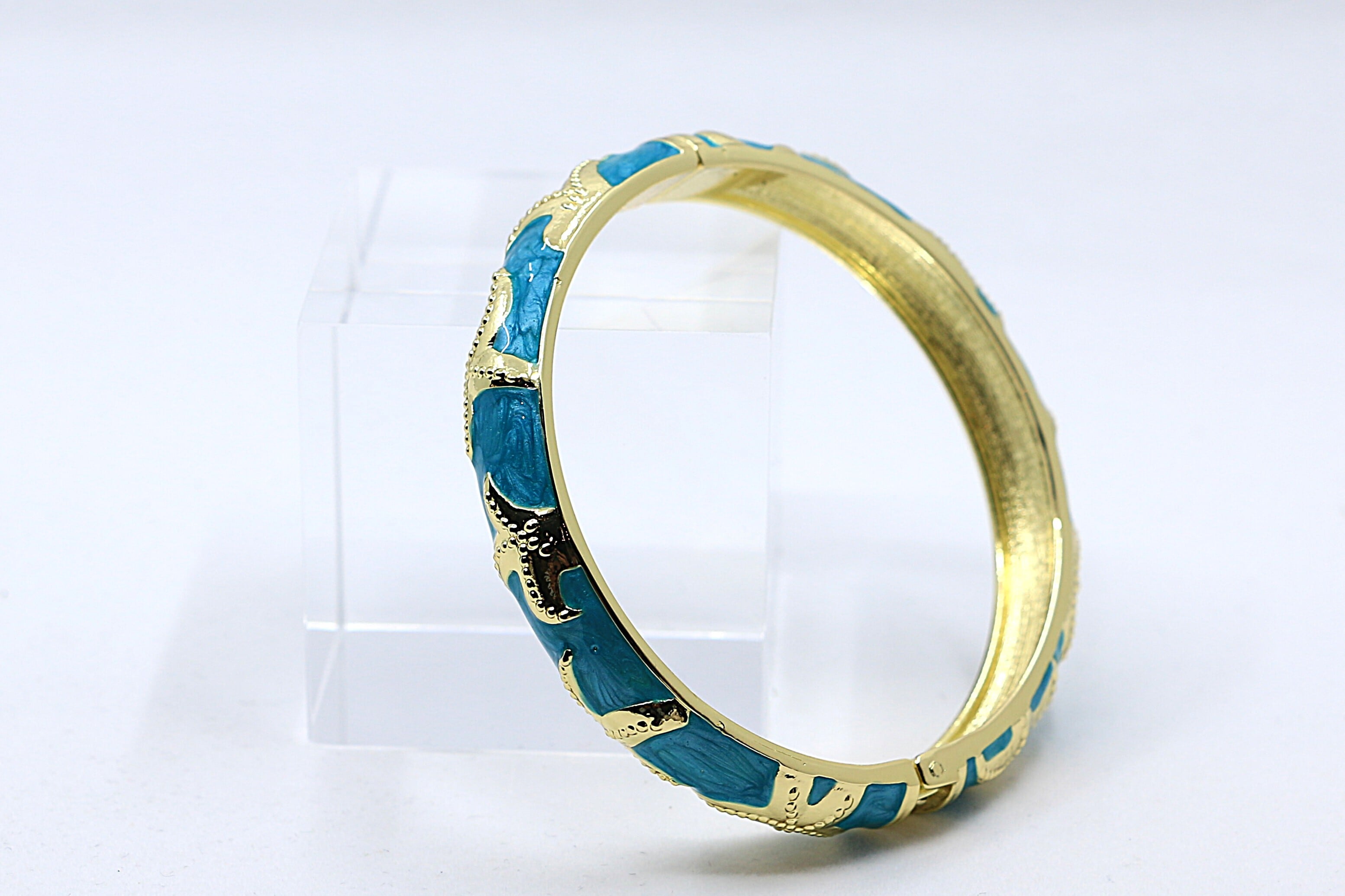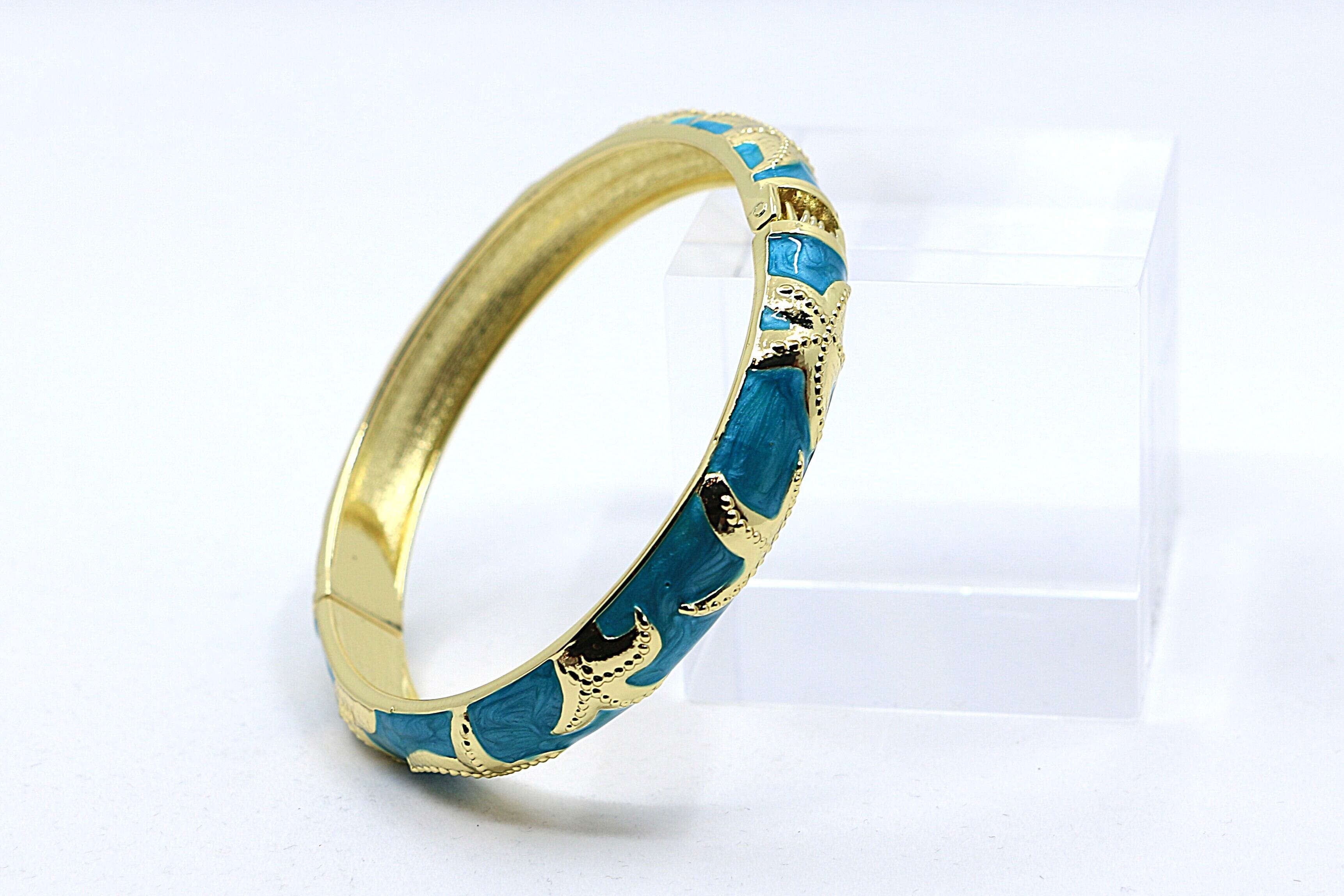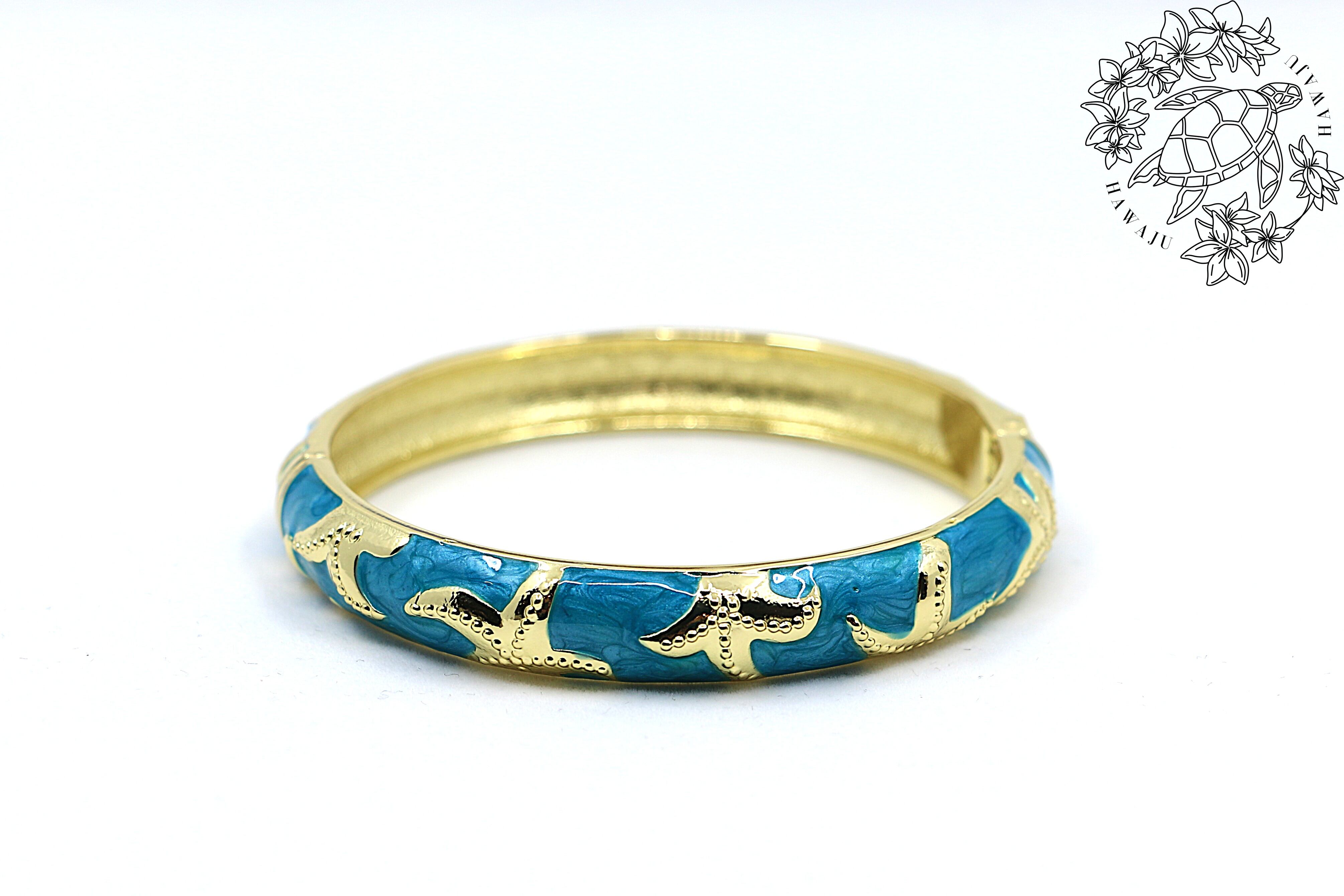 ハワイの海を象徴する ヒトデ(スターフィッシュ)モチーフ をデザインに取り入れた、華やかなバングルです。