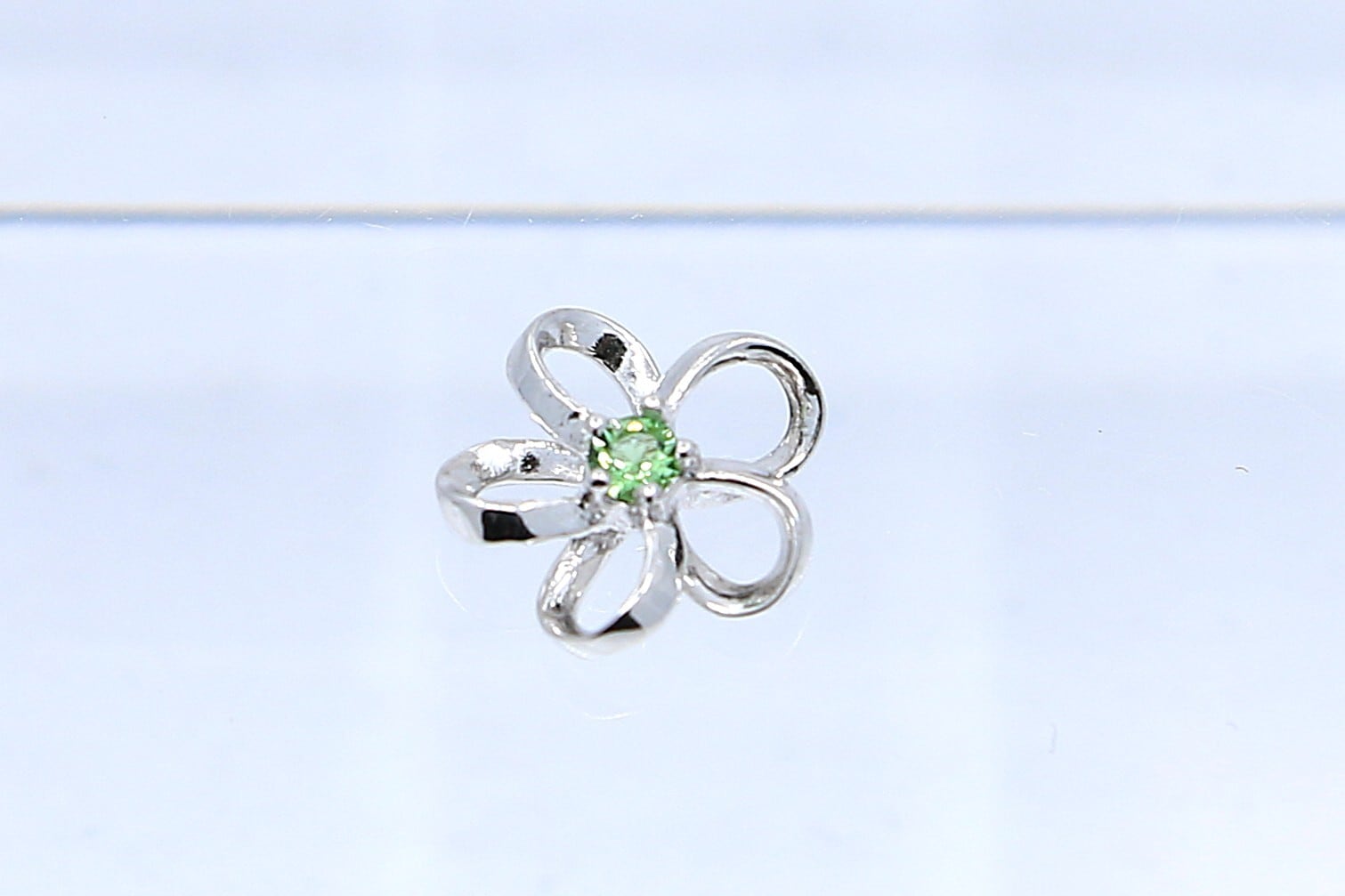 美しいプルメリアデザインが輝くペンダントトップです。中央にあしらわれたライトグリーンスワロフスキーが、光を受けて柔らかく爽やかな輝きを放ちます。スターリングシルバーを使用したこのアイテムは、しっかりとした存在感と高級感を兼ね備え、カジュアルからフォーマルまで幅広く活躍する特別なアクセサリーです。