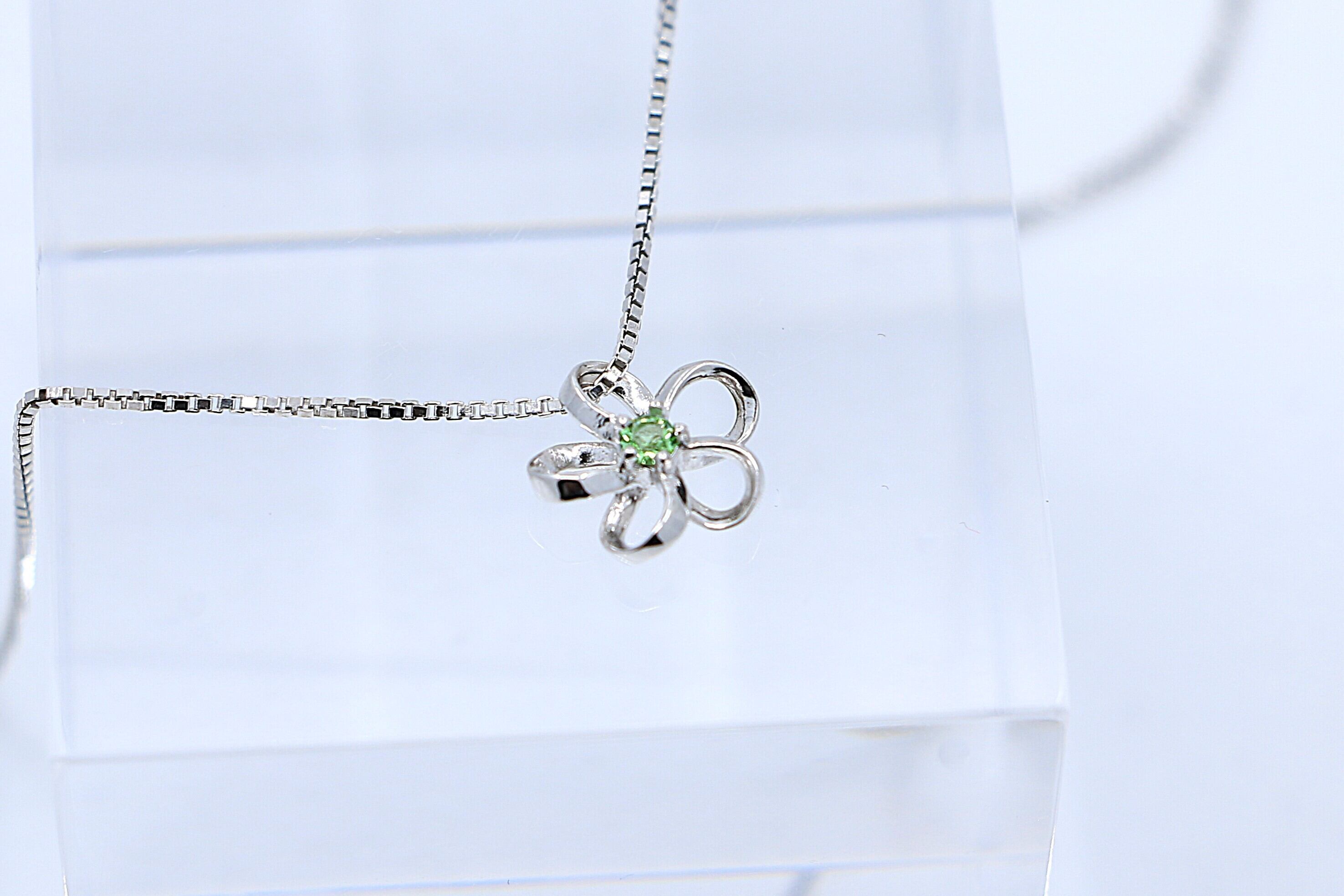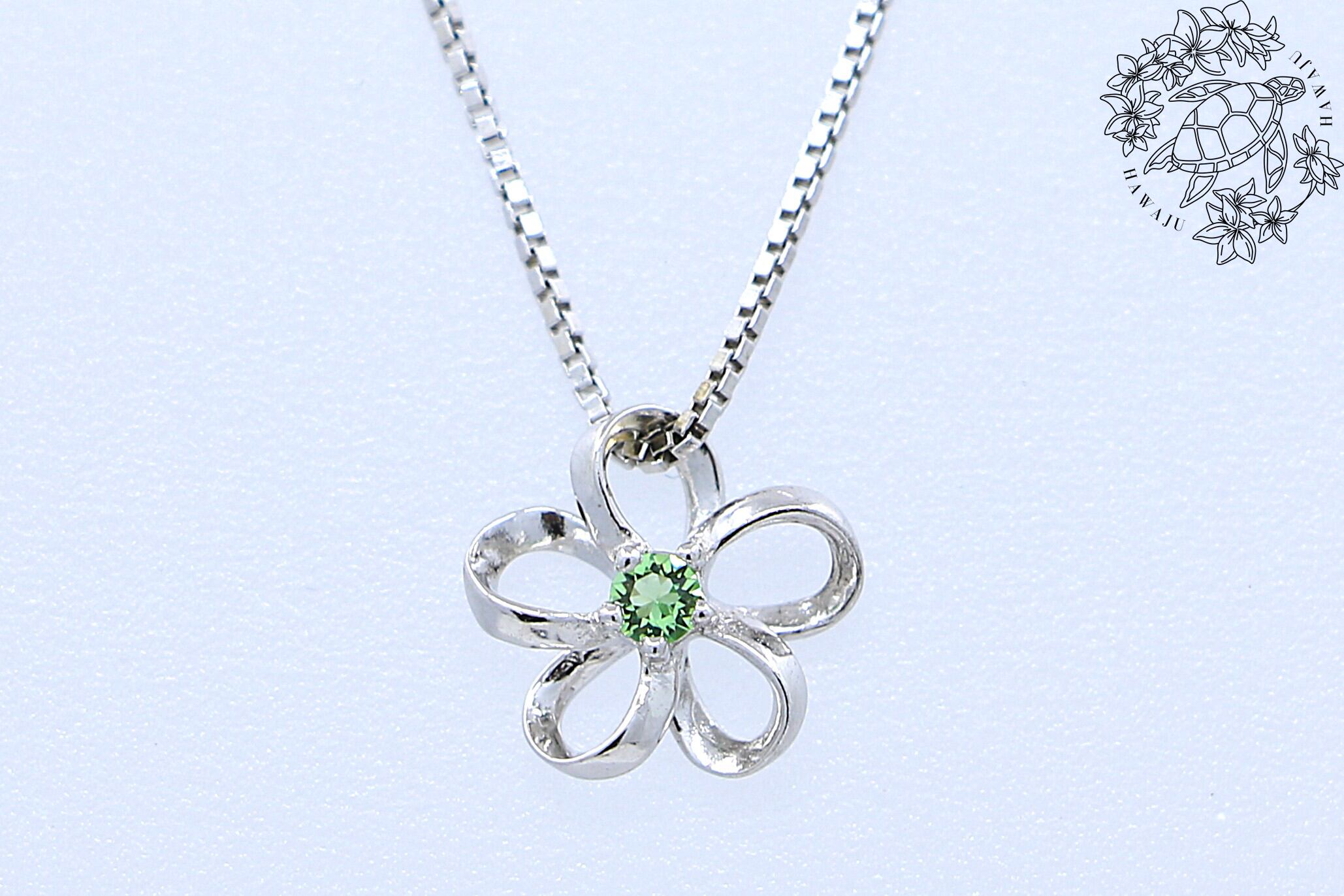 ハワイの自然と文化を感じるライトグリーンスワロフスキーのプルメリアペンダントで、首元に爽やかで特別な輝きを添えてみませんか。