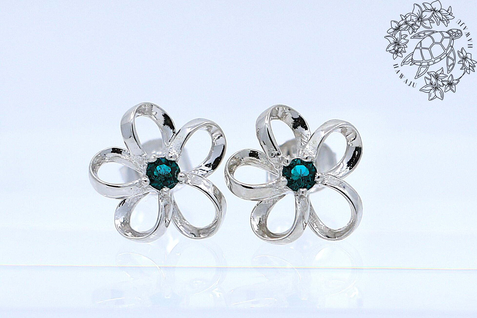 プルメリアデザインの美しいピアスは、中央に輝くグリーンスワロフスキーが特徴です。シルバーの魅力を引き立てるこのハワイアンジュエリーは、洗練されたデザインが魅力で、日常のコーディネートに華やかさを添えます。リゾートスタイルにもぴったりなこのピアスは、シンプルながらも存在感があります。