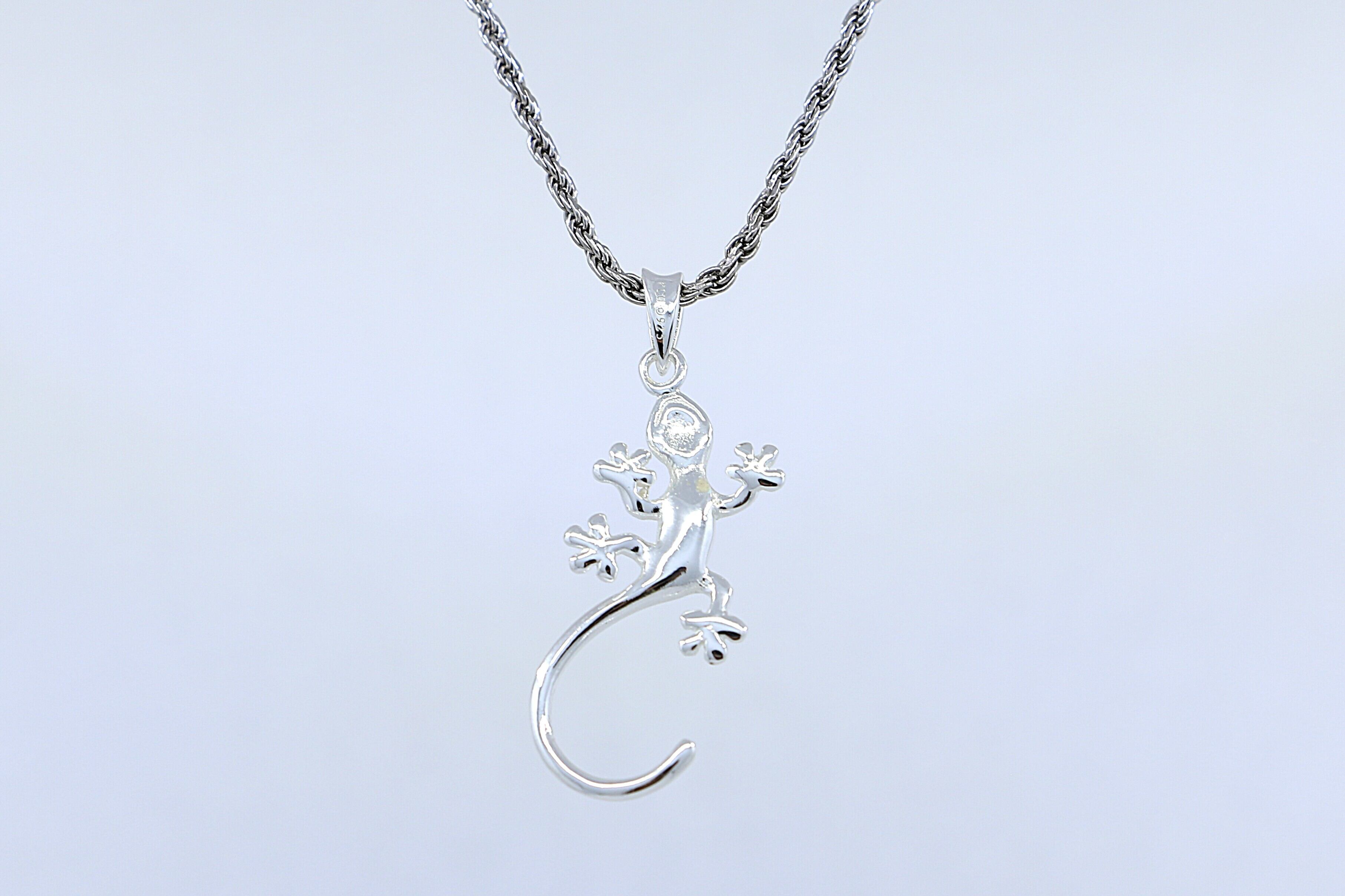 ヤモリはハワイで「守護」「幸運」「繁栄」を象徴する縁起の良い生き物で、家を守る存在としても知られています。このペンダントトップではヤモリのシルエットを繊細に立体的に表現し、長い尾のカーブが優雅で動きのある印象を与えます。見る角度によって異なる表情を楽しめ、男女問わず着けやすいデザインになっています。
