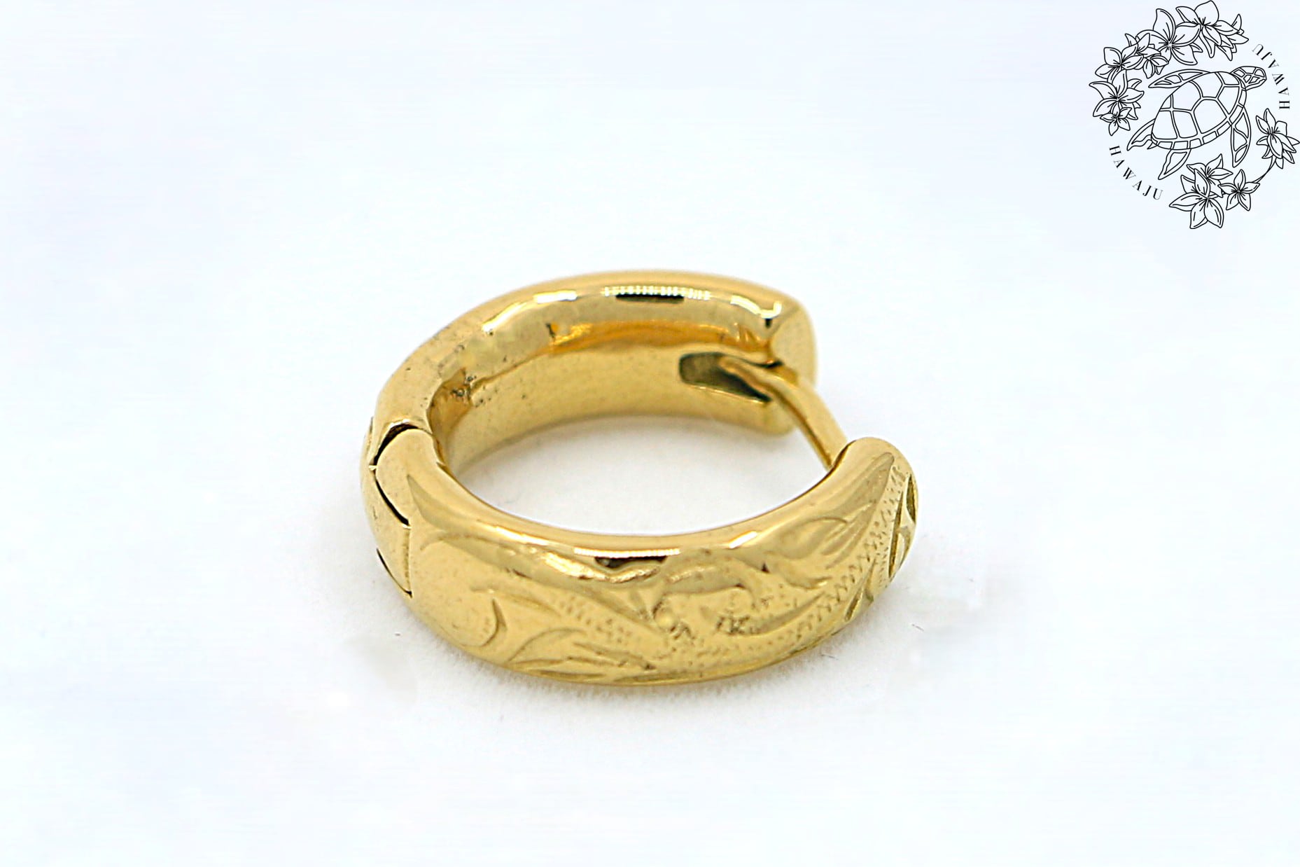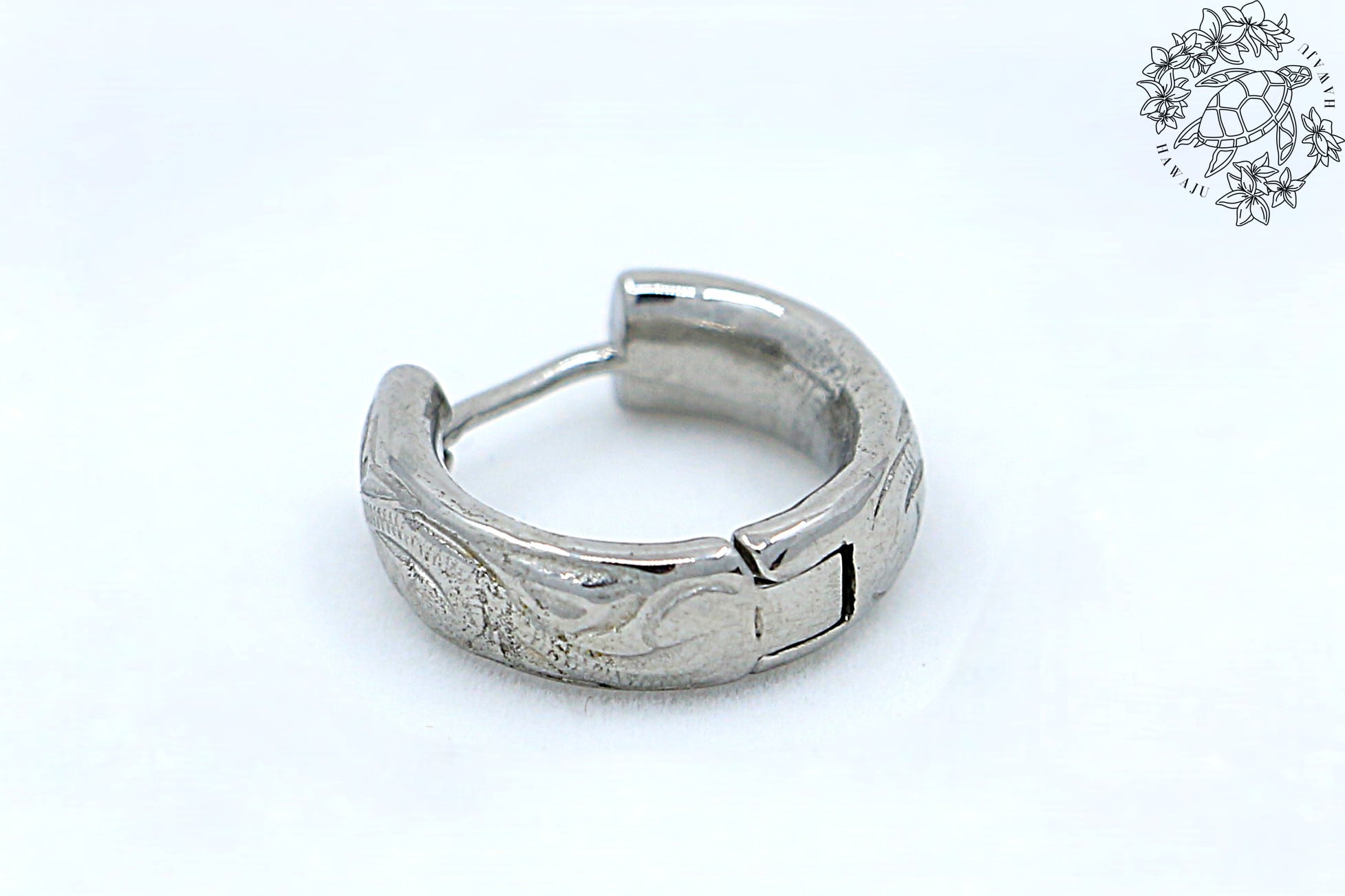 このピアスは、ハワイアンジュエリーの伝統的なスクロールデザインを取り入れた、上品で存在感のある片耳用ピアスです。