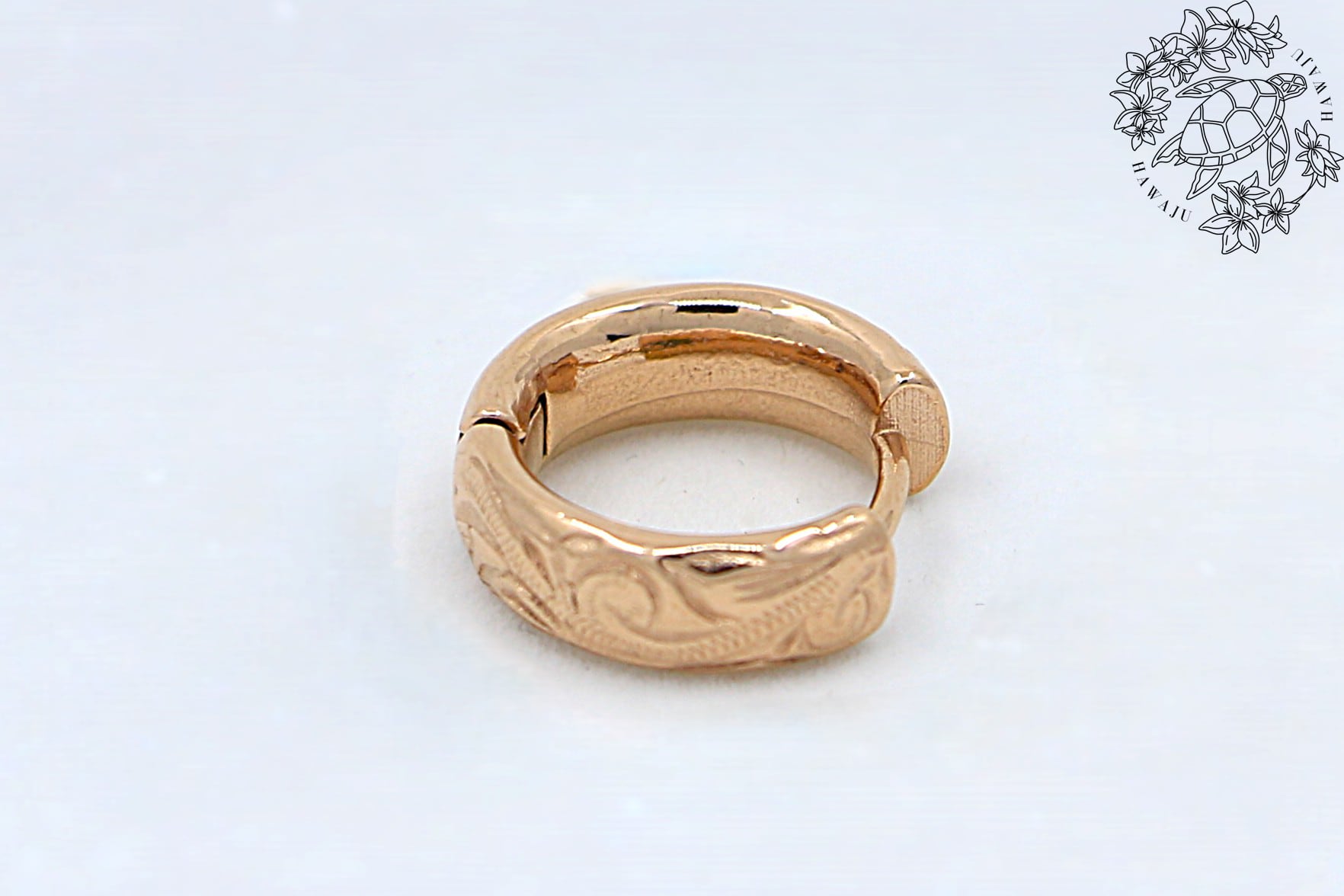 波のように流れる曲線が繊細に刻まれ、シンプルながらもハワイアンジュエリーならではの深みと温もりを感じさせます。