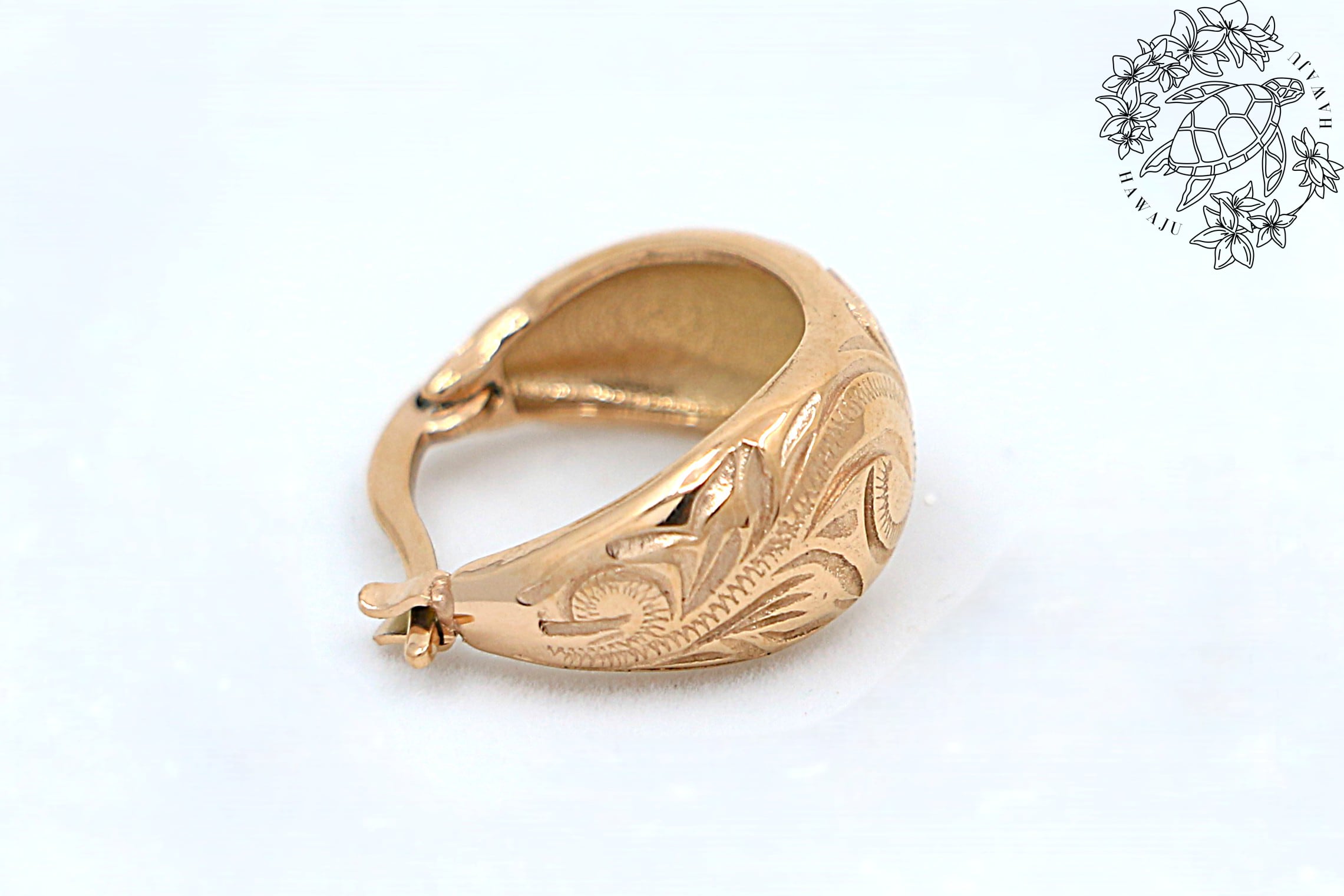 繊細な彫り模様が、ハワイアンジュエリーならではの