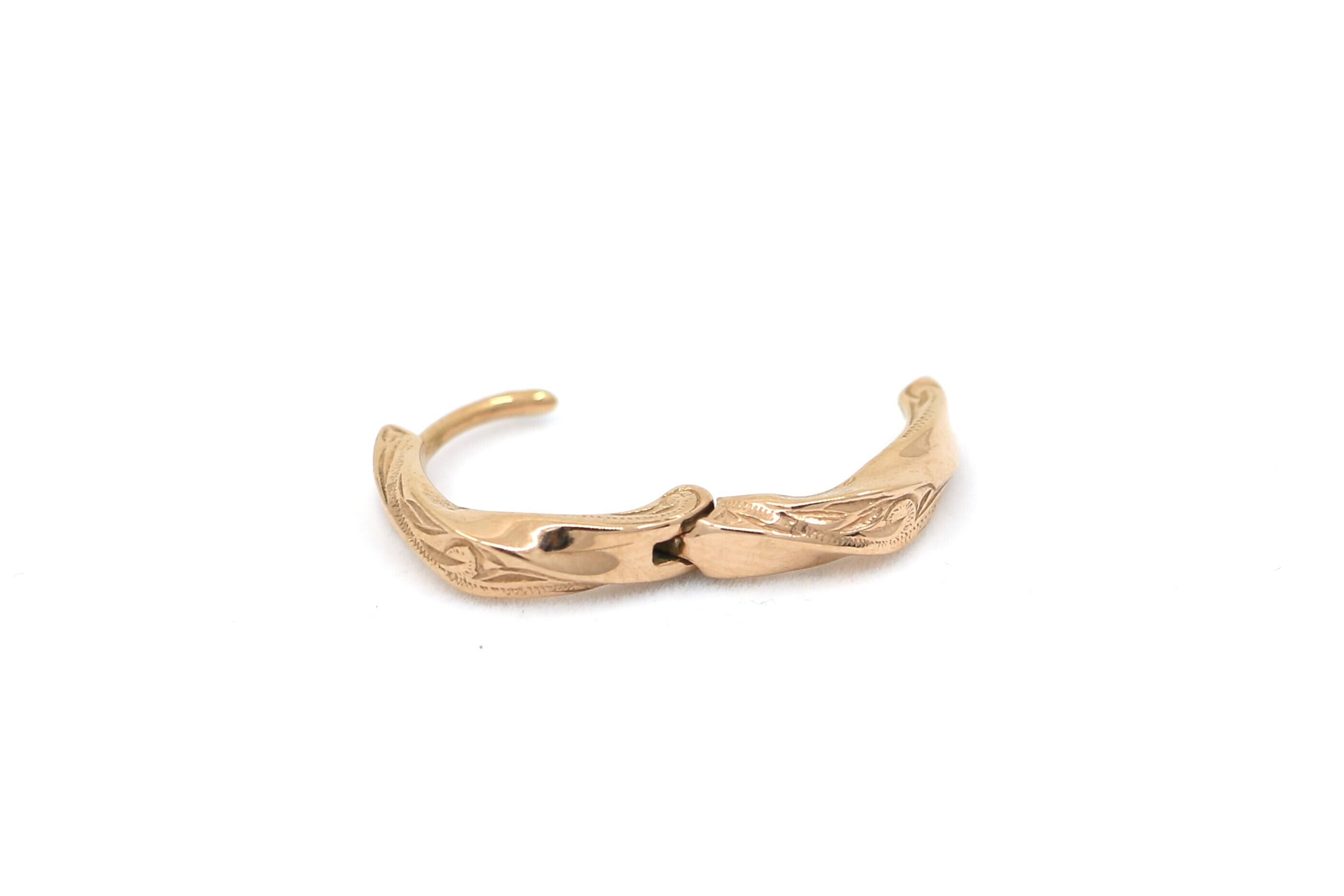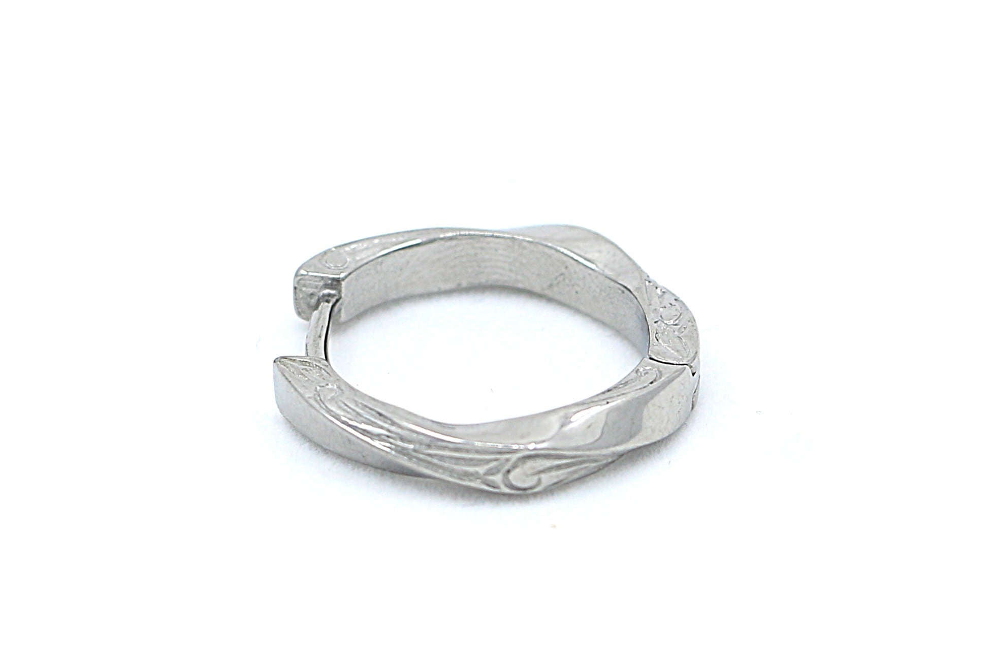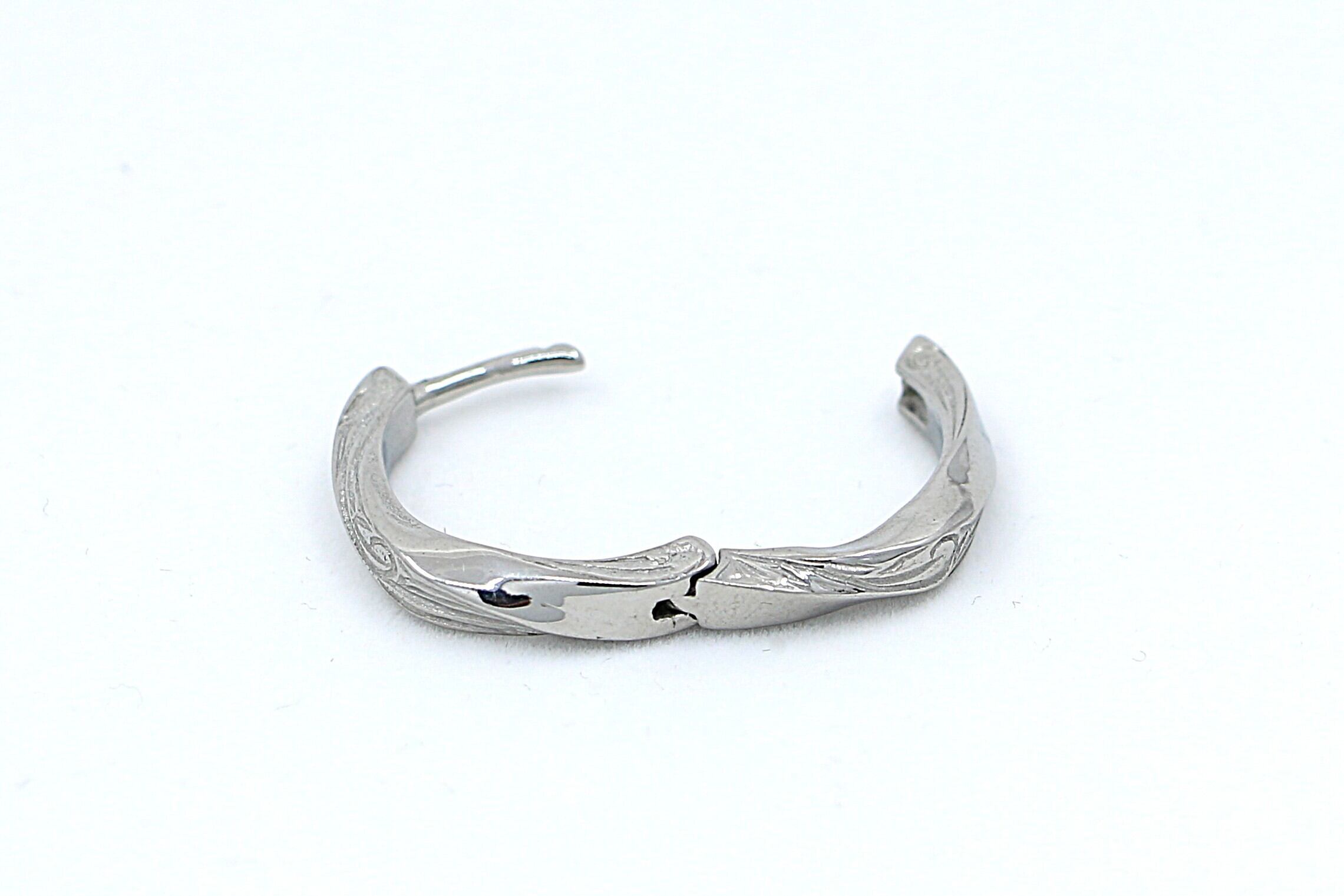 ねじれのラインに沿って彫り込まれたスクロール柄は、