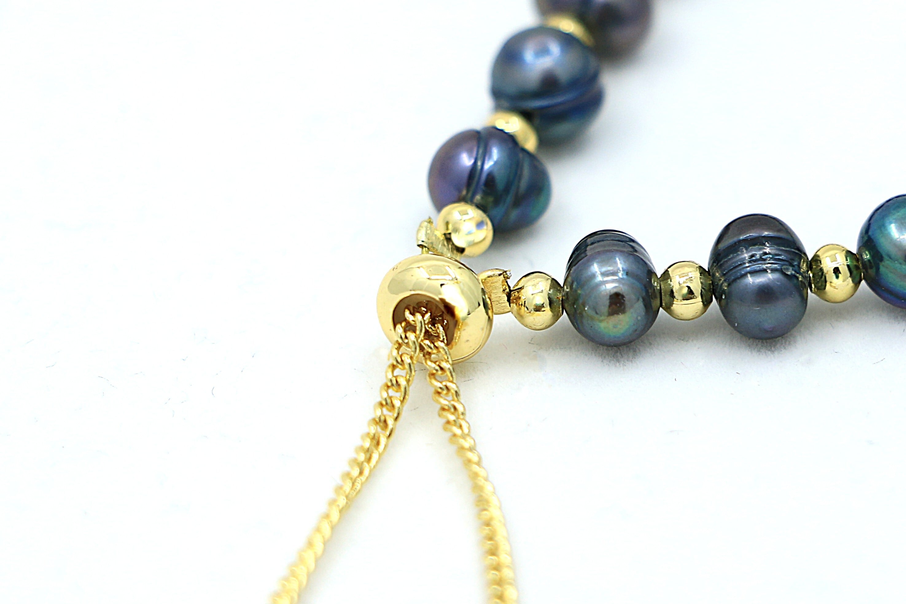・イエローゴールドビーズ:ブラックパールの間に配されたゴールドビーズが、コントラストを生み出し、ハワイアンジュエリーらしい温かみと高級感をプラス。