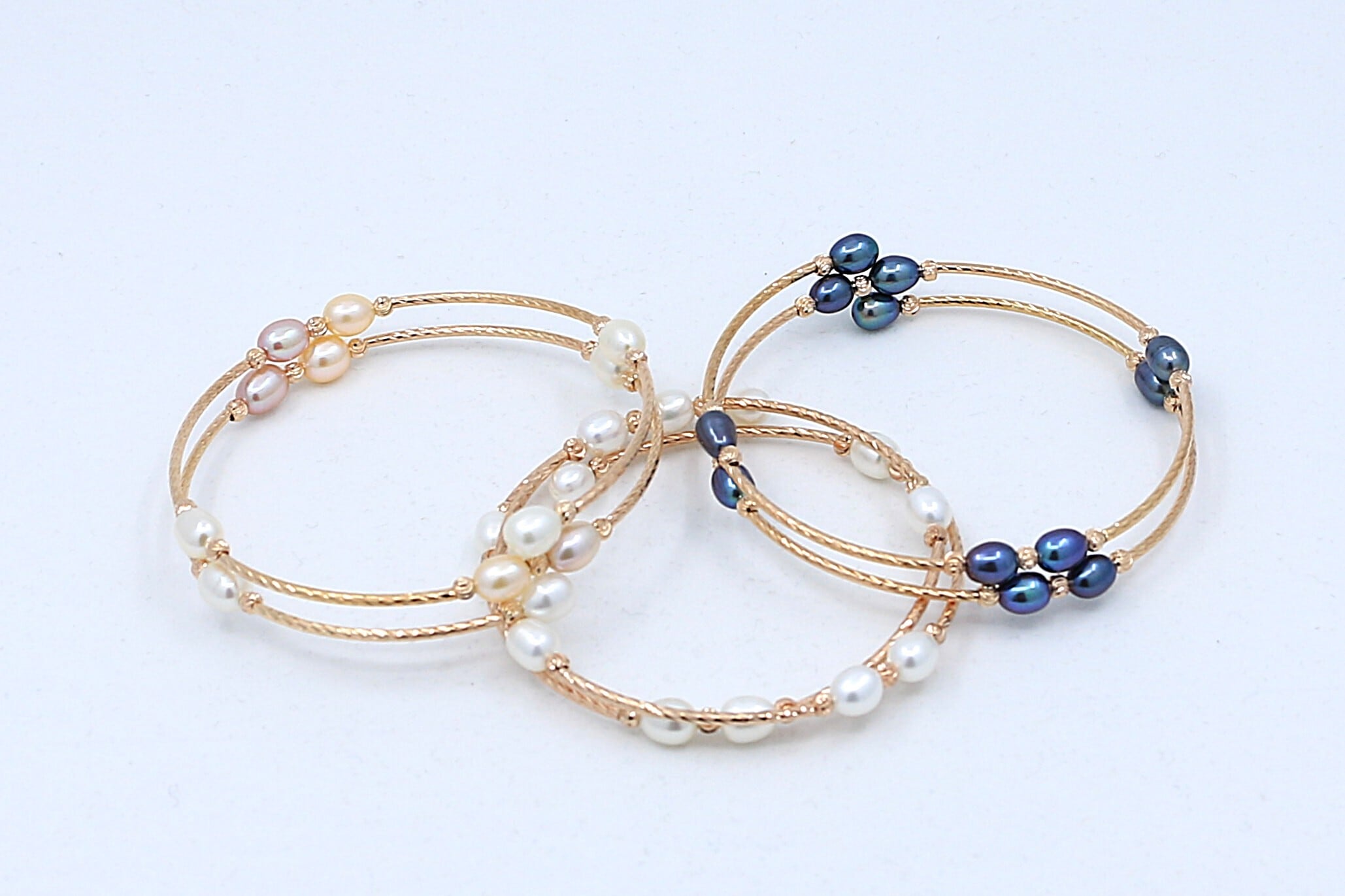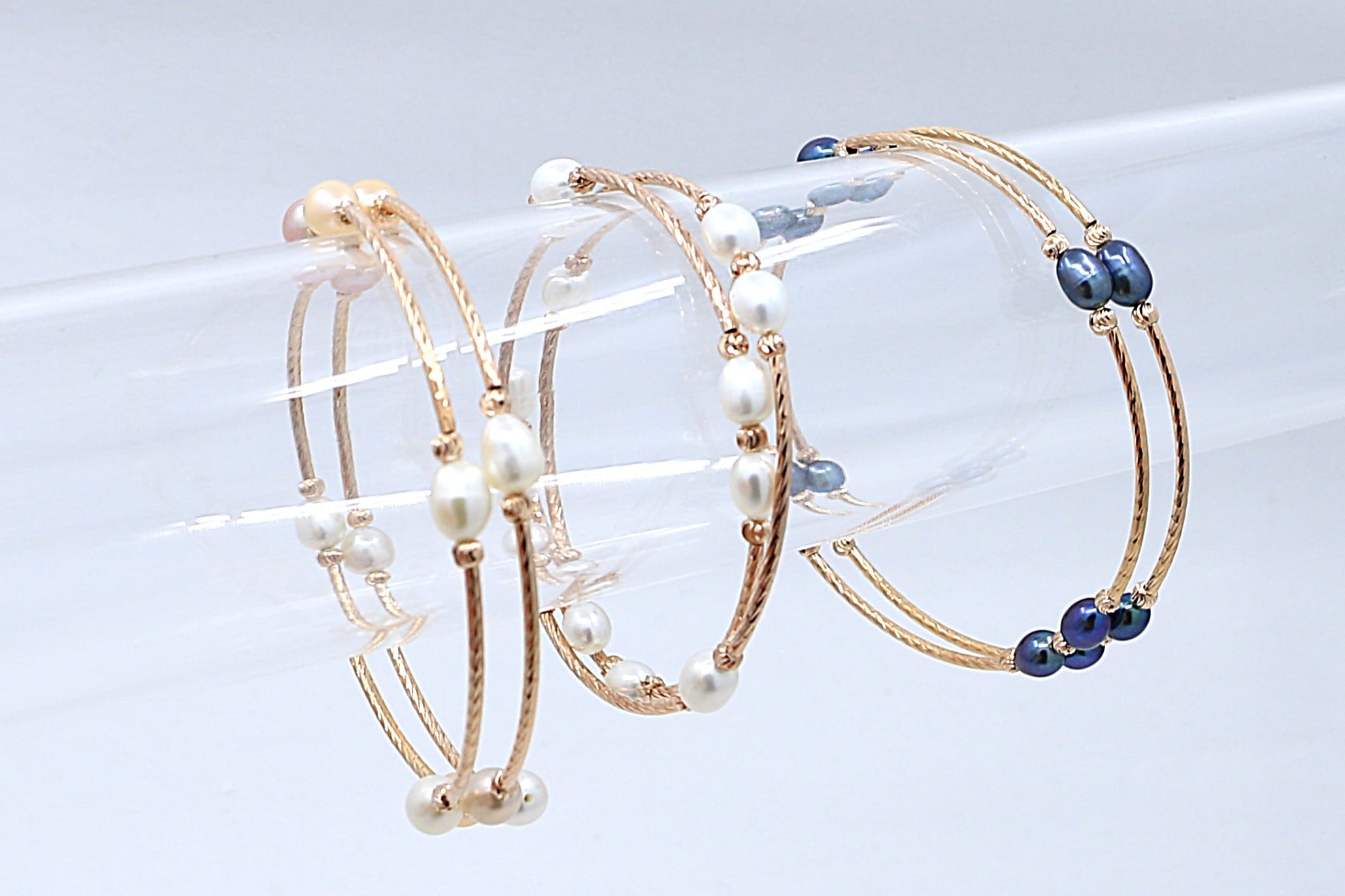 ダブルコイル(2連)デザインのオープンブレスレット。