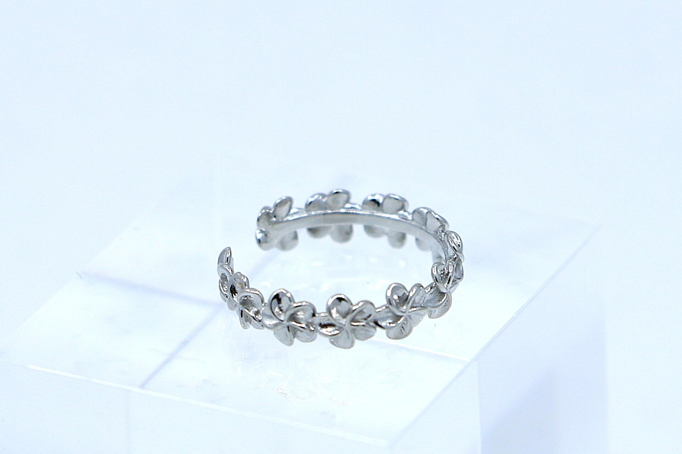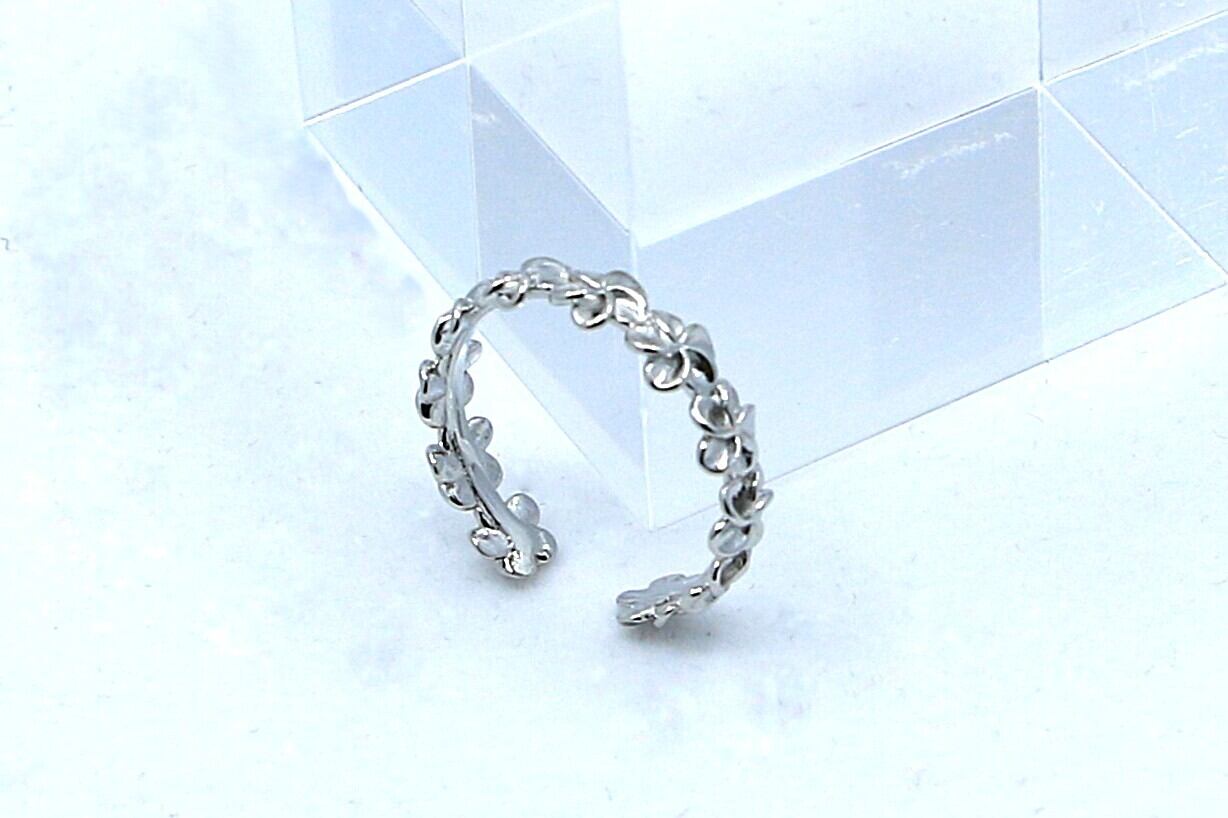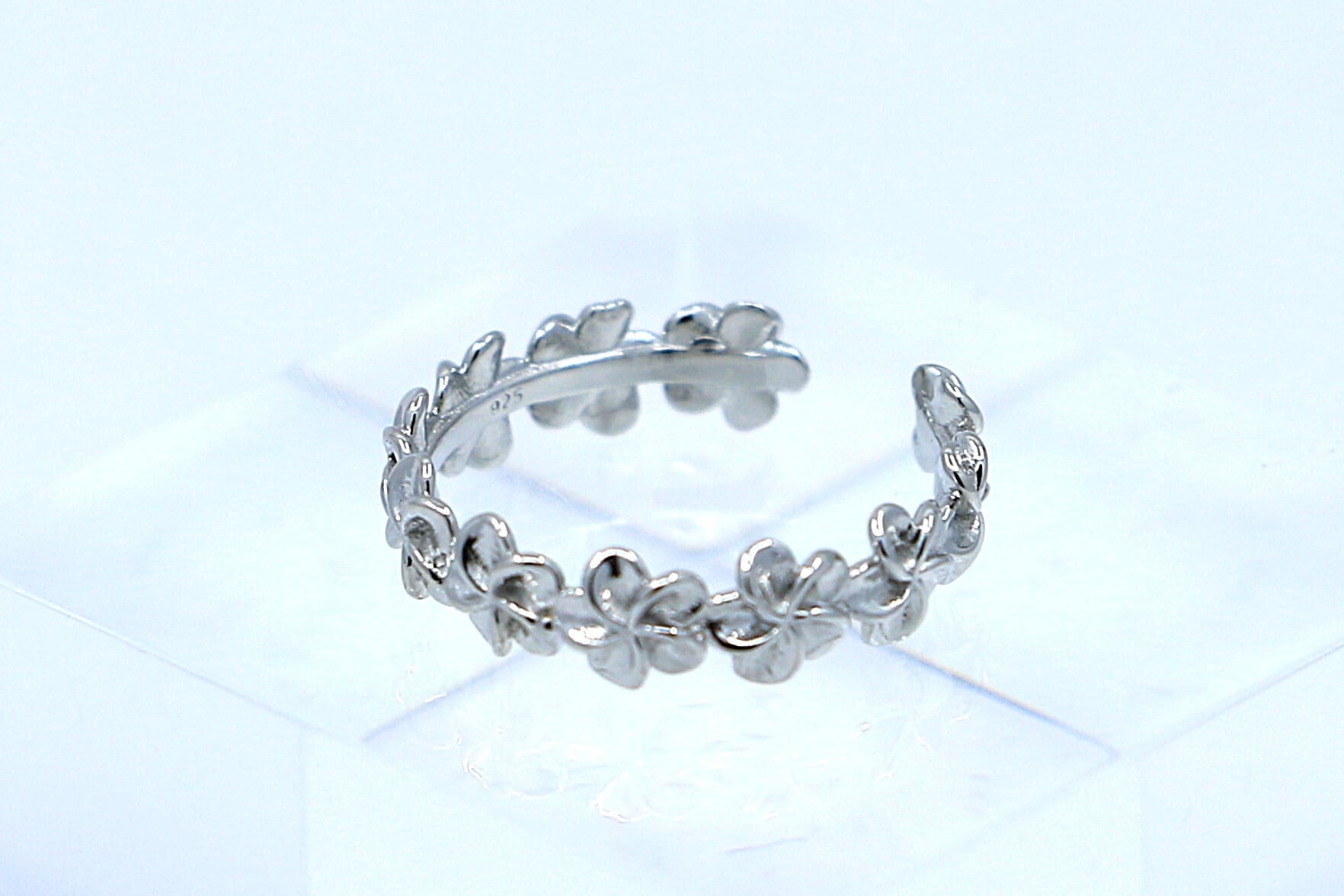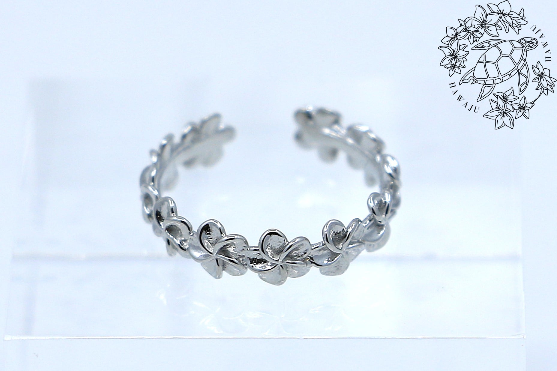 リング全体にあしらわれたプルメリアは、