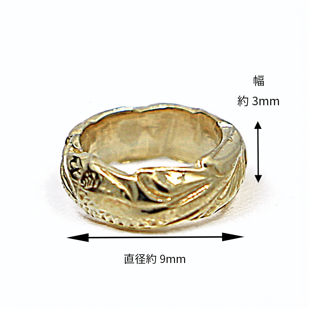 リング状に途切れなく彫り込まれたデザインは、
