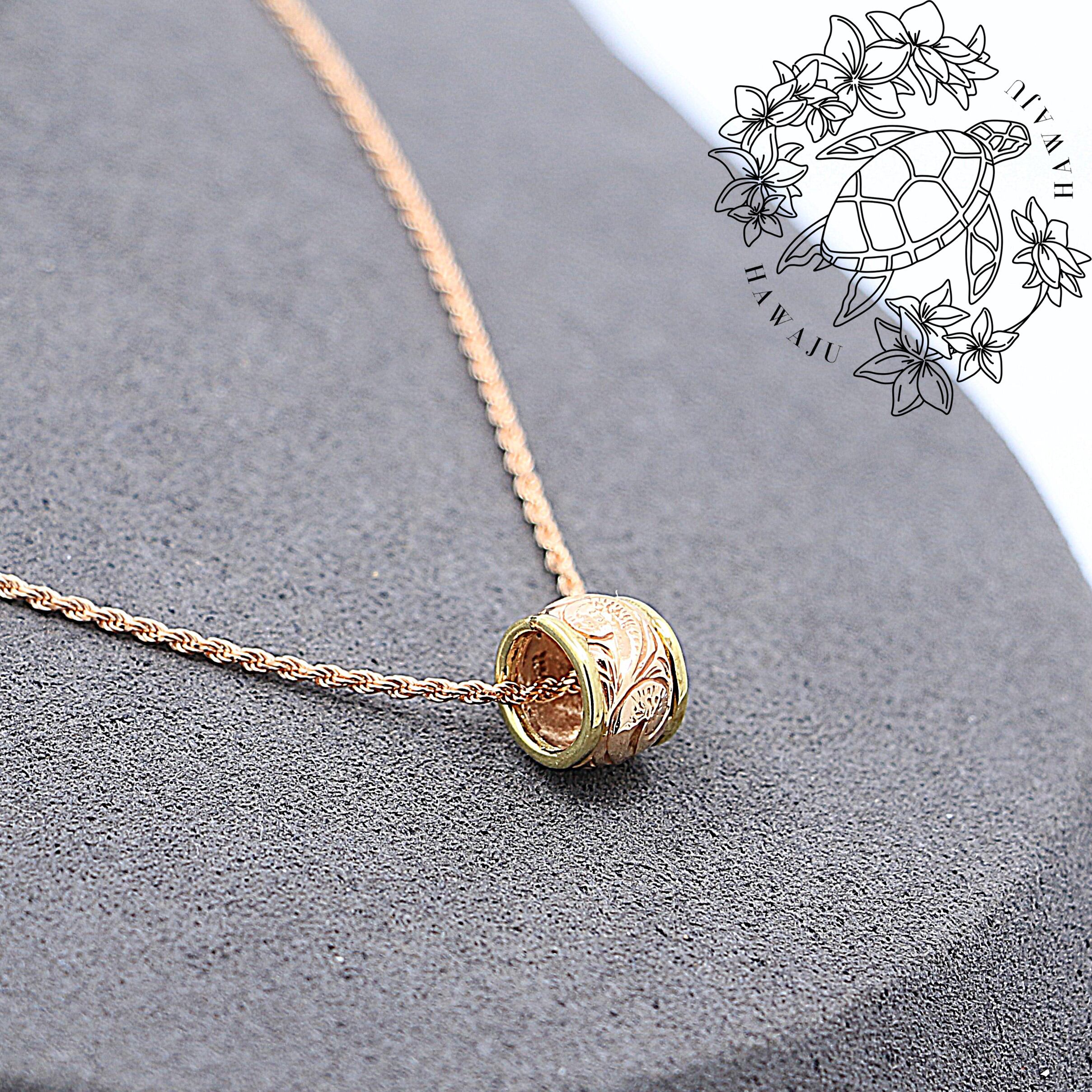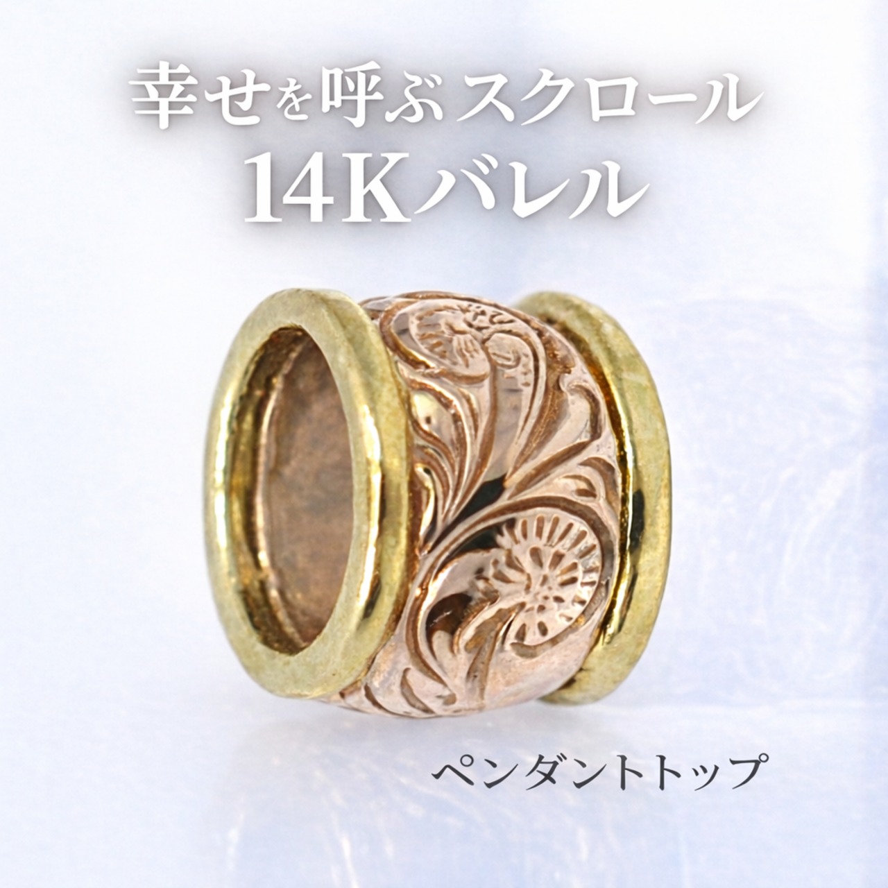 14K ペンダントトップ バレル型 スクロール イエローゴールド /ピンクゴールド ハワイアンジュエリー ハワジュ TGP210