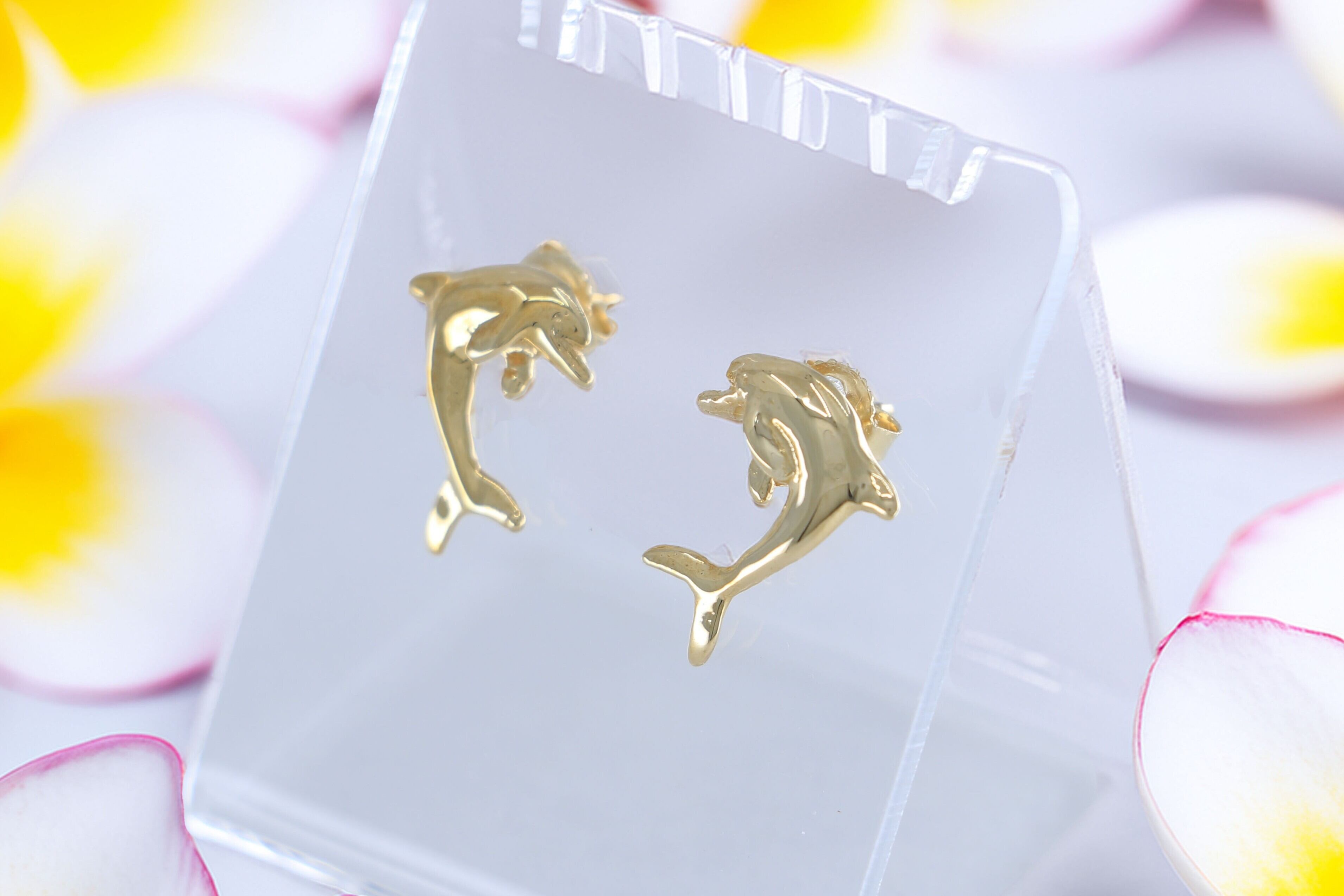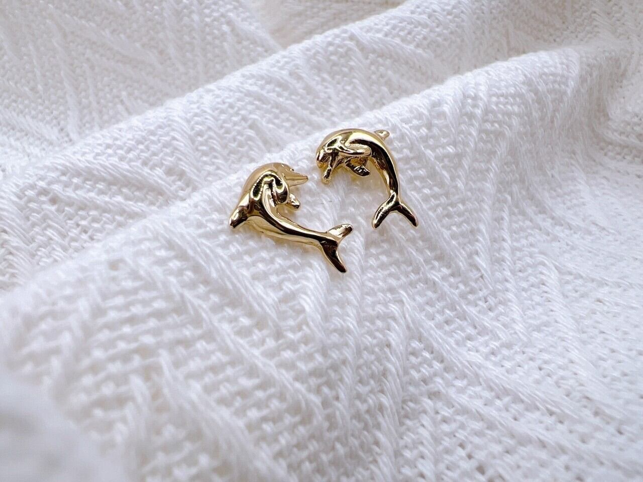 この14Kイエローゴールドのピアスは、幸運や知性の象徴とされるイルカをモチーフにしたハワイアンジュエリーで、滑らかなフォルムと美しい輝きが耳元を上品に彩り、シンプルなポストタイプのデザインとなっており、カジュアルからフォーマルまで幅広いシーンで活躍する洗練されたアイテムです。