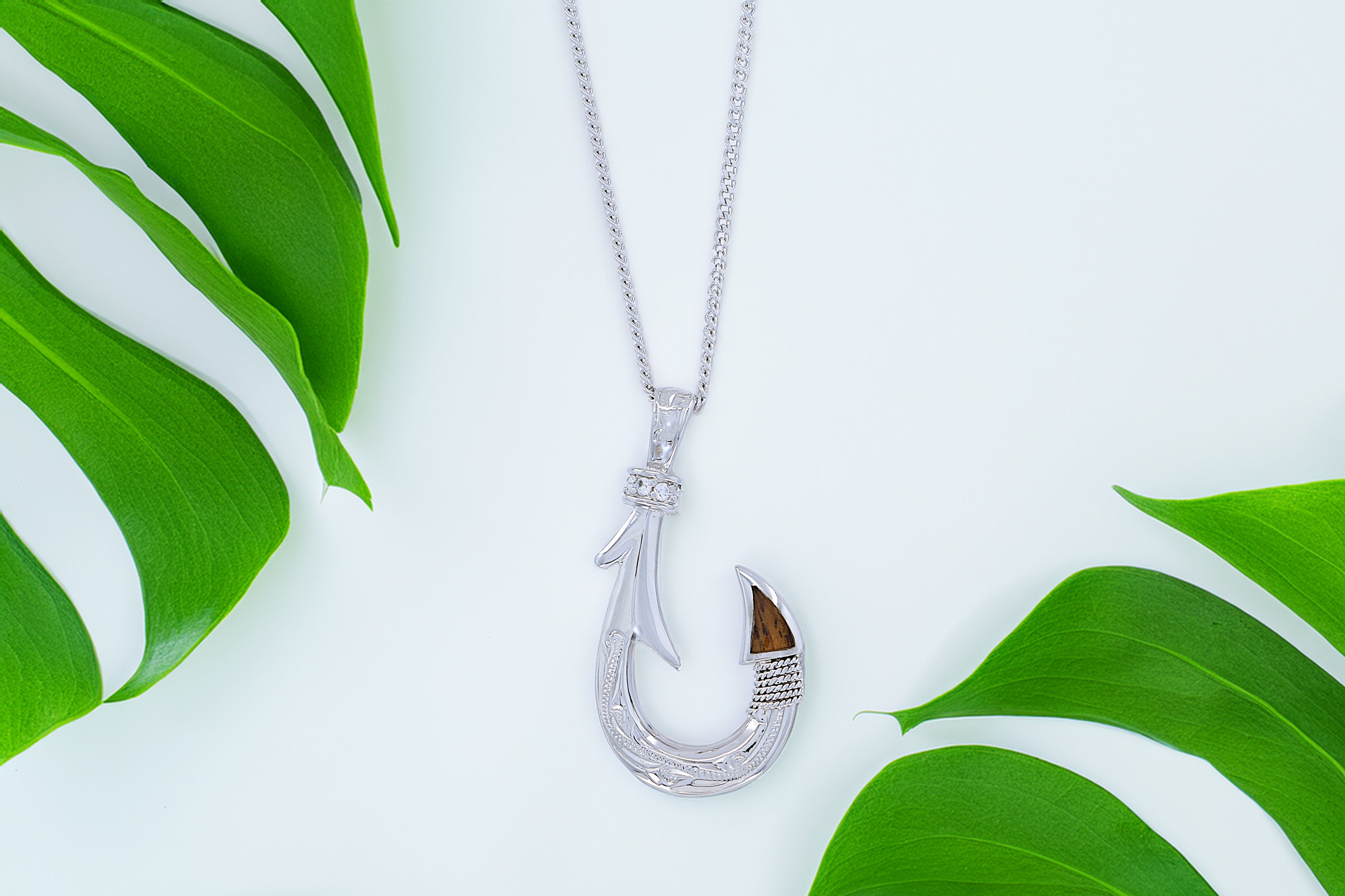 フィッシュフック(釣り針)は、ハワイやポリネシア文化において「幸運」「強さ」「成功」「海の守護」を象徴するデザインとされ、大切な人へのギフトやお守りとしても人気があります。