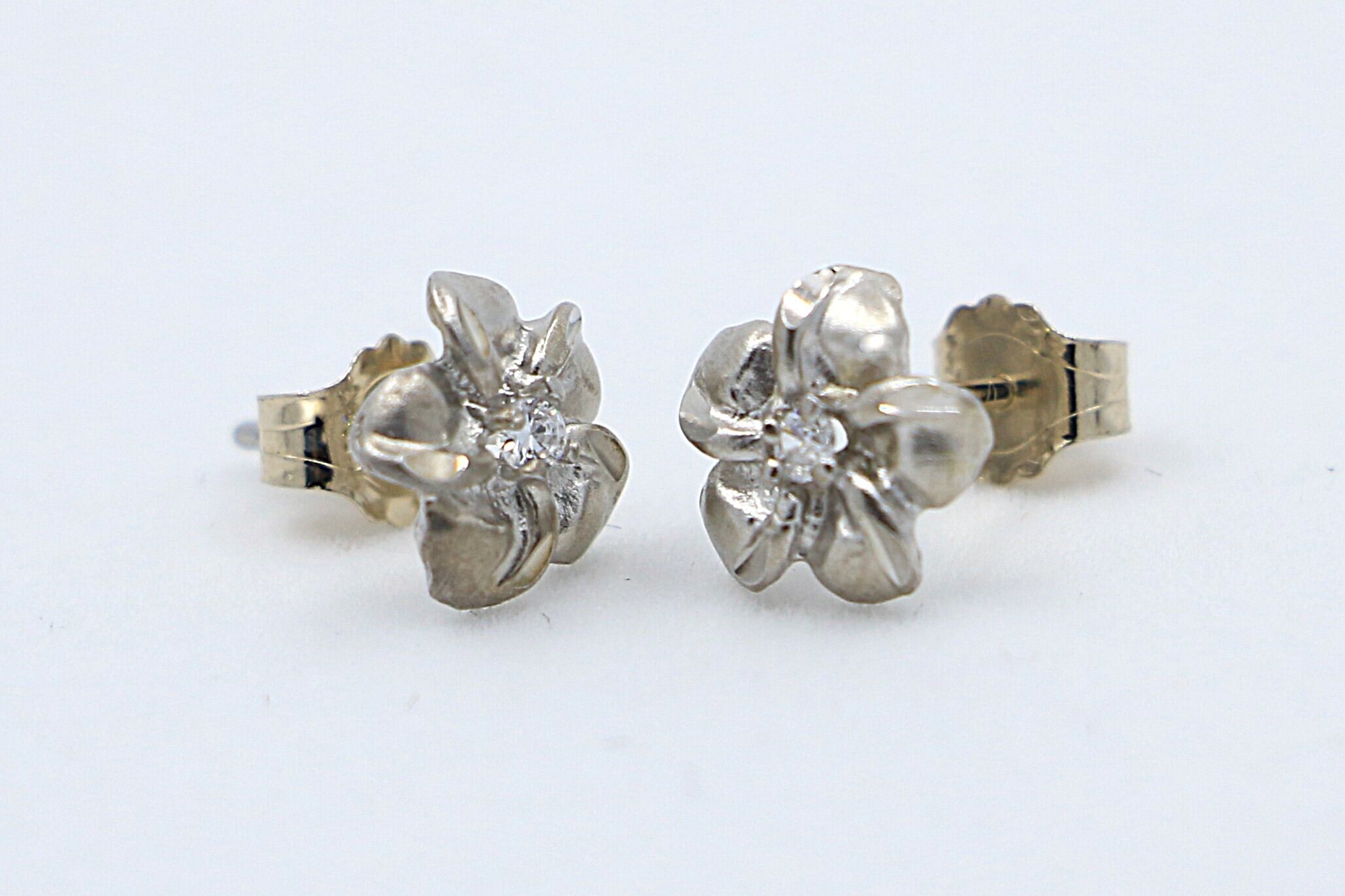 14K ピアス プルメリア ホワイトゴールド キュービックジルコニア ハワイアンジュエリー ハワジュ WGE2CZP アクセサリー 女性 レディース 華やか 上品 可愛らしい シンプル 日常使い プレゼント ギフト 誕生日 記念日 お祝 金 | ハワジュ