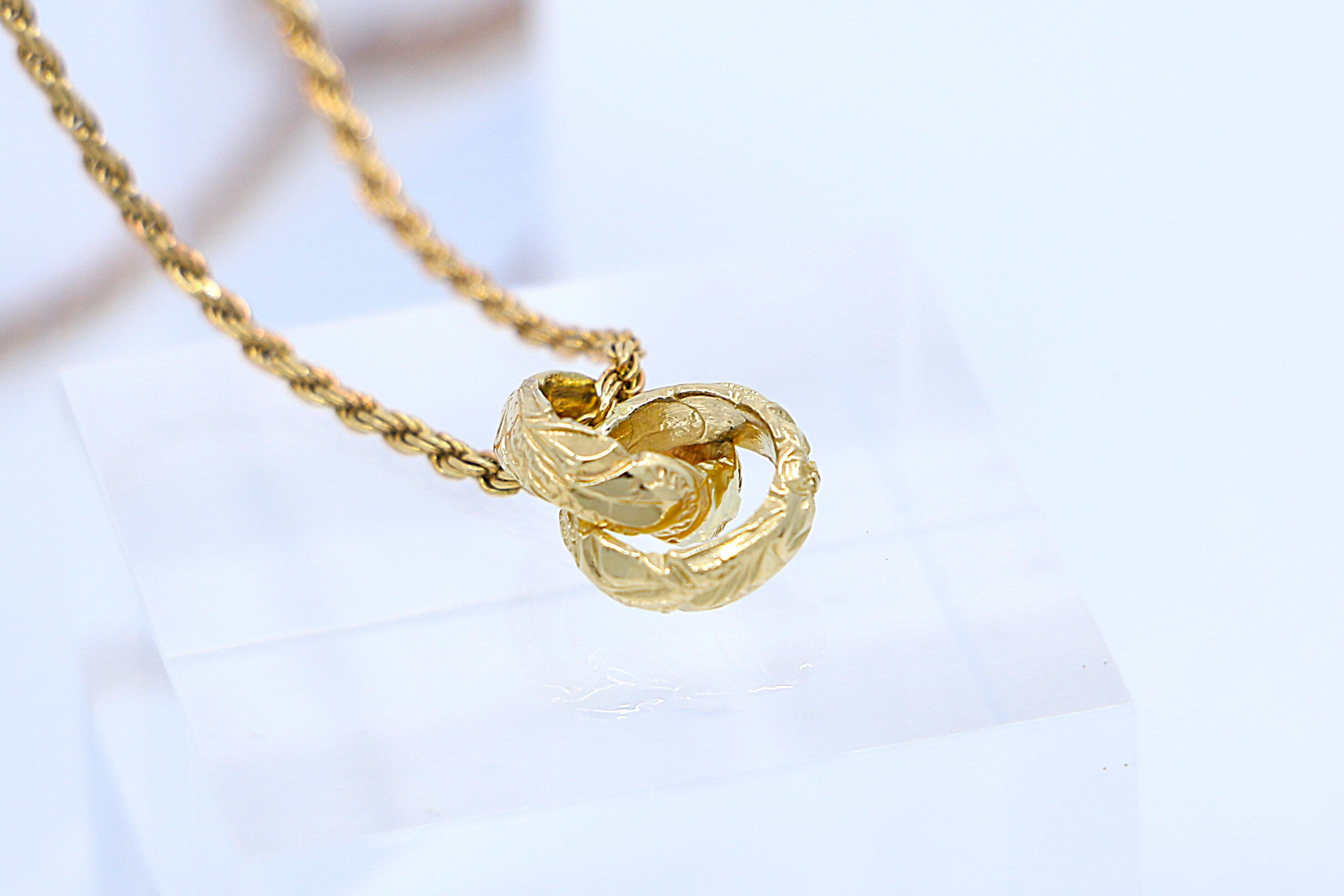 14Kは、純金や18Kよりも硬くて丈夫であり、日常使いでも傷つきにくいので、長く楽しむことができます。また、硬度があり加工しやすいため、さまざまなデザインに対応可能で、細かい彫刻や繊細なデザインが要求されるハワイアンジュエリーには最適な素材です。